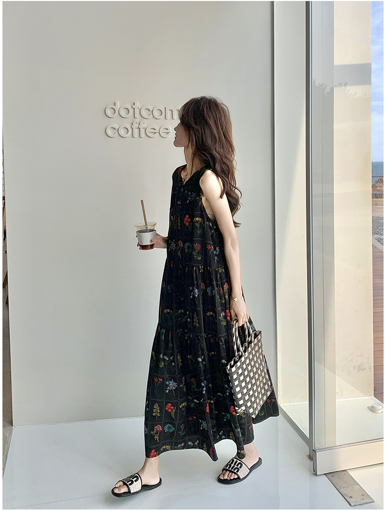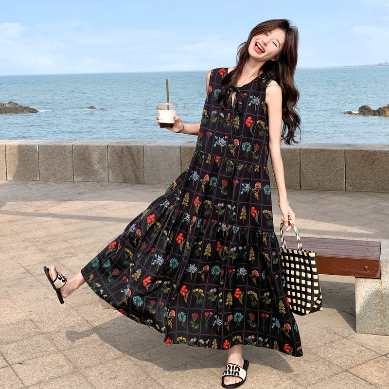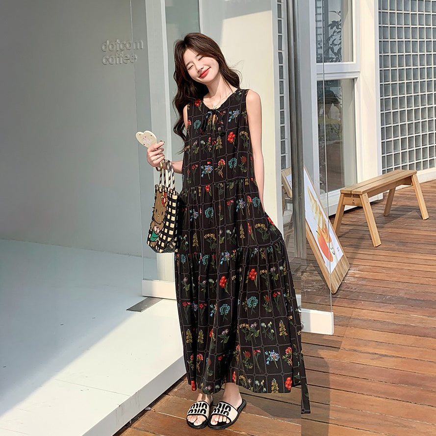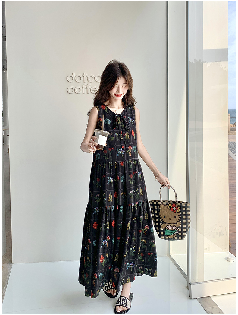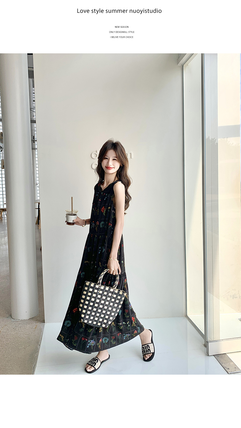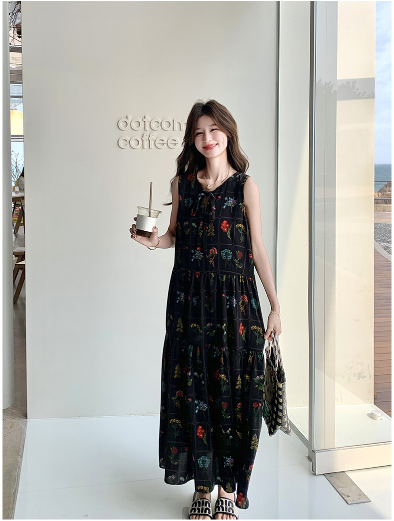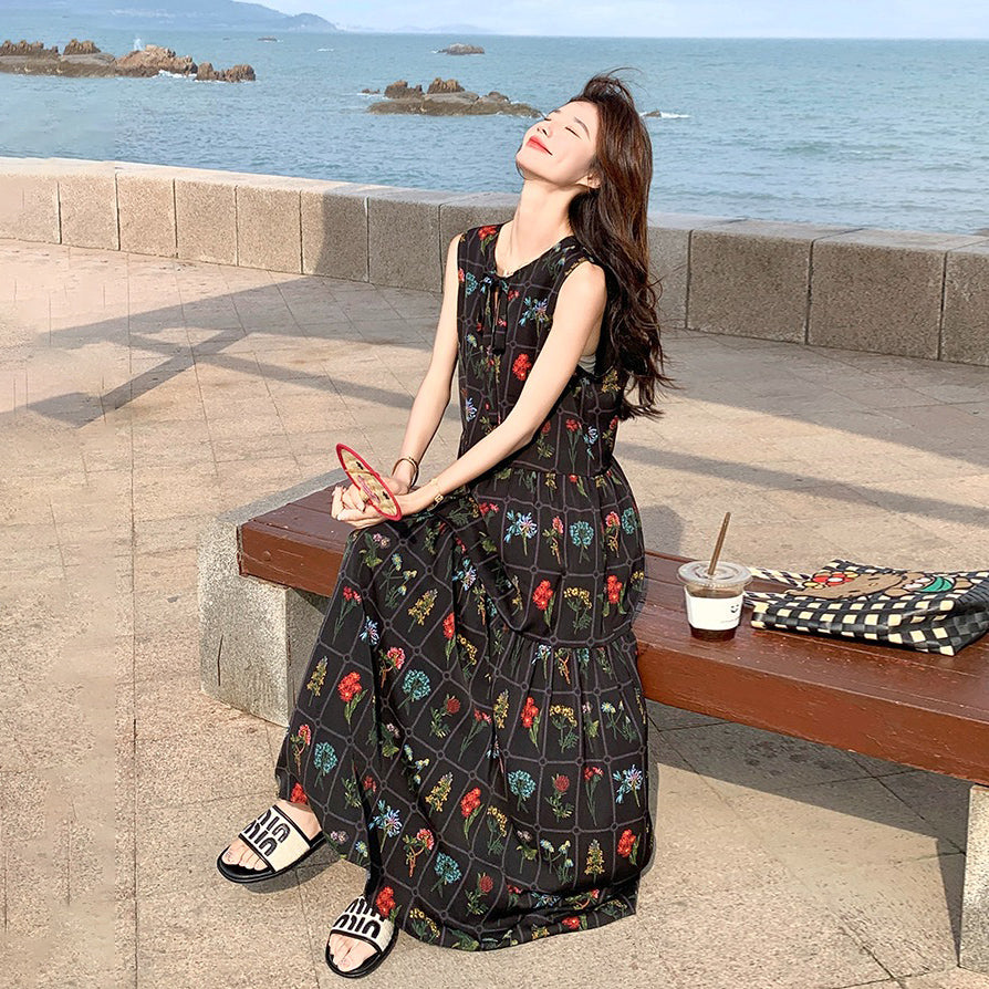 【ワンピース】刺繍プリント ビーチ ノースリーブタンクワンピース【SHシリーズ】