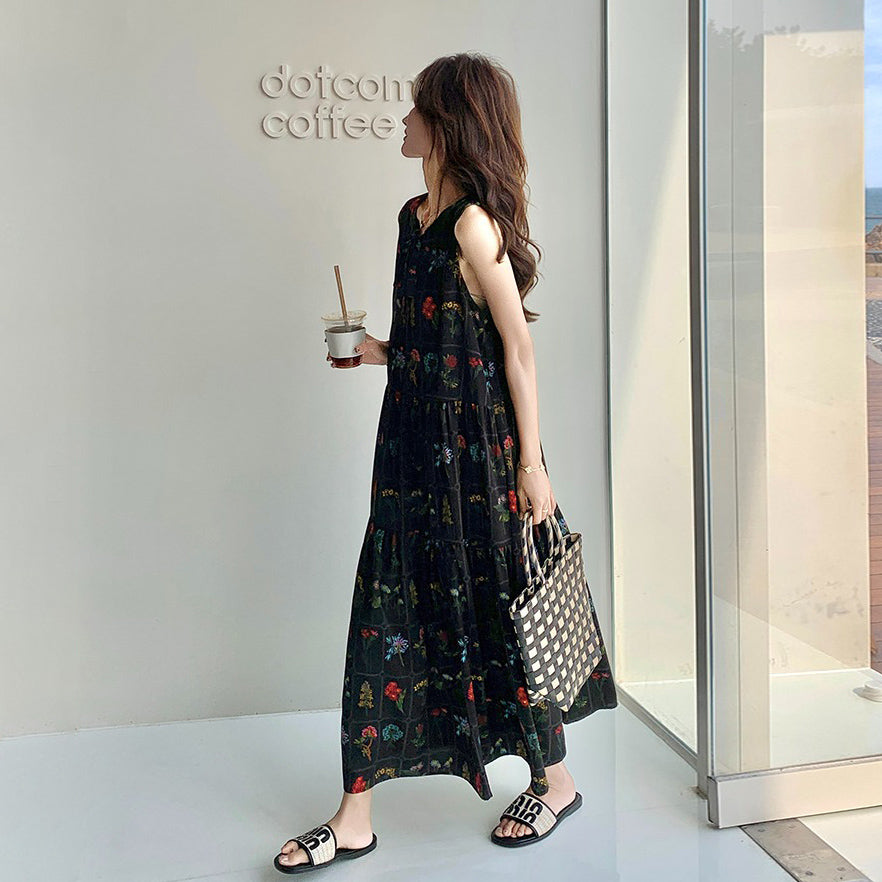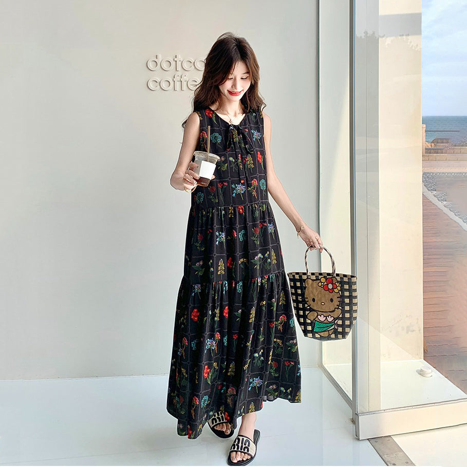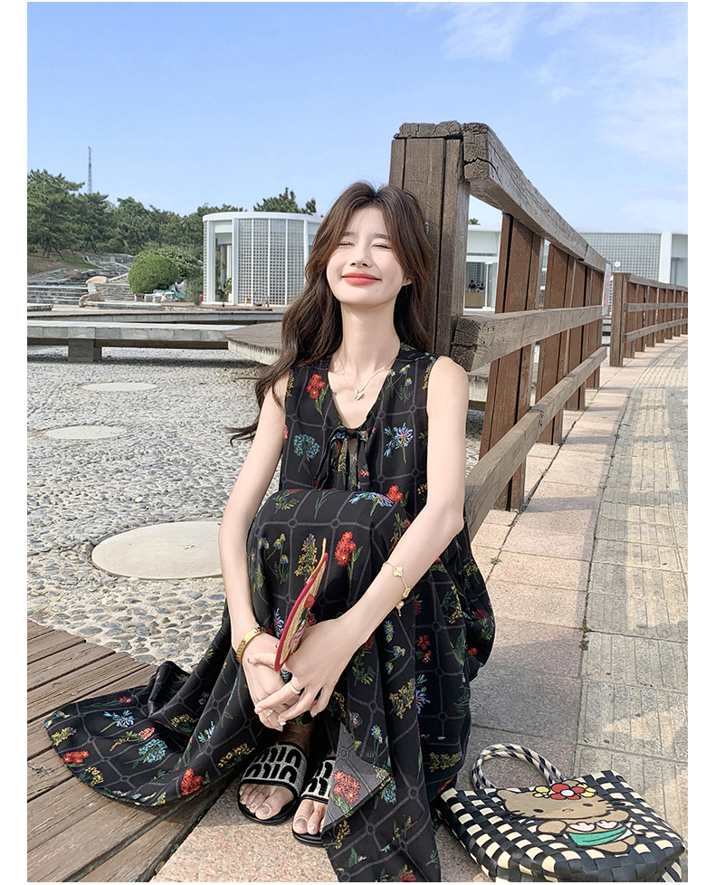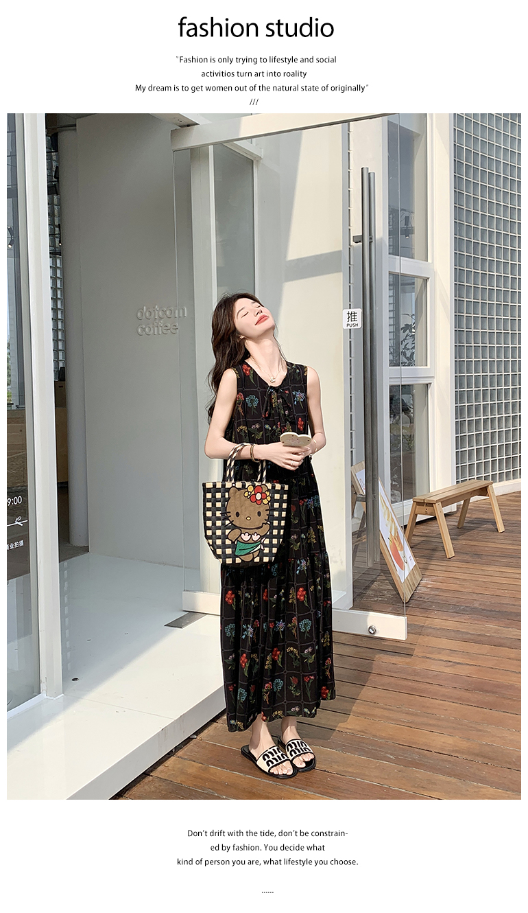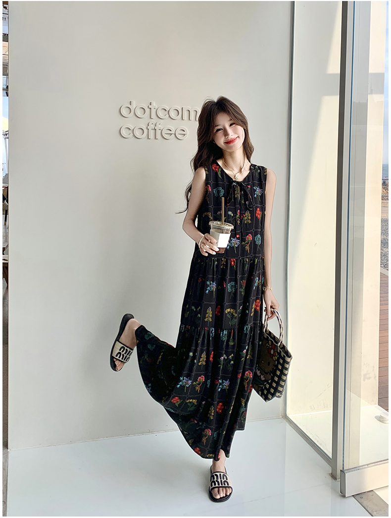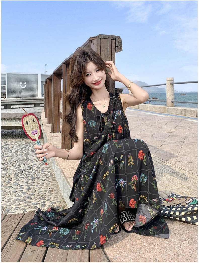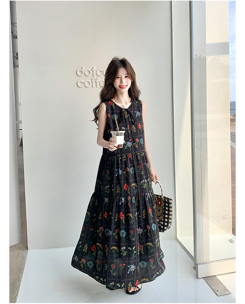 【ワンピース】刺繍プリント ビーチ ノースリーブタンクワンピース【SHシリーズ】