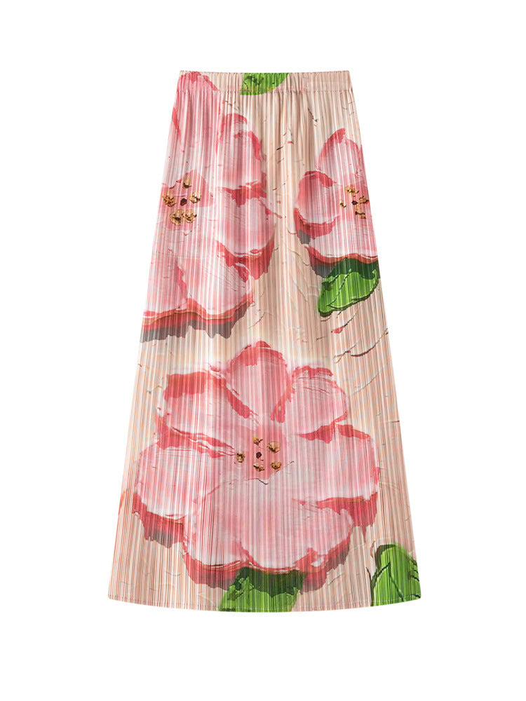 【ボトムス】夏 プリーツデザイン ハイウエスト 細見え 万能コーデ ミモレ丈 スカート 【SHシリーズ】