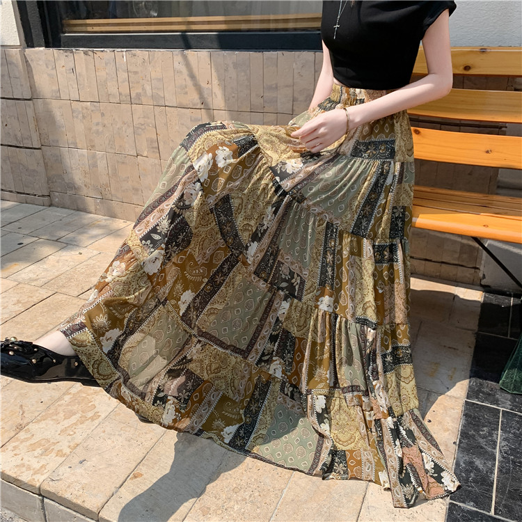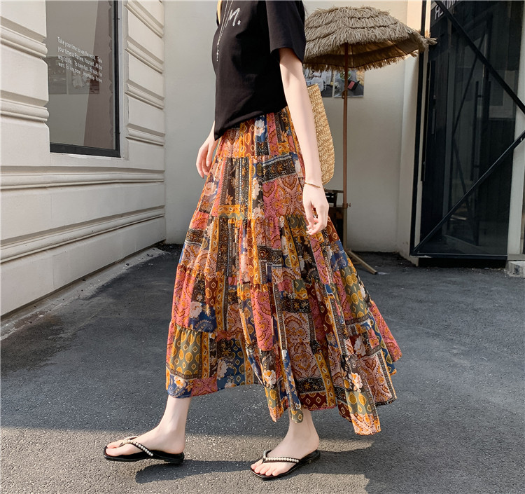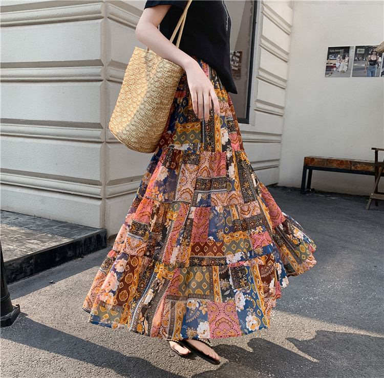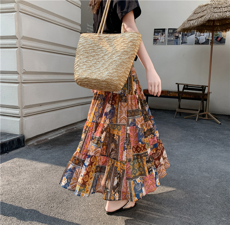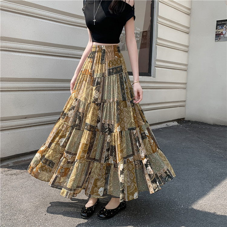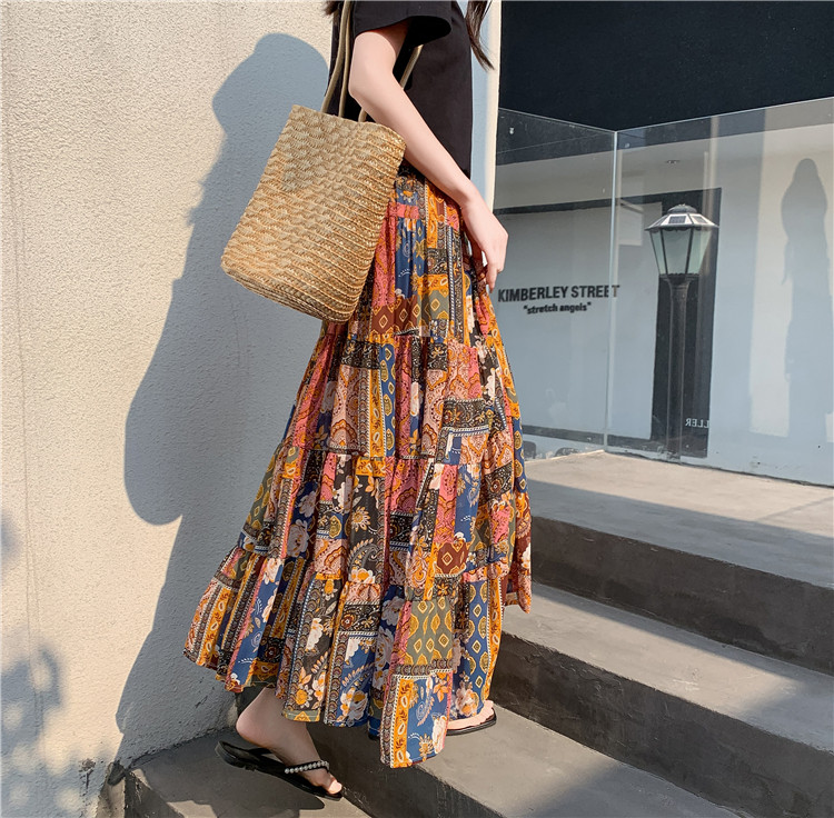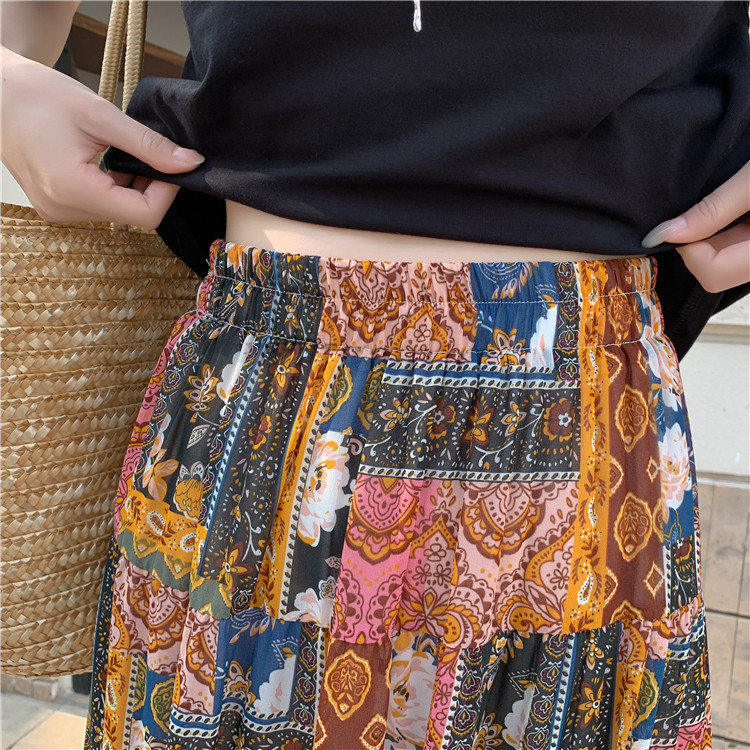 【ボトムス】夏 ボヘミアンリゾート風 フラワープリント 高級感 スカート【SHシリーズ】
