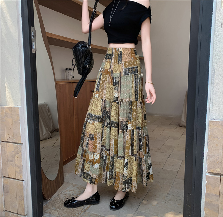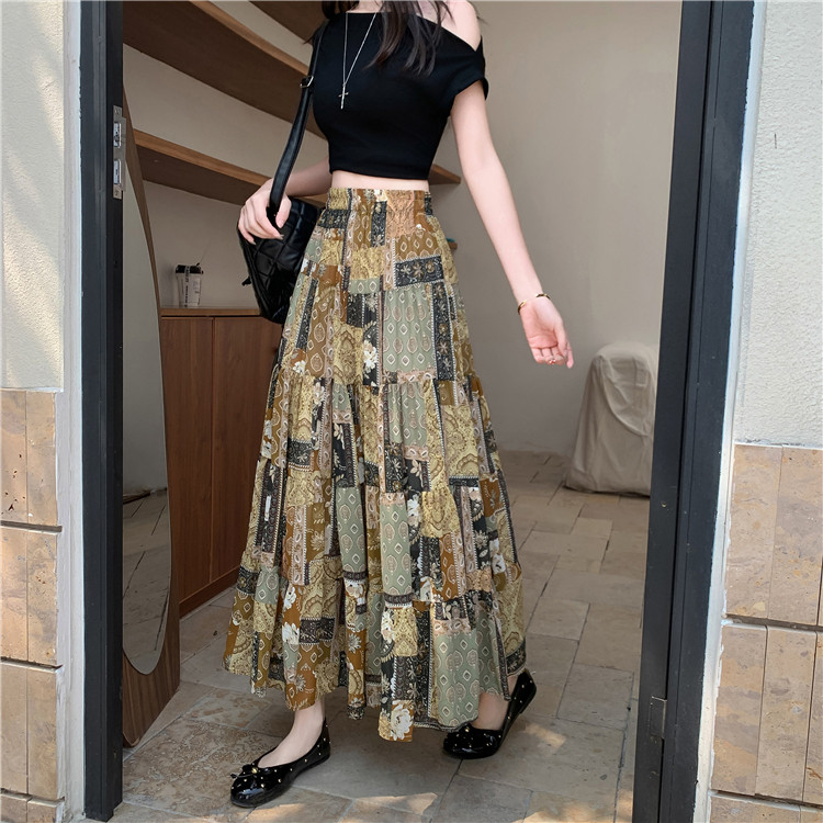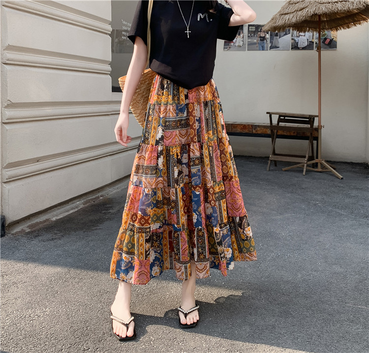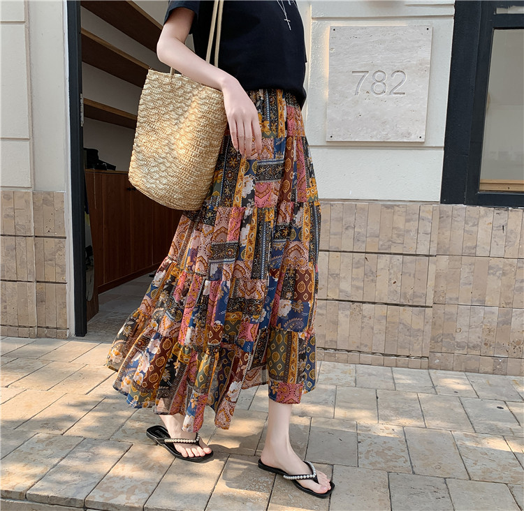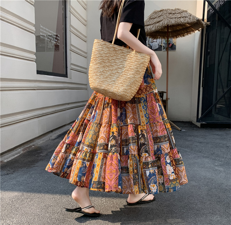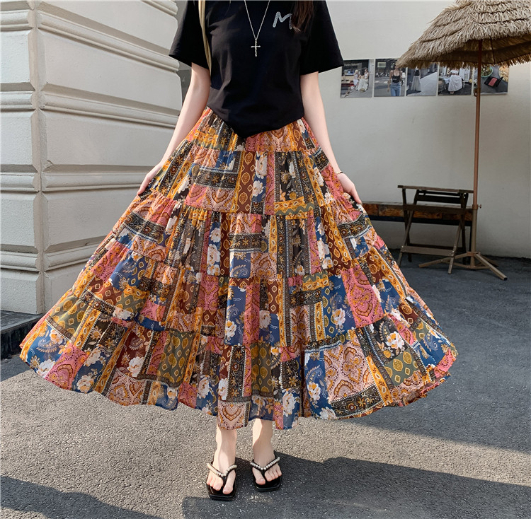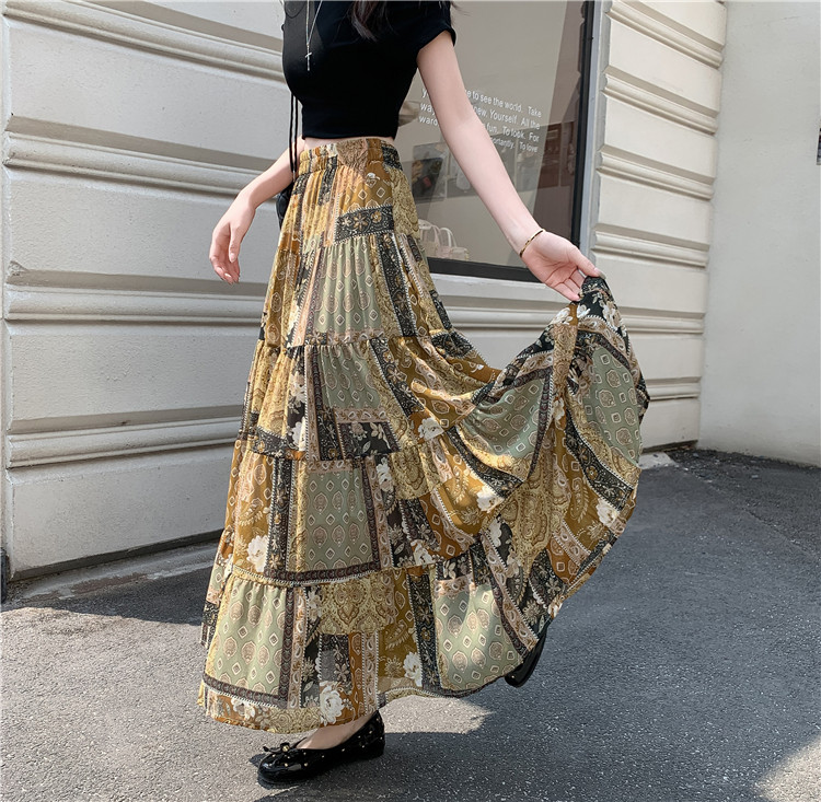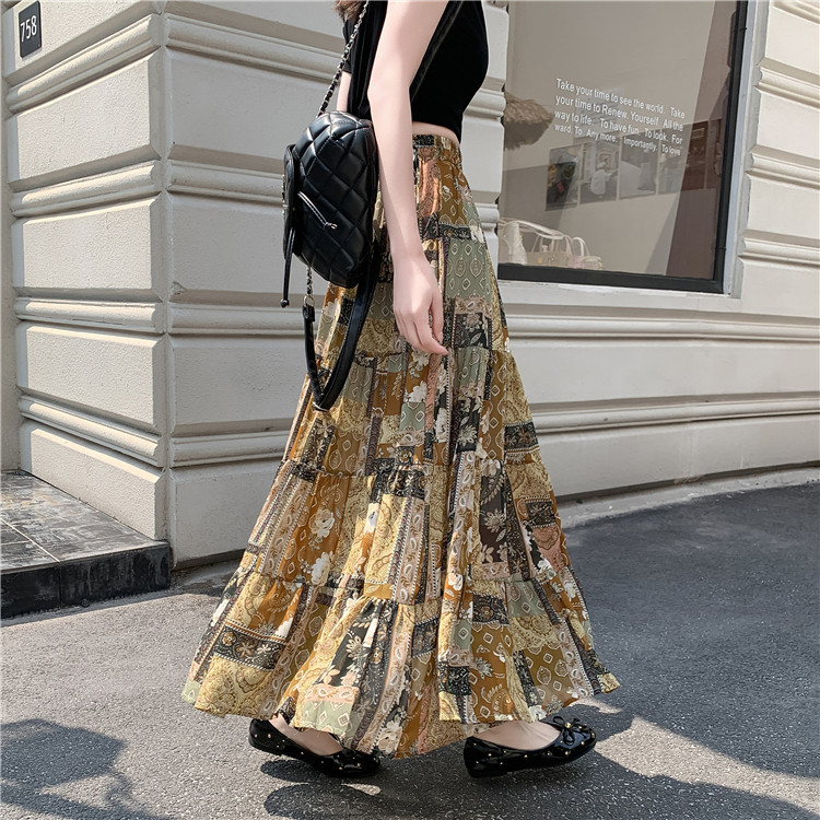 【ボトムス】夏 ボヘミアンリゾート風 フラワープリント 高級感 スカート【SHシリーズ】