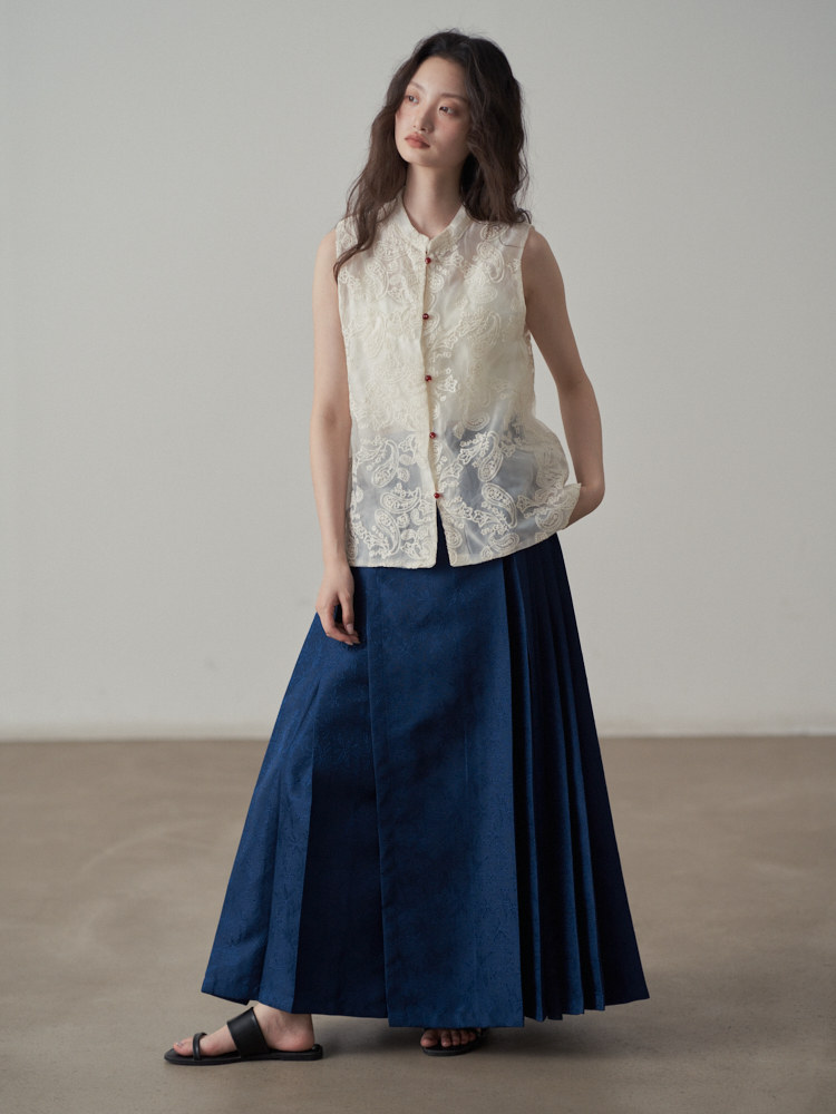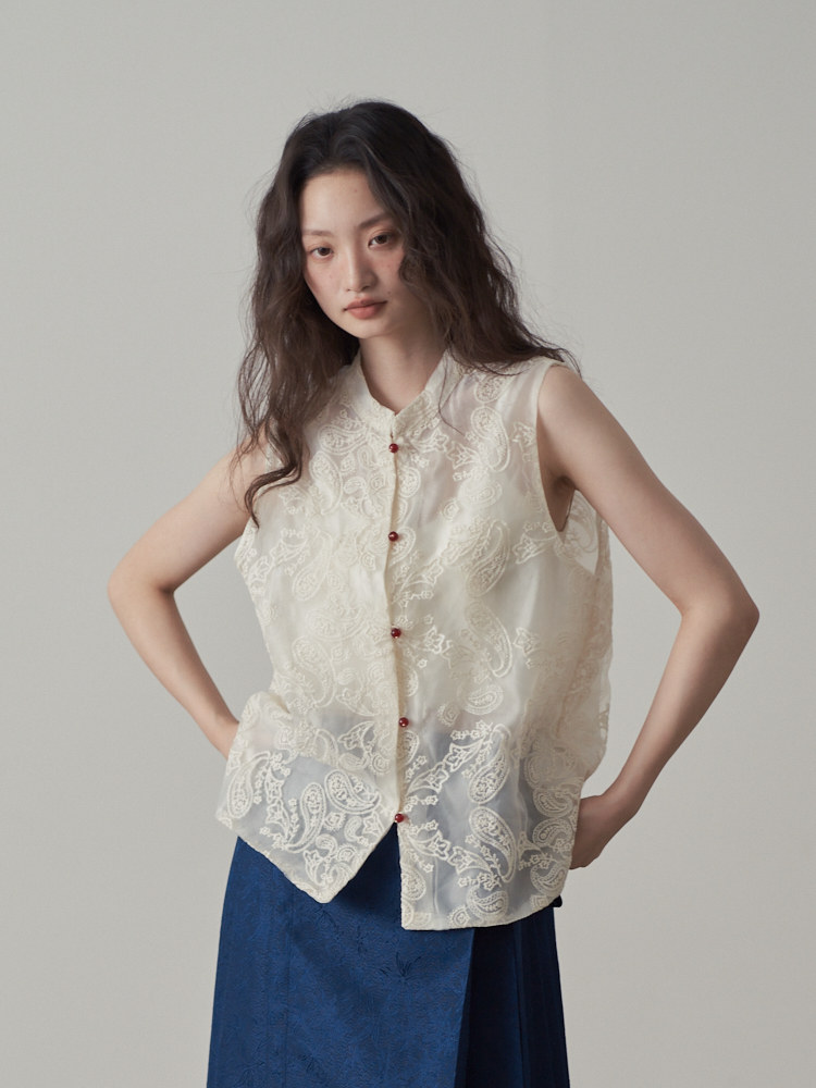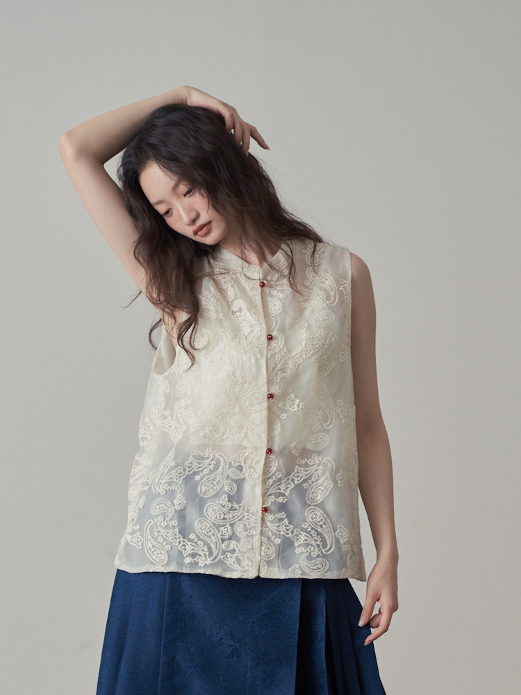 【商品名】【トップス】夏 新中華風 刺繍 ビーズボタン ノースリーブベスト シャツ 【SHシリーズ】