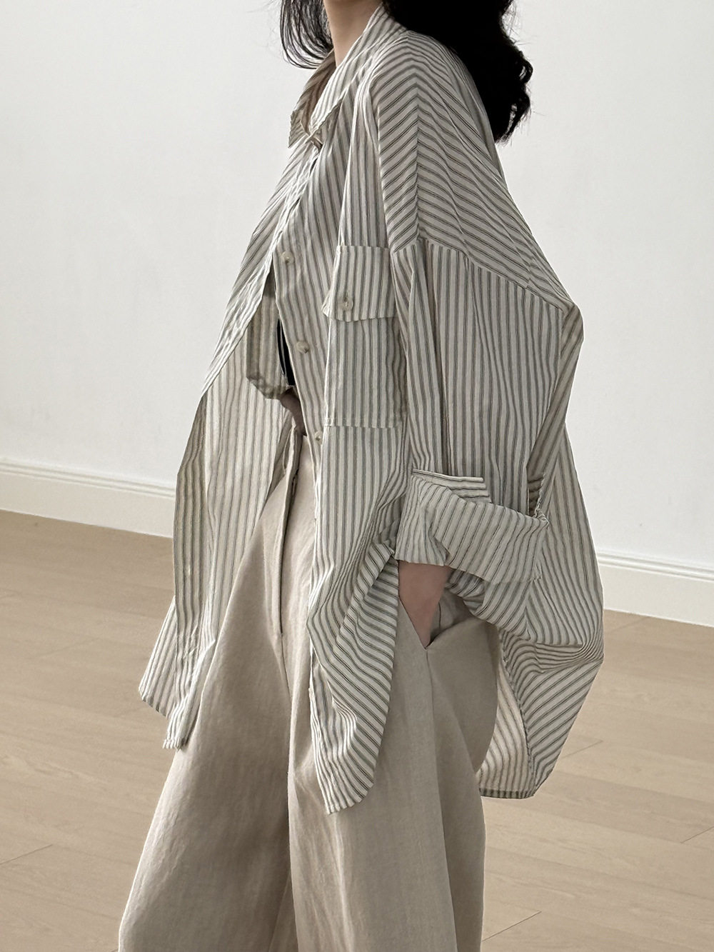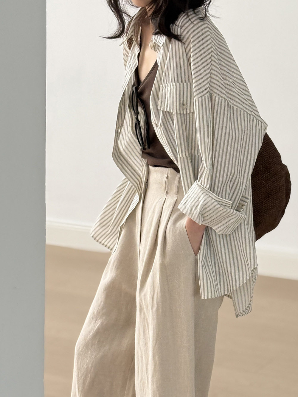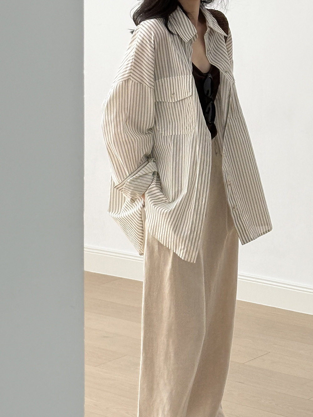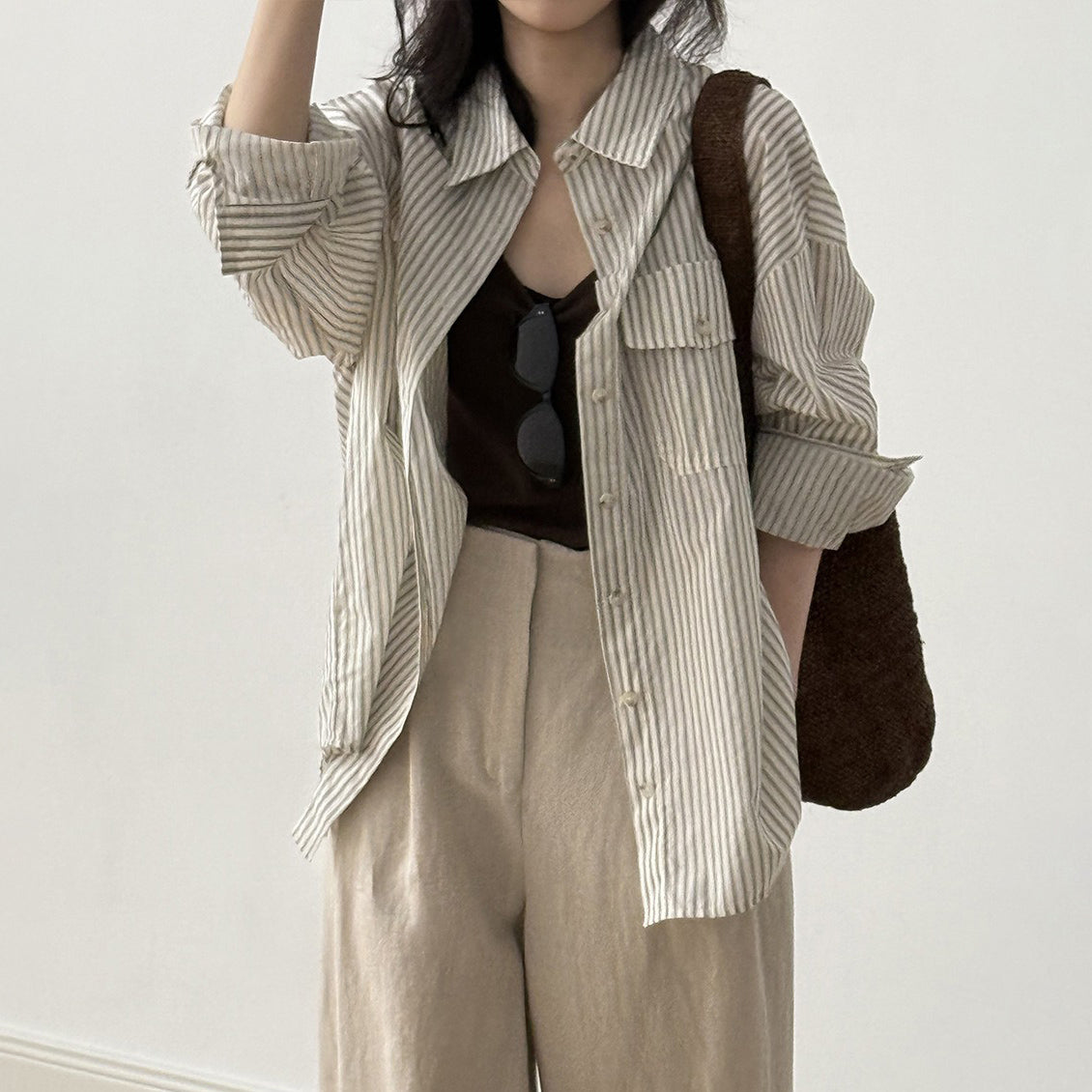 【トップス】カジュアル ヴィンテージ 夏 ゆったり 日焼け防止 ラフなストライプ 長袖シャツ【JZシリーズ】