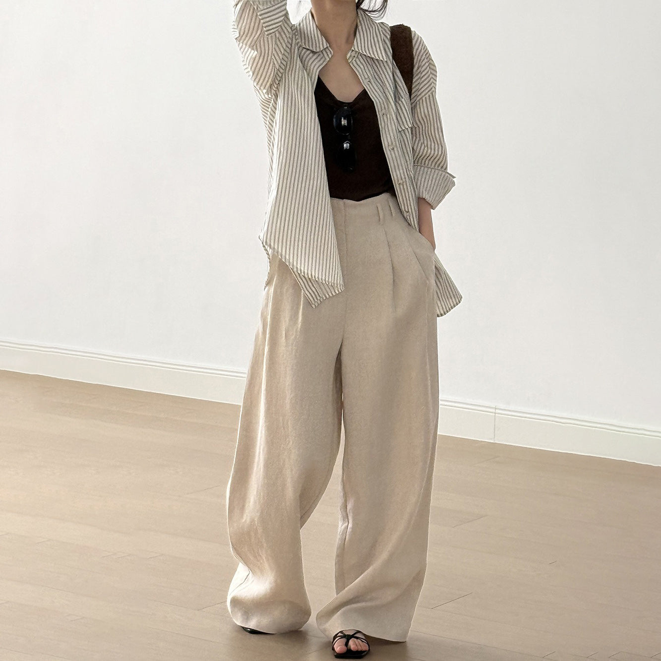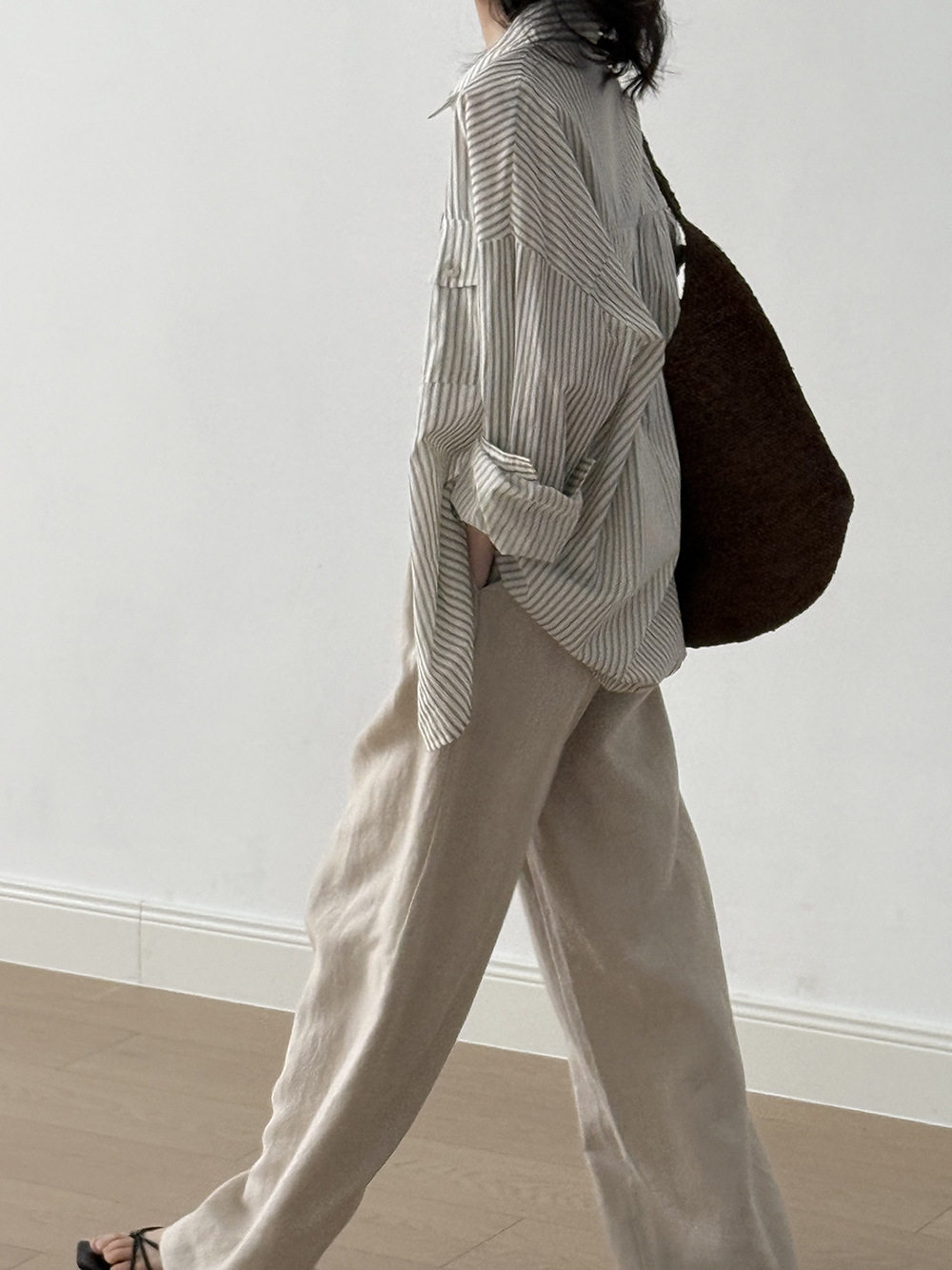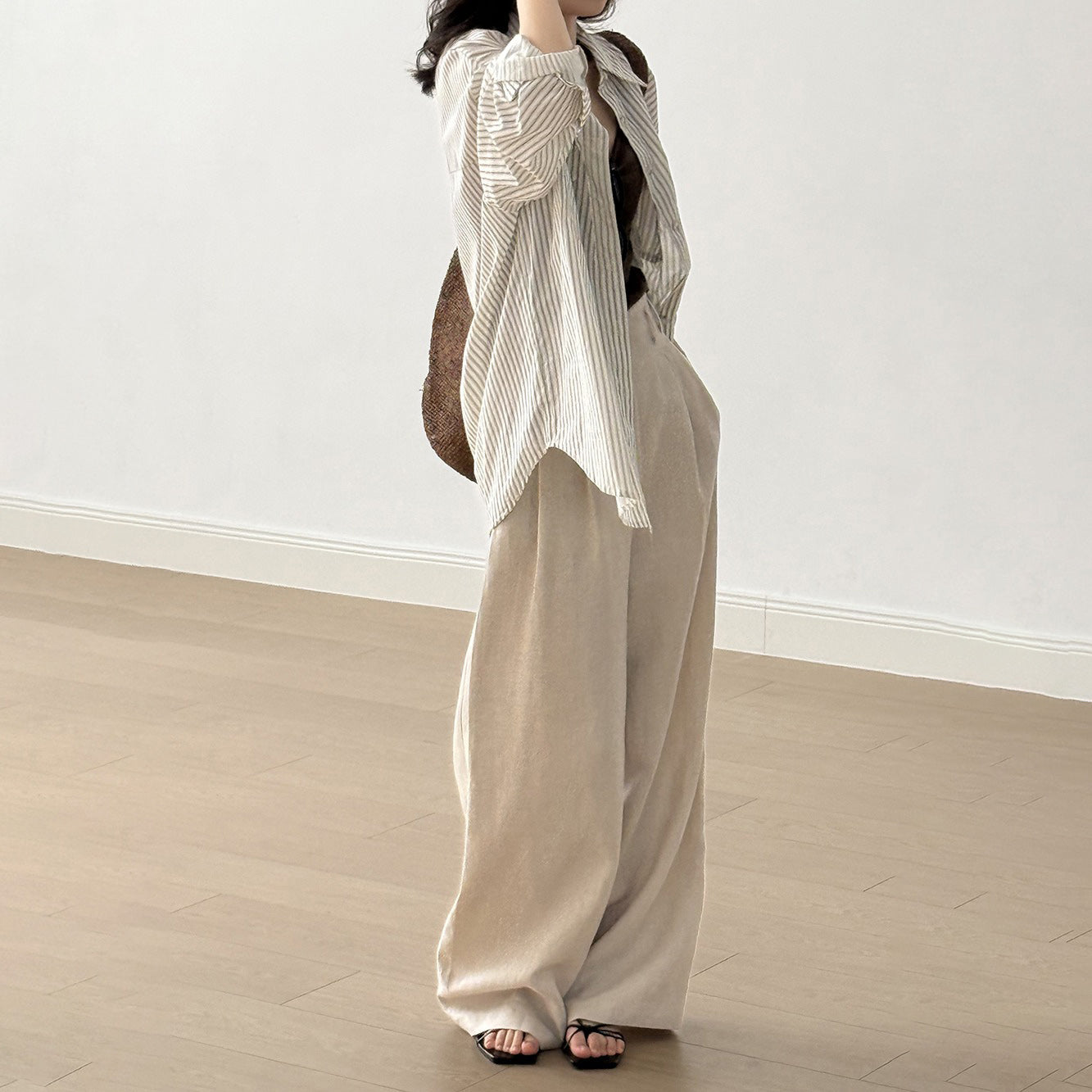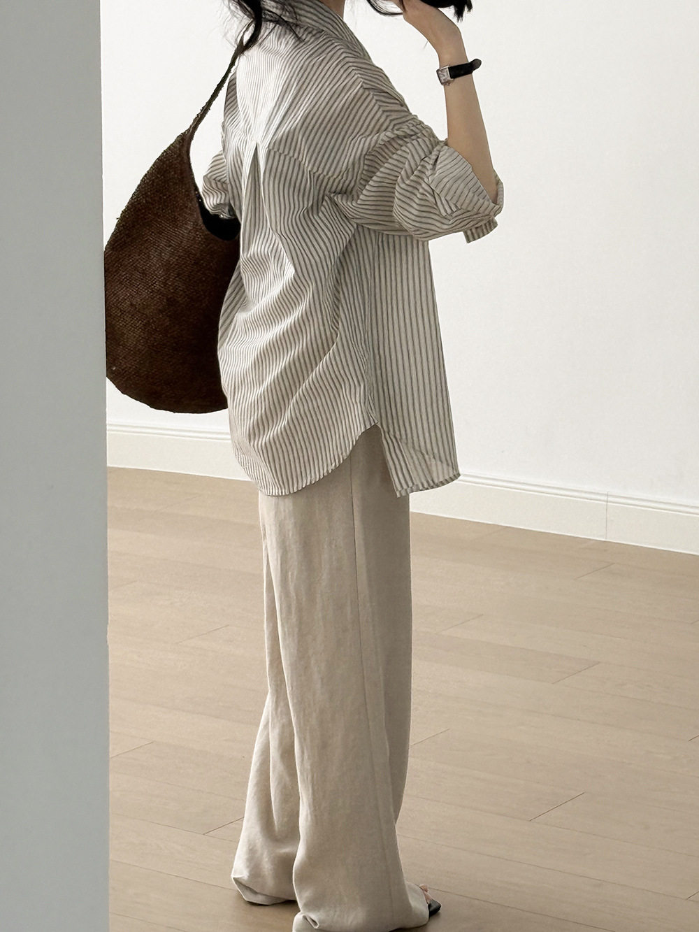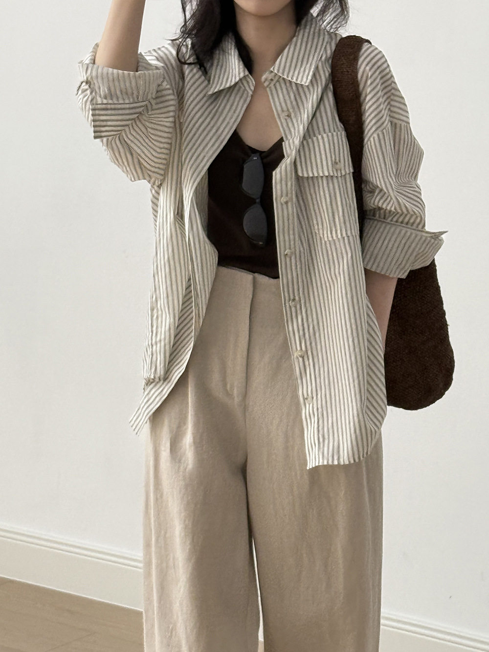 【トップス】カジュアル ヴィンテージ 夏 ゆったり 日焼け防止 ラフなストライプ 長袖シャツ【JZシリーズ】