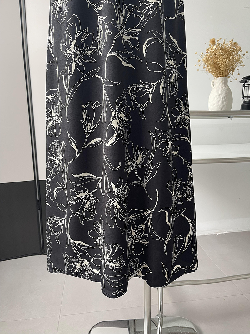 【ワンピース】韓国風 春秋新作 ゆったり大きめサイズ 体型カバー 花柄長袖ミディアムワンピース【SHシリーズ】