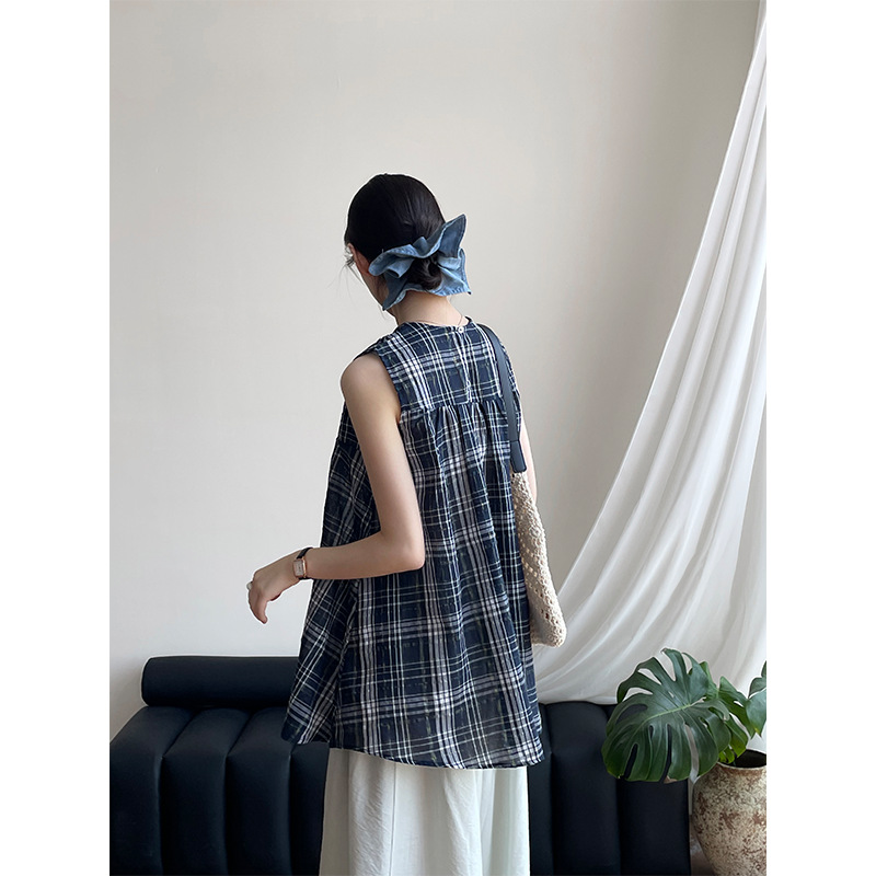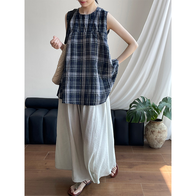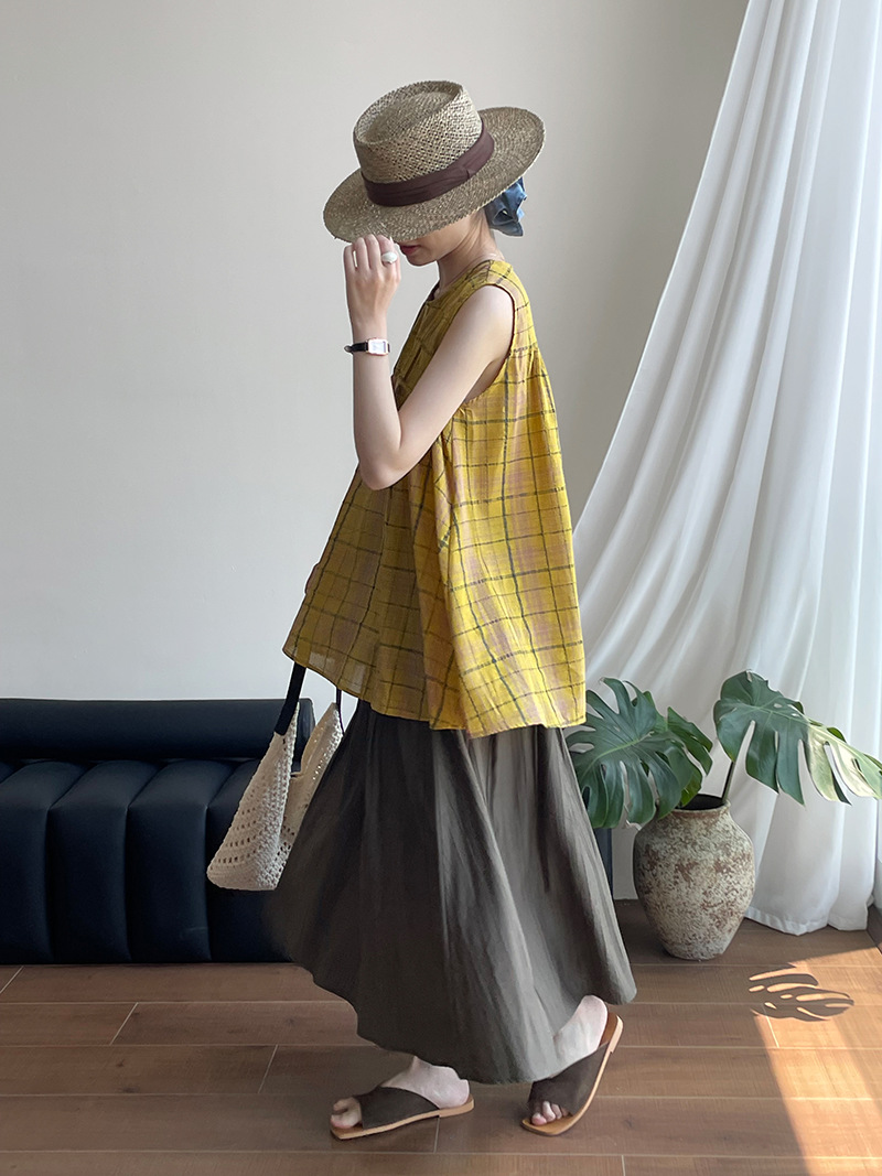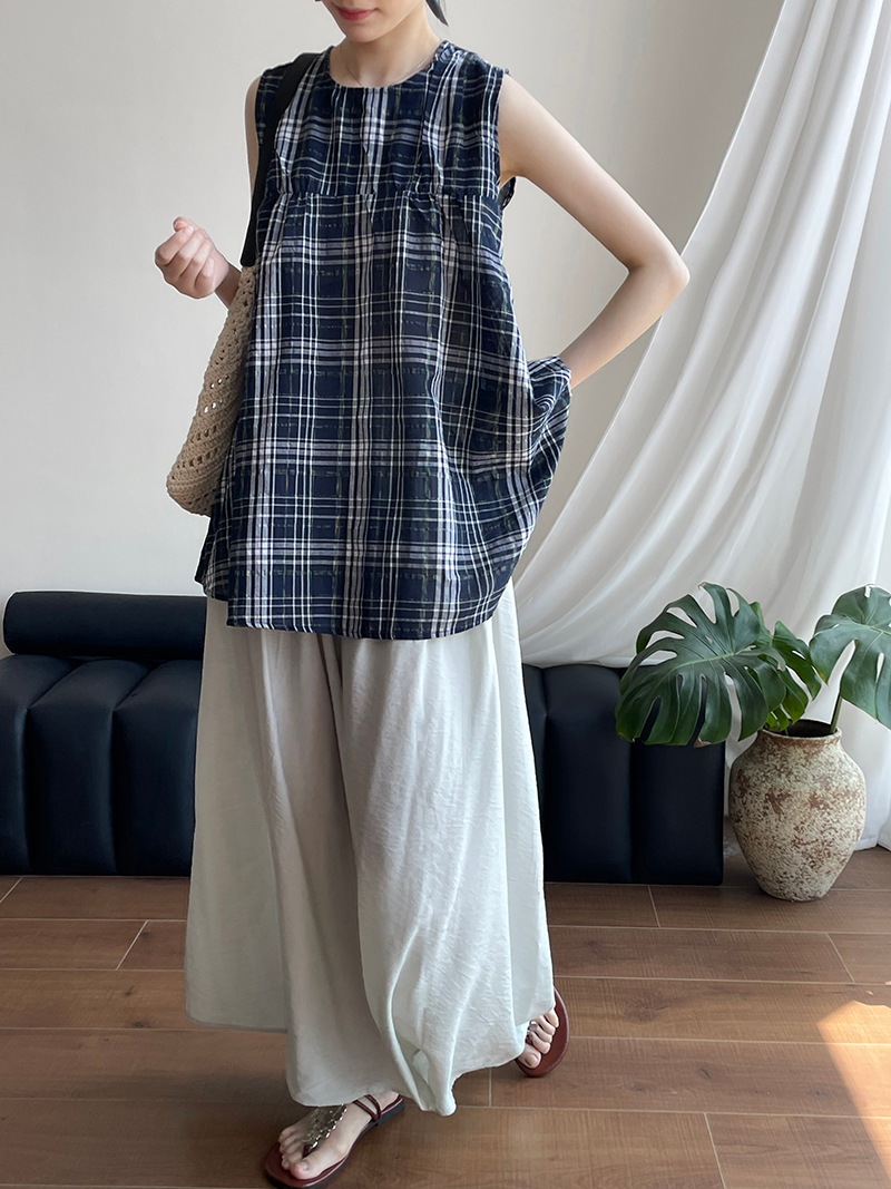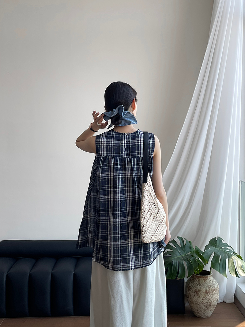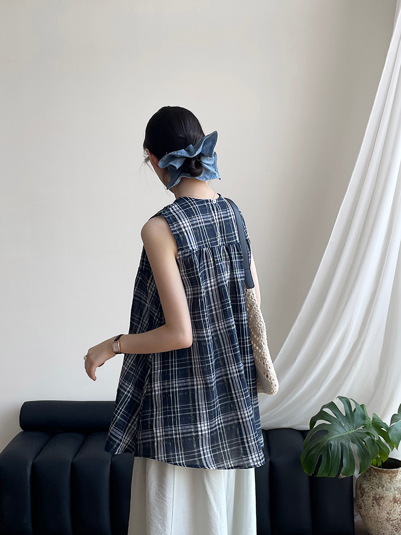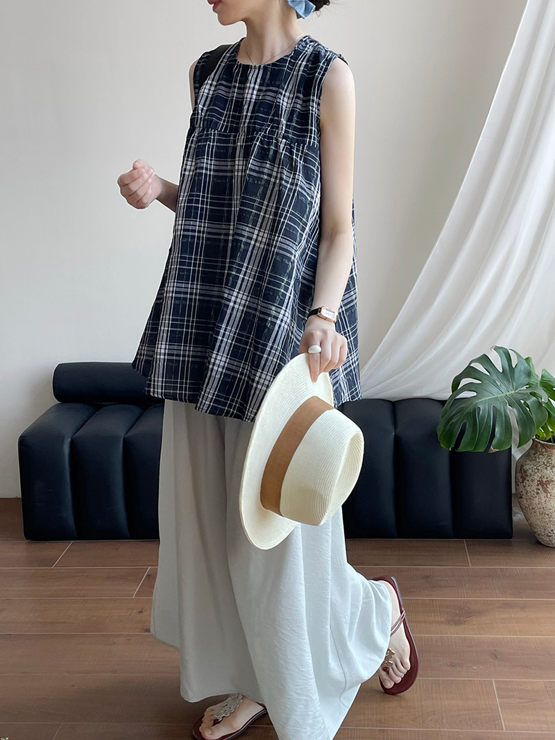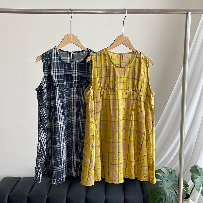 【トップス】夏 バイカラー チェック柄 ベビードールトップス ブラウス 【JZシリーズ】
