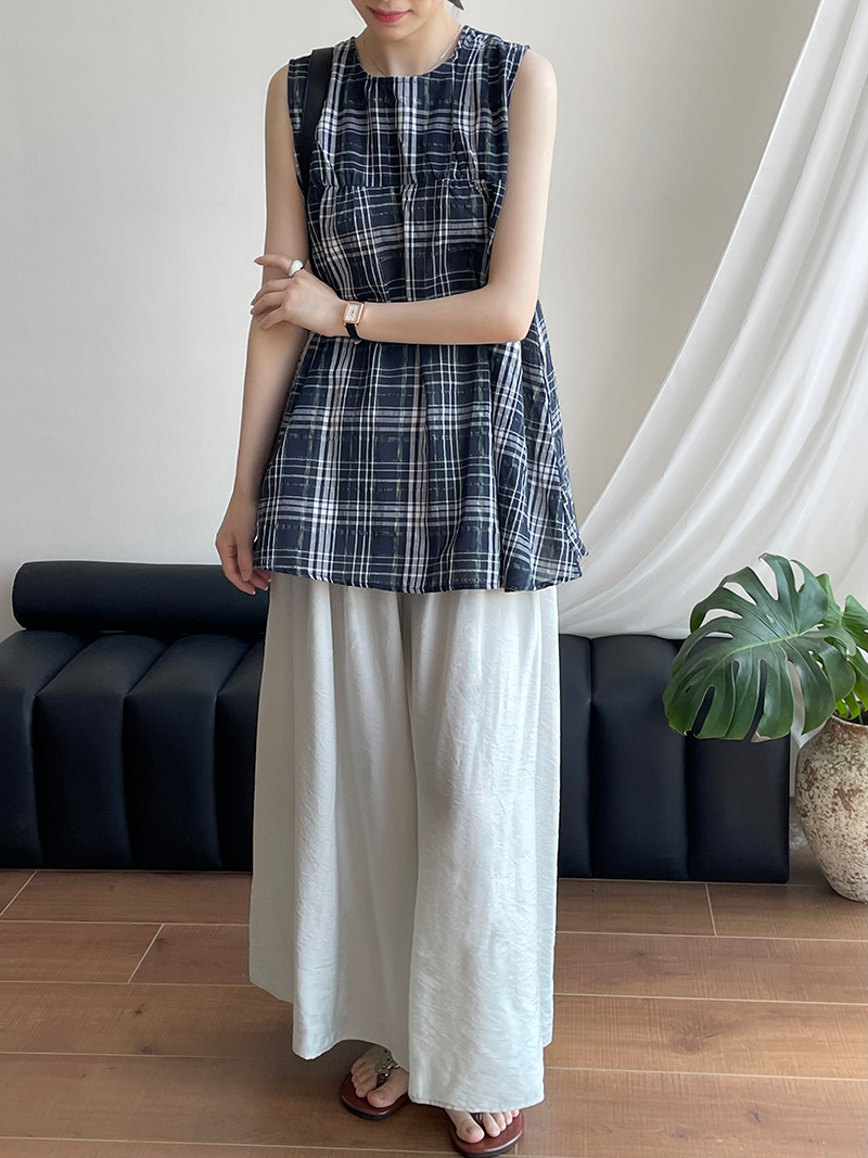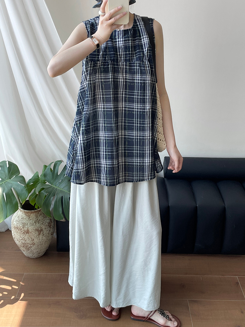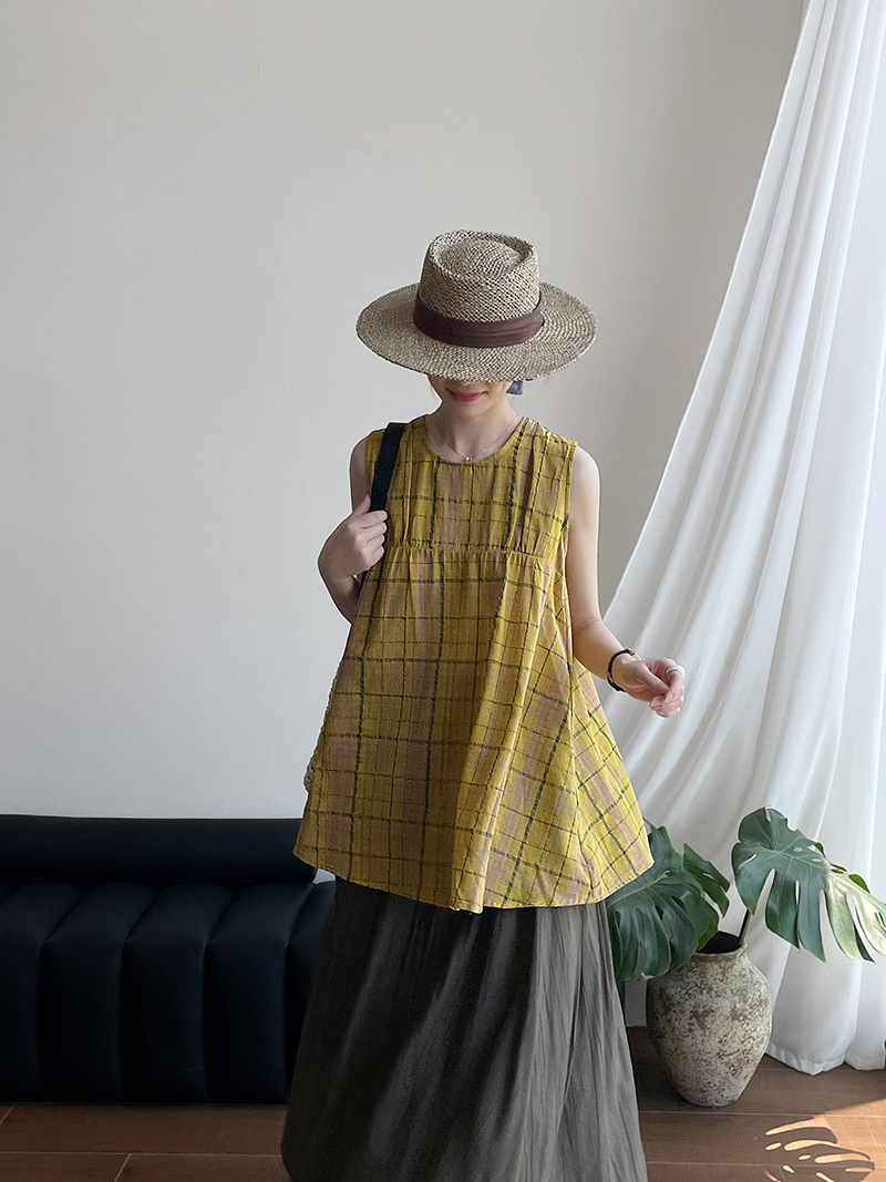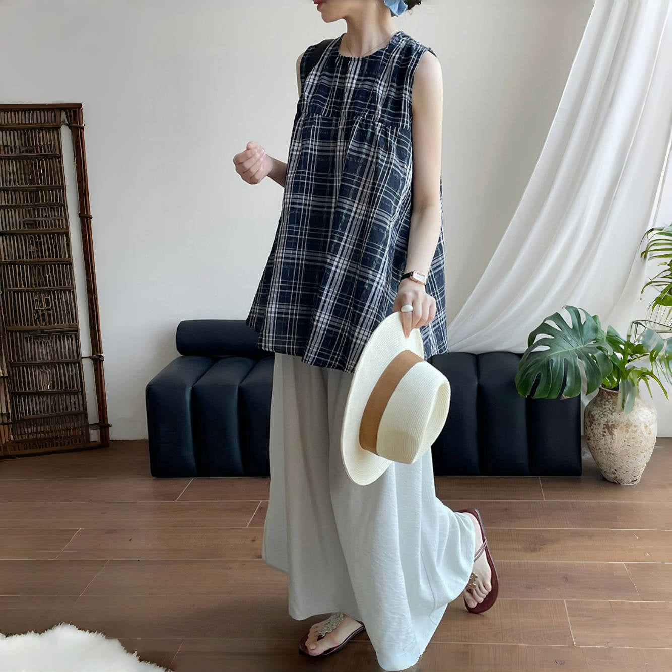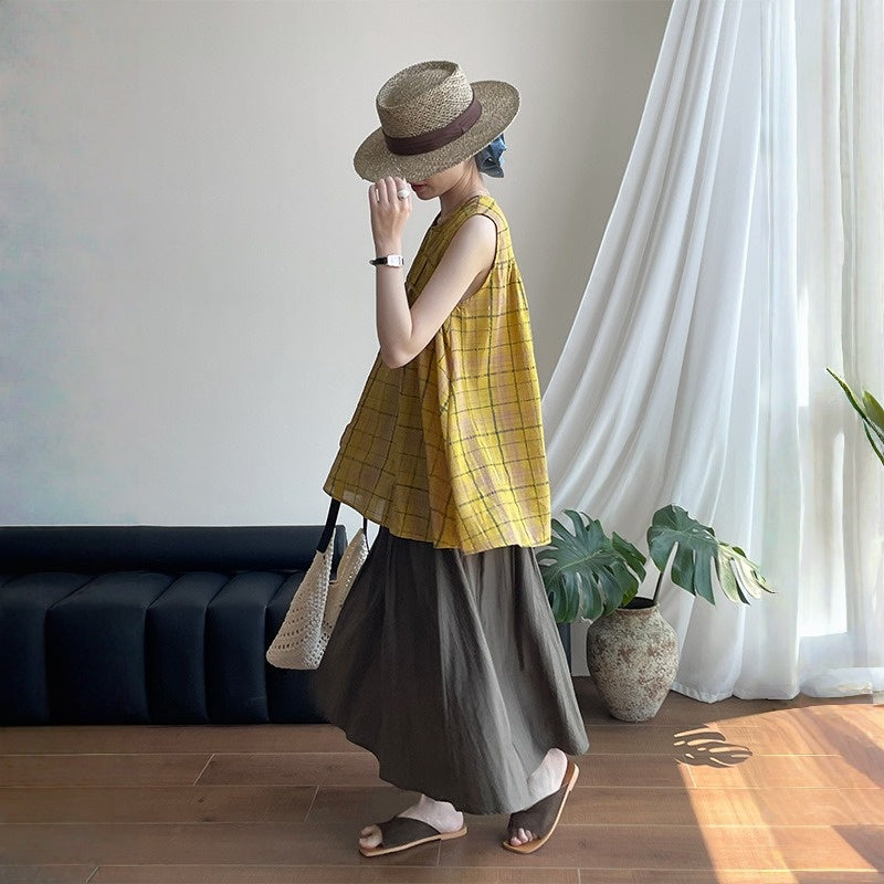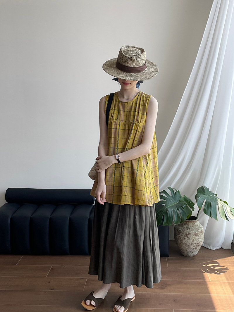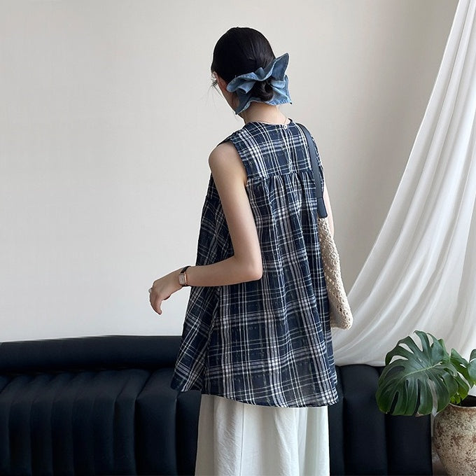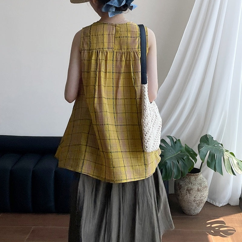 【トップス】夏 バイカラー チェック柄 ベビードールトップス ブラウス 【JZシリーズ】
