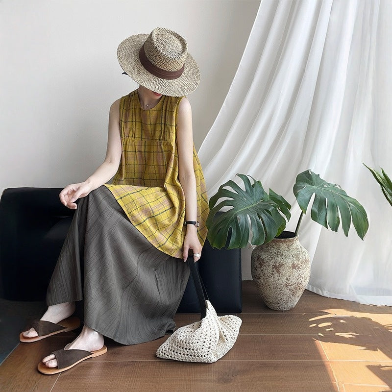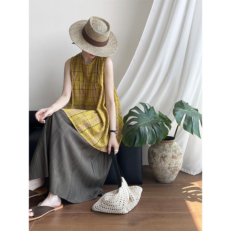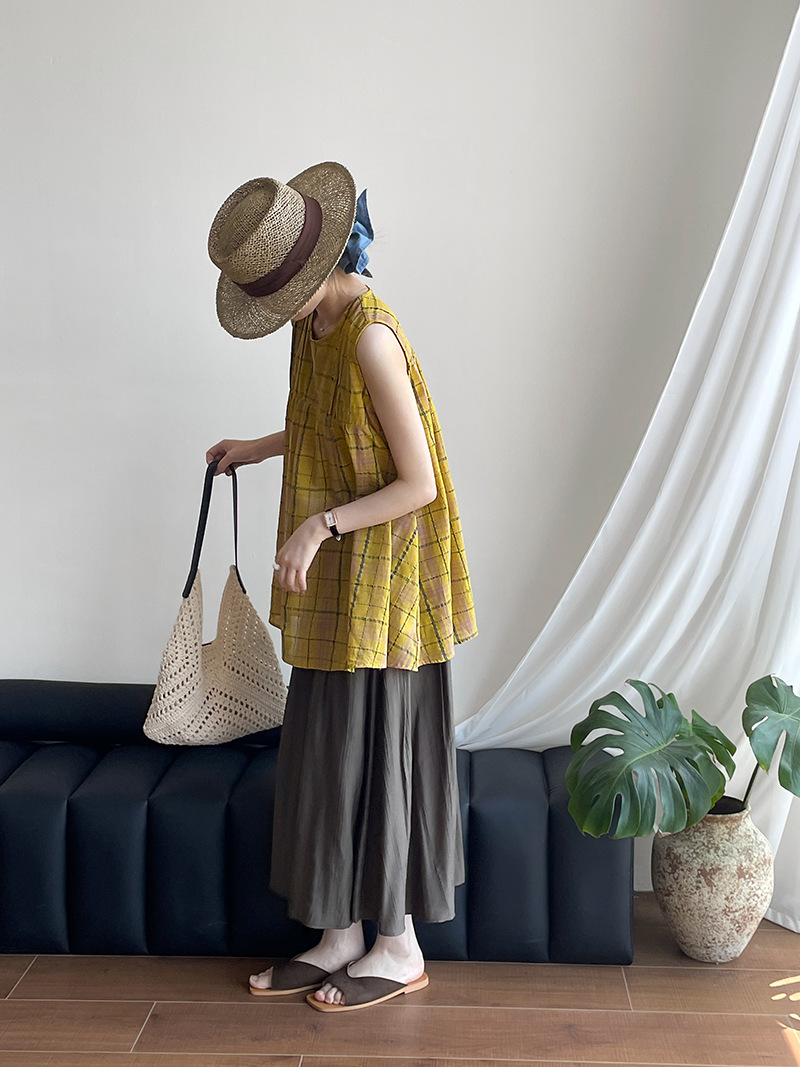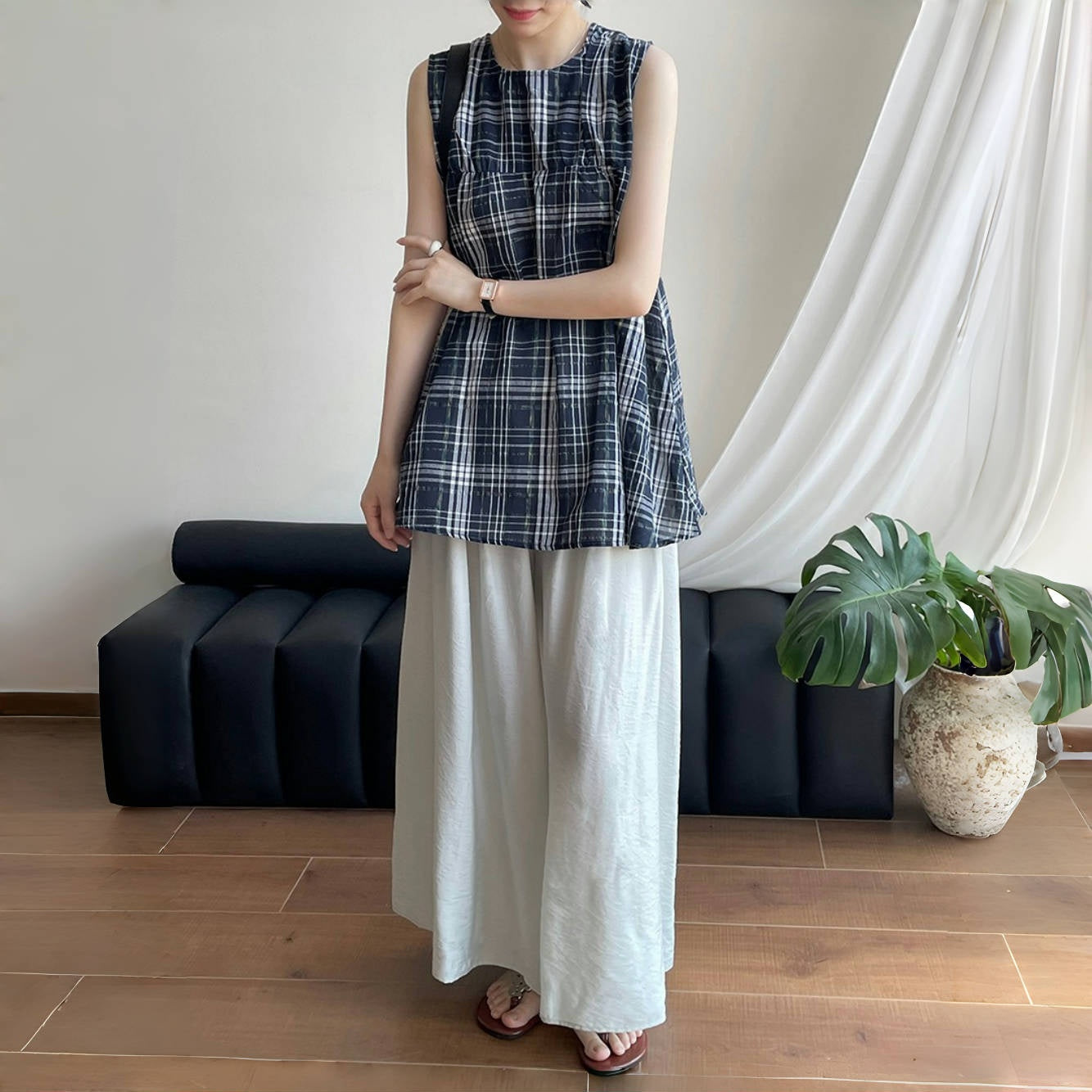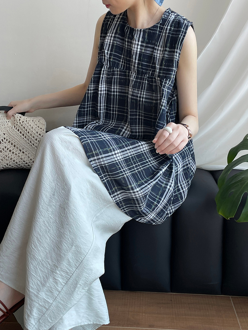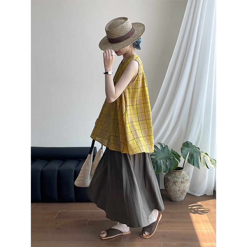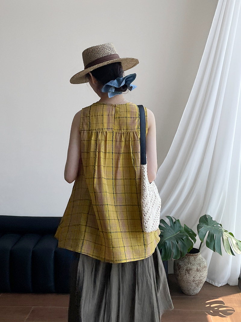 【トップス】夏 バイカラー チェック柄 ベビードールトップス ブラウス 【JZシリーズ】
