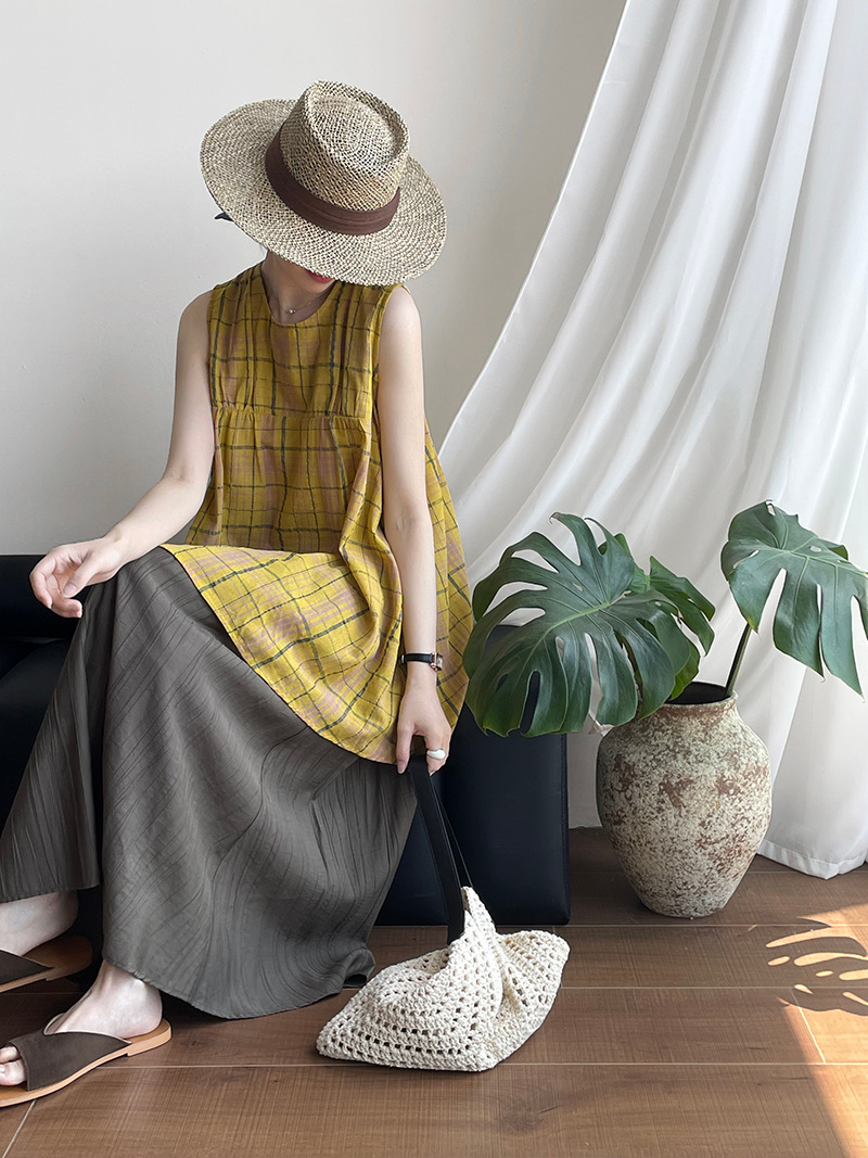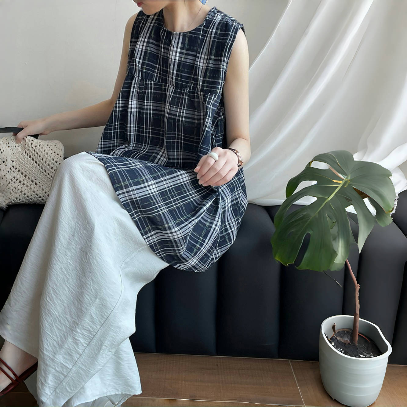 【ワンピース】起毛素材 チェック柄 レトロ クルーネック 長袖 ワンピース 【JZシリーズ】