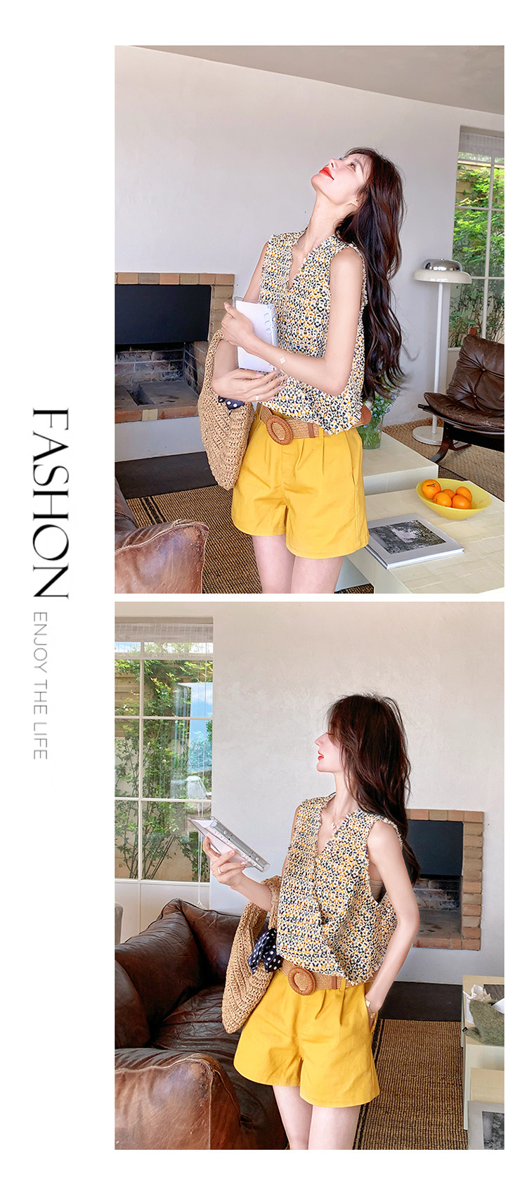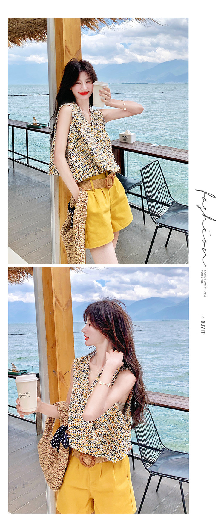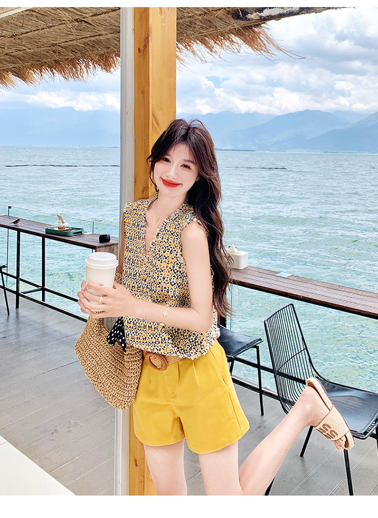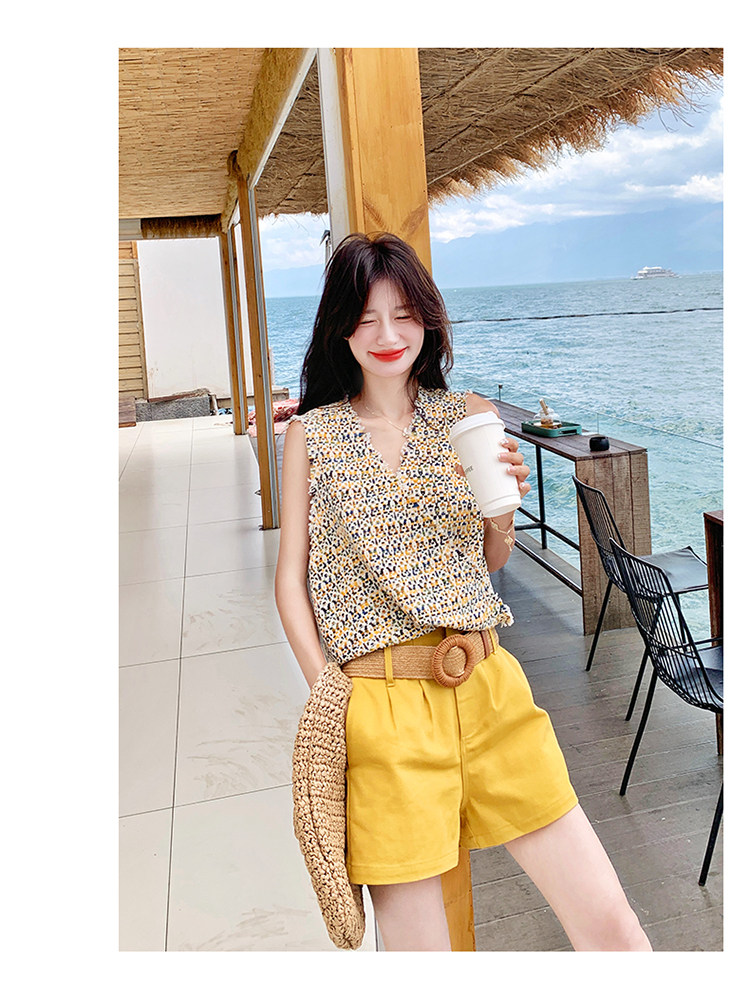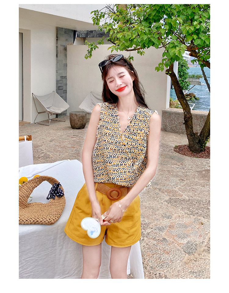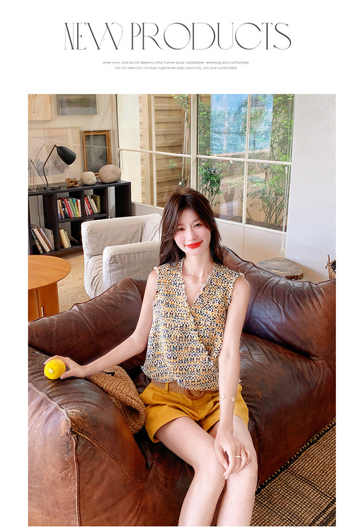 2点セット【セットアップ】ドーパミンコーデ シャネル風 ノースリーブトップス+ショートパンツ 上下セット【SHシリーズ】