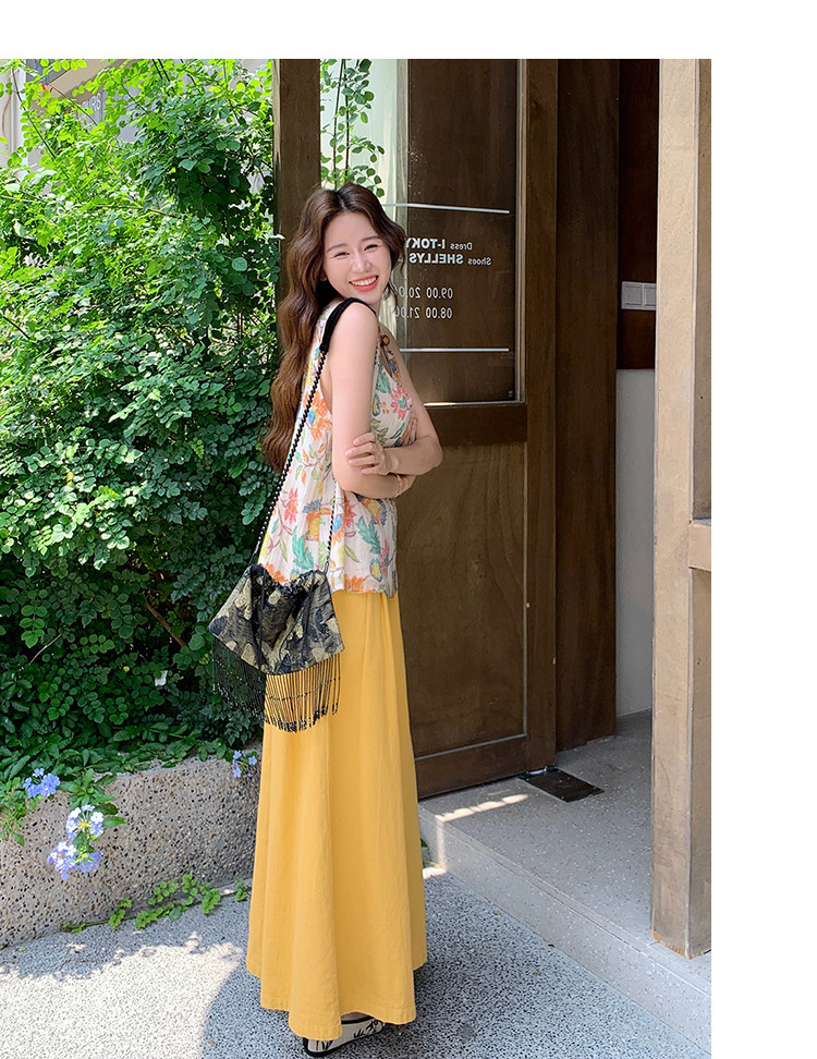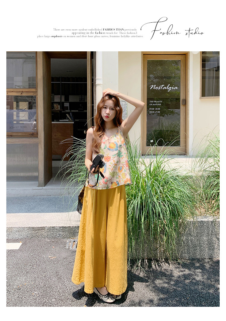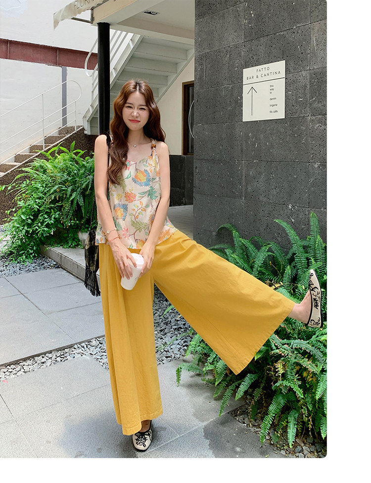 2点セット!【セットアップ】リゾート風 夏 ゆったり シェイプアップ トップス+ワイドパンツ 上下セット【SHシリーズ】