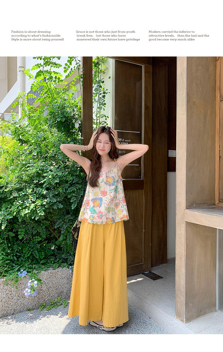 【商品名】【ボトムス】リゾート風 夏 ゆったり シェイプアップ トップス+ワイドパンツ 上下セット【SHシリーズ】