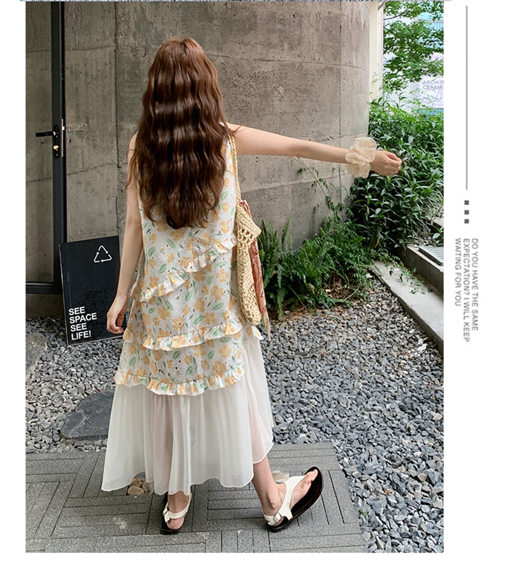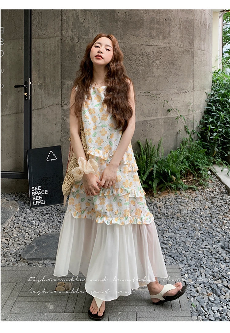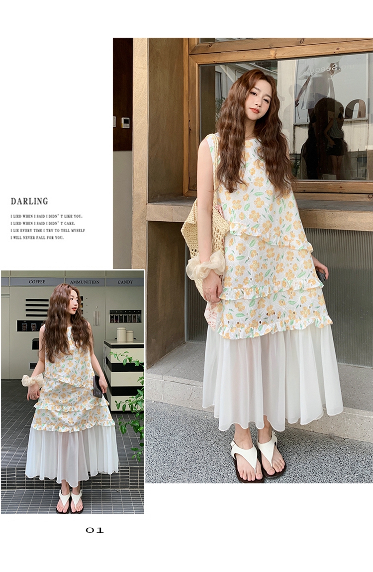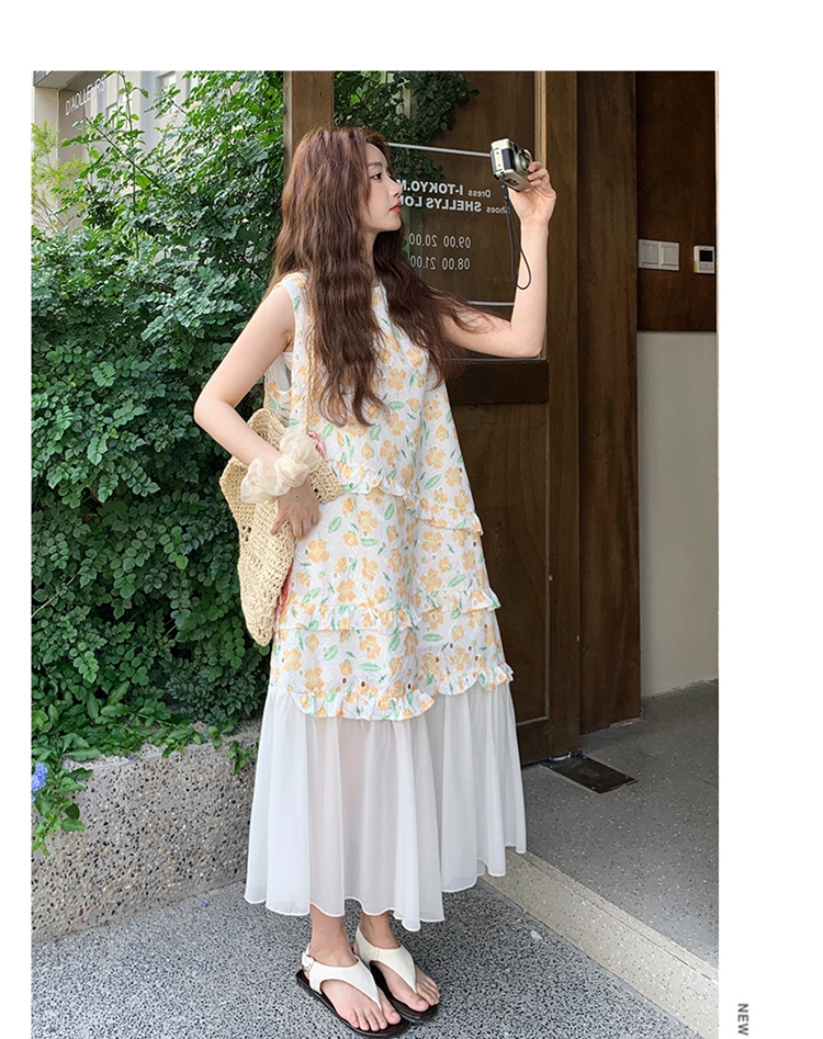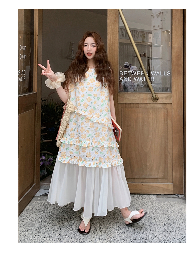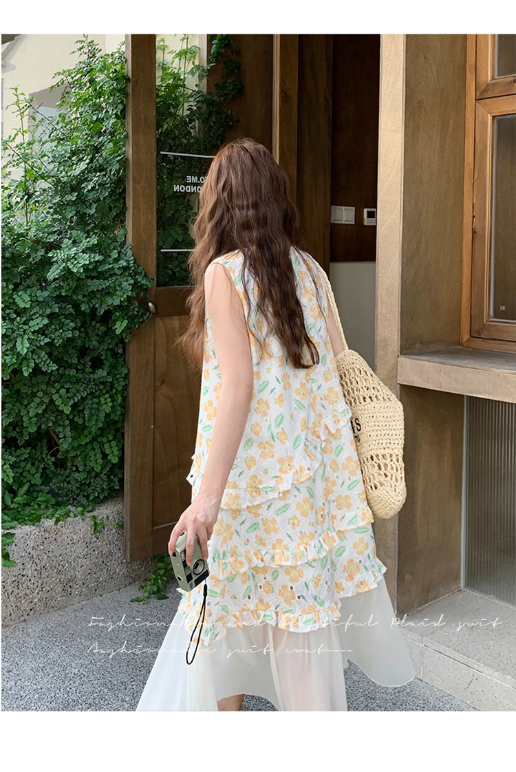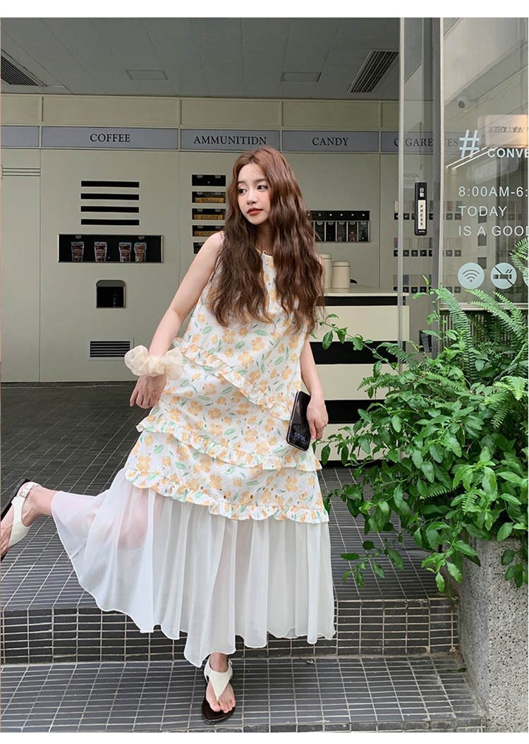 【商品名】【ワンピース】夏 かわいい メッシュ切替 ゆったり ノースリーブ フラワーワンピース【SHシリーズ】