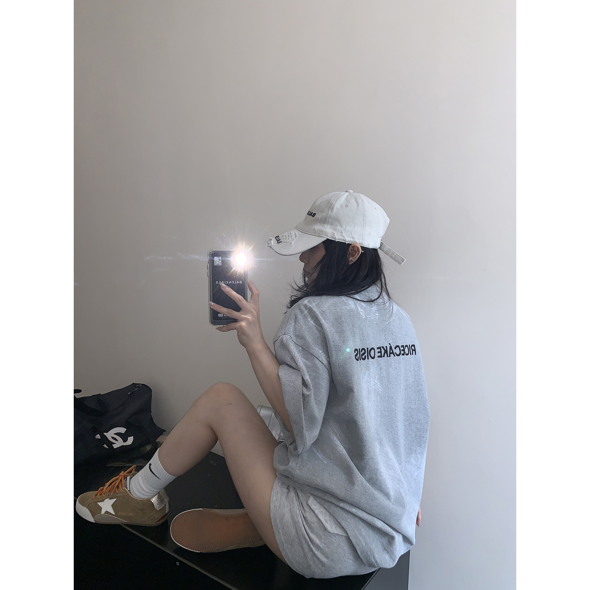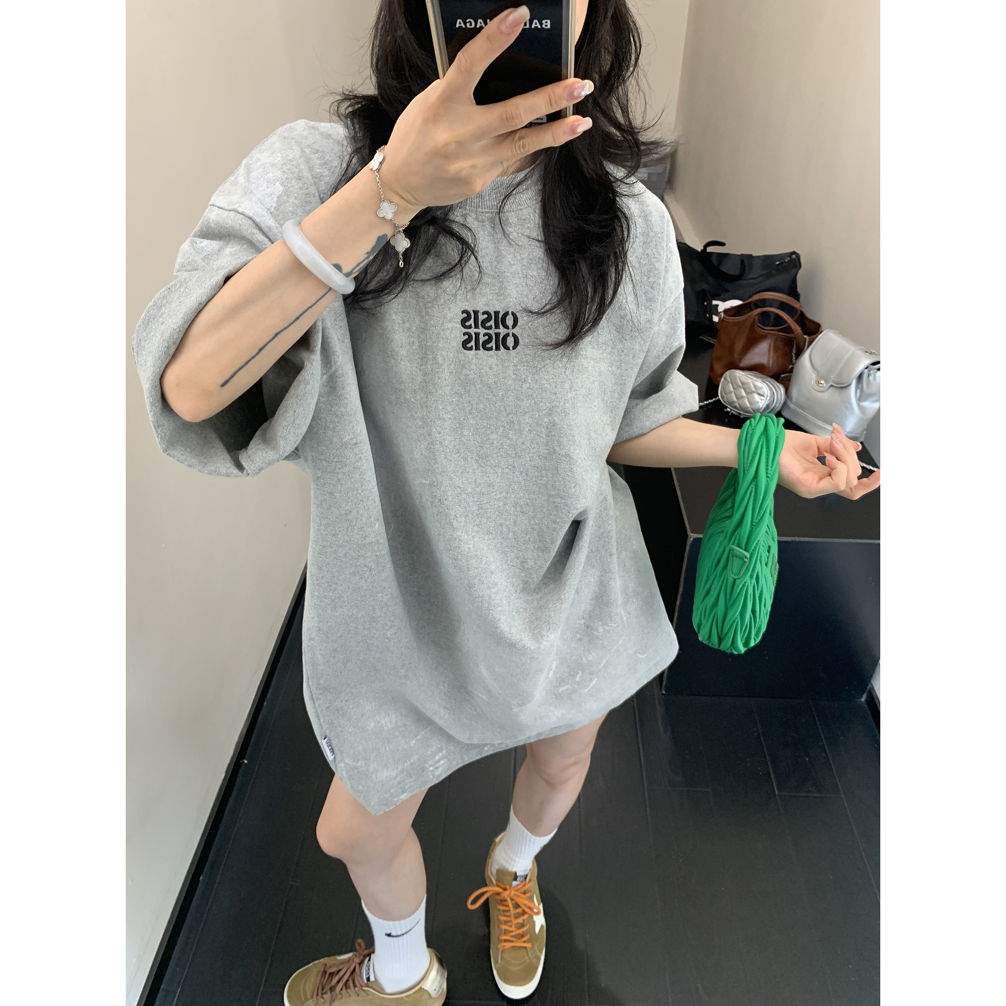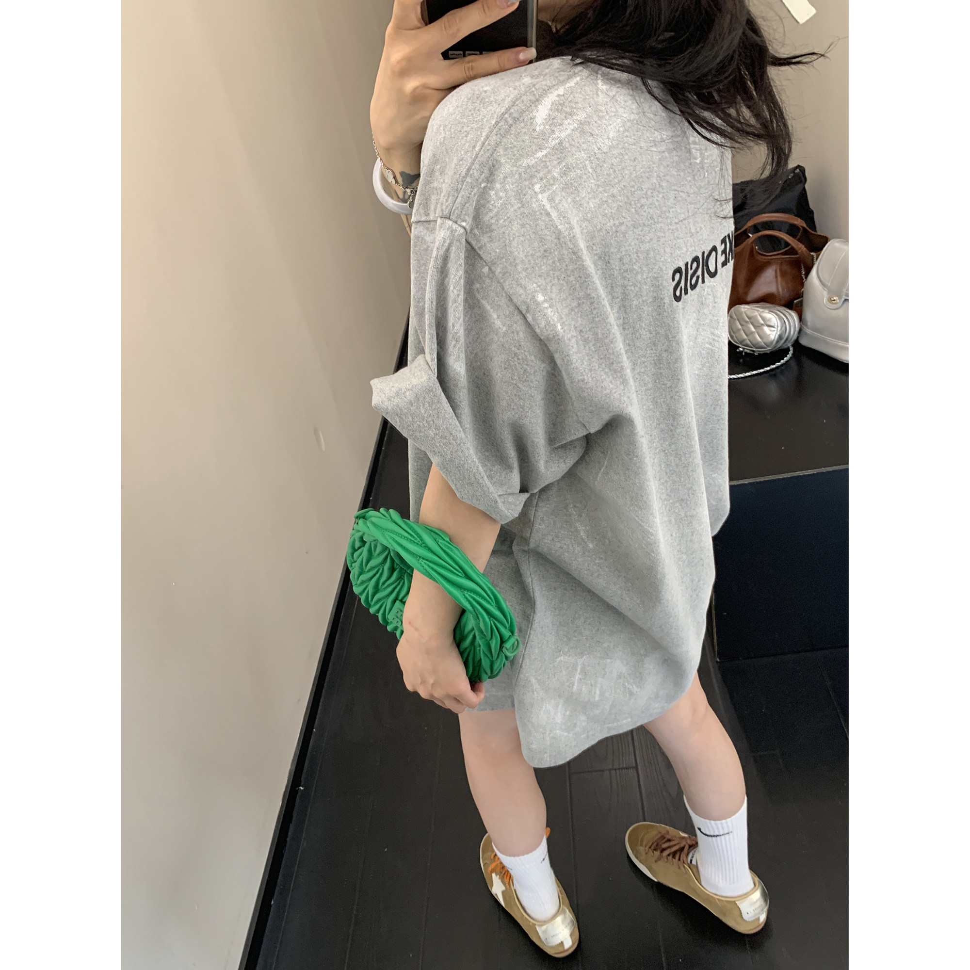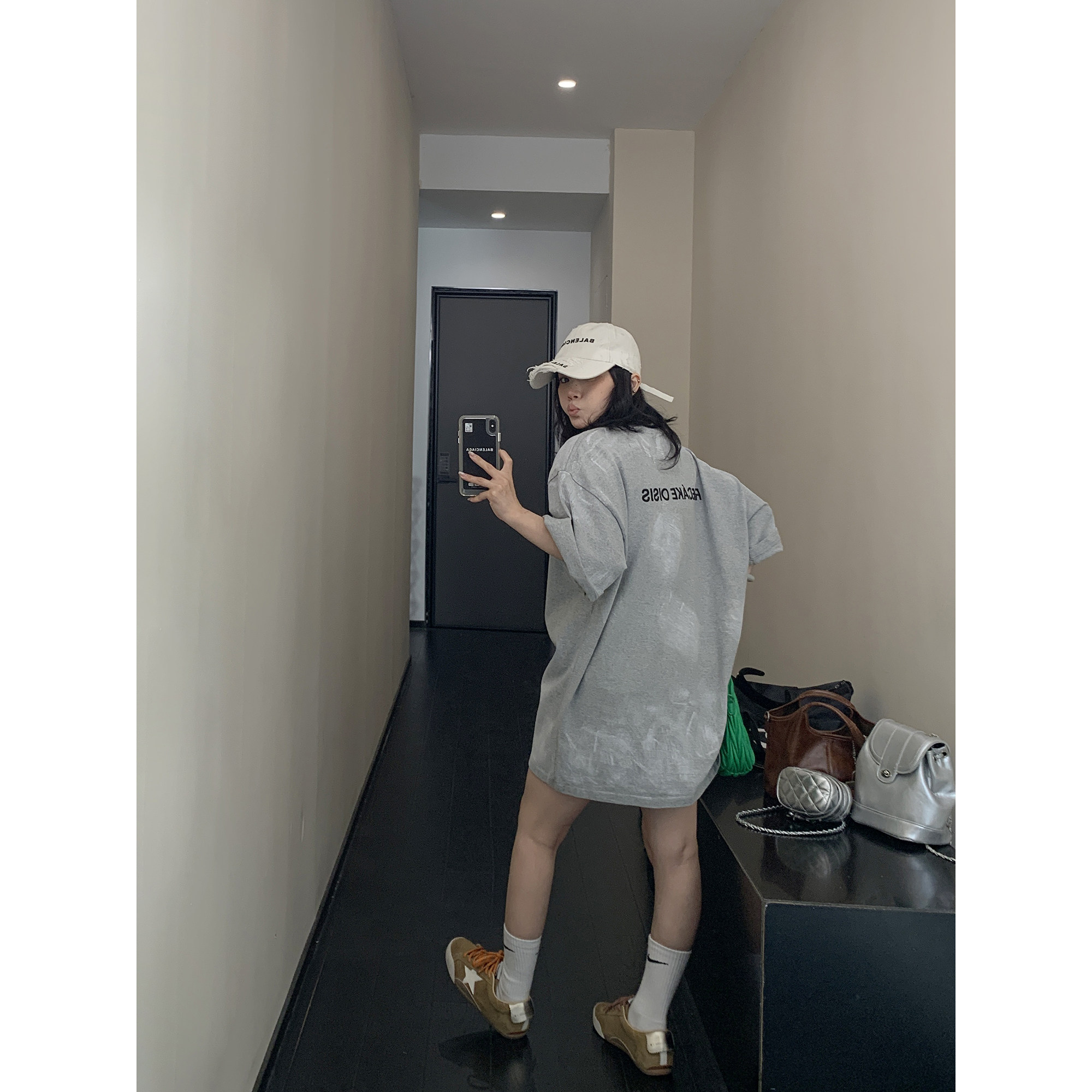 【商品名】【トップス】アメリカン ヴィンテージ風 リラックス 感 ダメージ ペイント 刺繍 半袖 Tシャツ【FCシリーズ】
