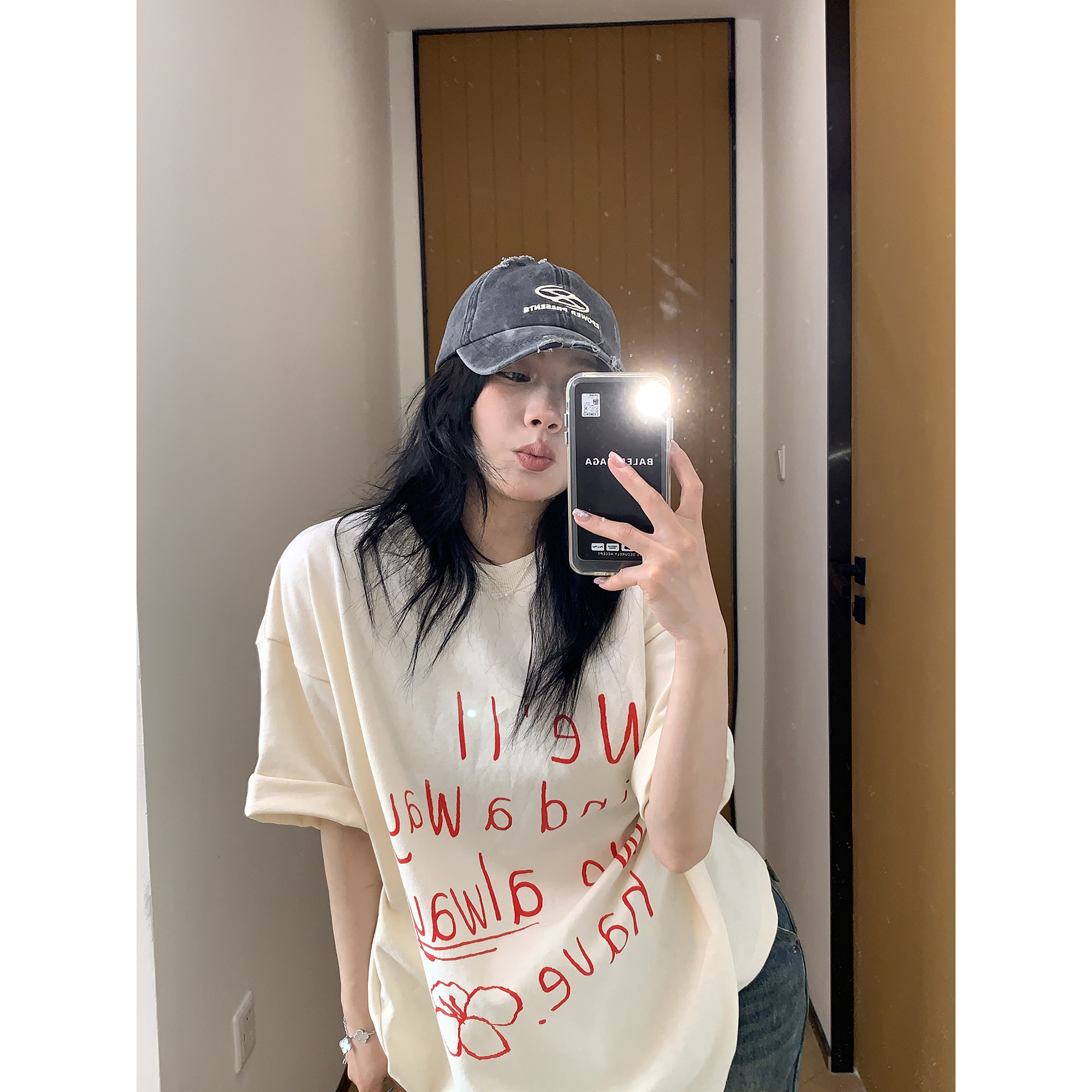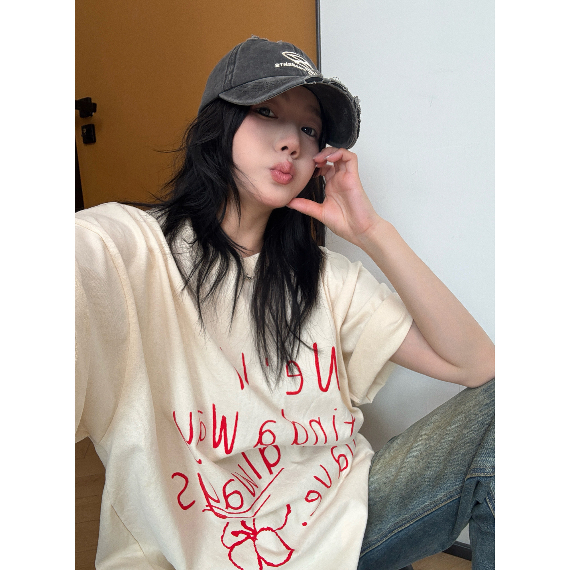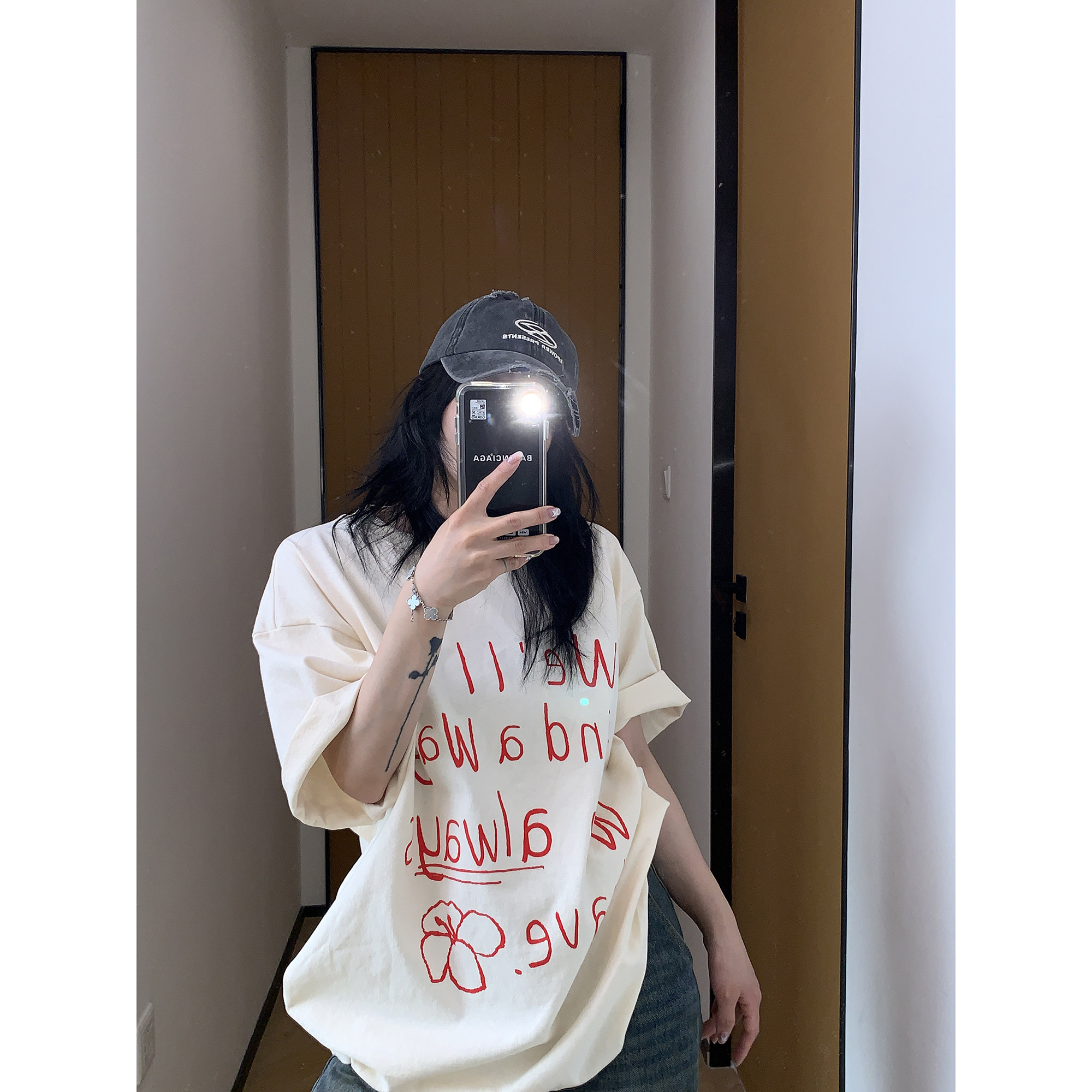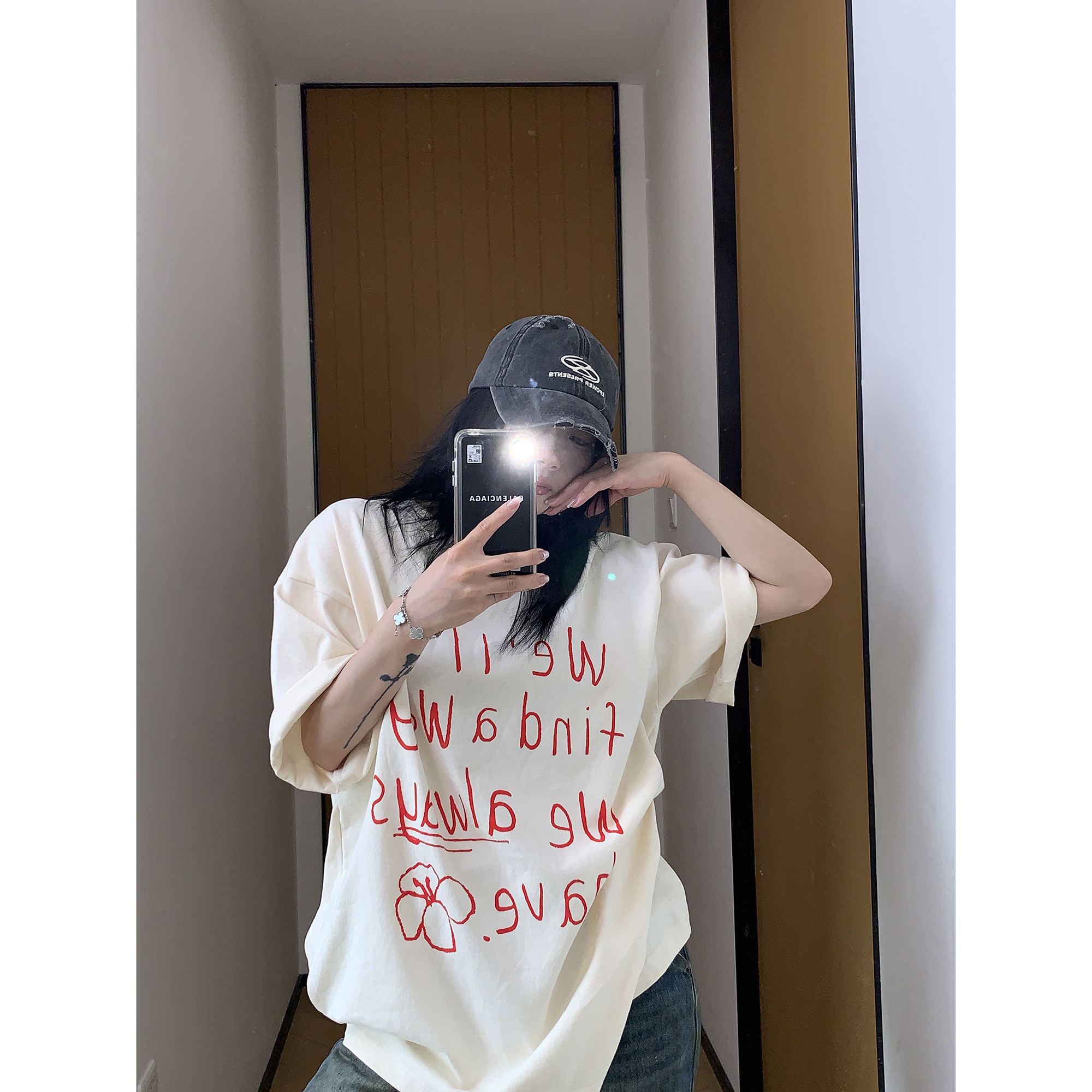 【商品名】【トップス】シンプル リラックス 感 アルファベット プリント コットン 半袖 Tシャツ【FCシリーズ】