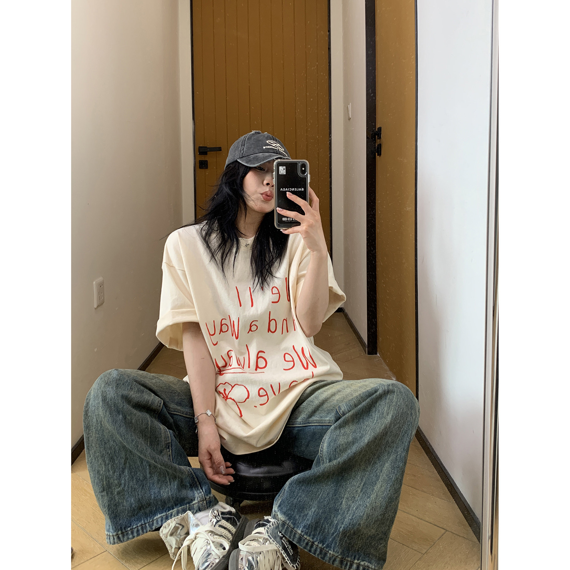 【トップス】春秋冬 Oversize レトロ 刺繍 ゆったり フード付き デニム パーカー【FCシリーズ】【15~20日発送】