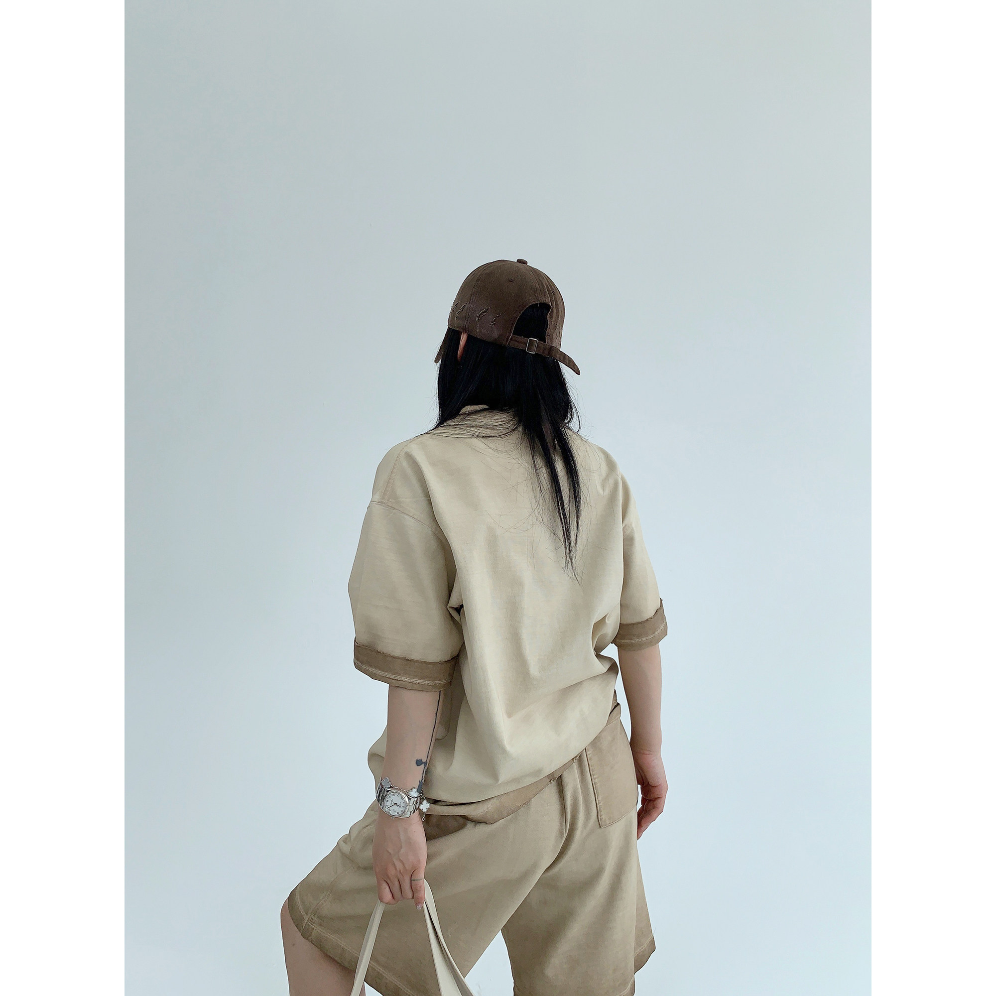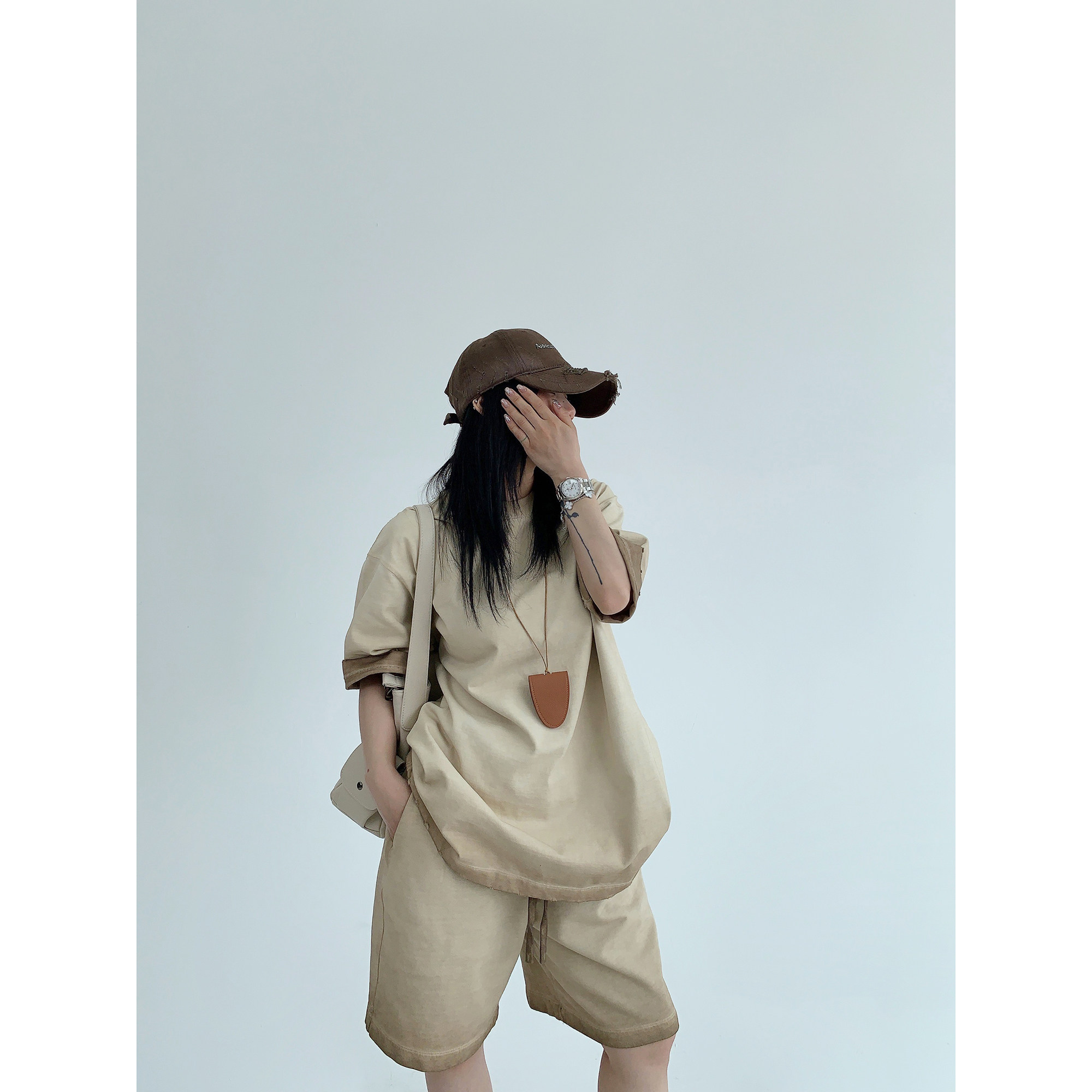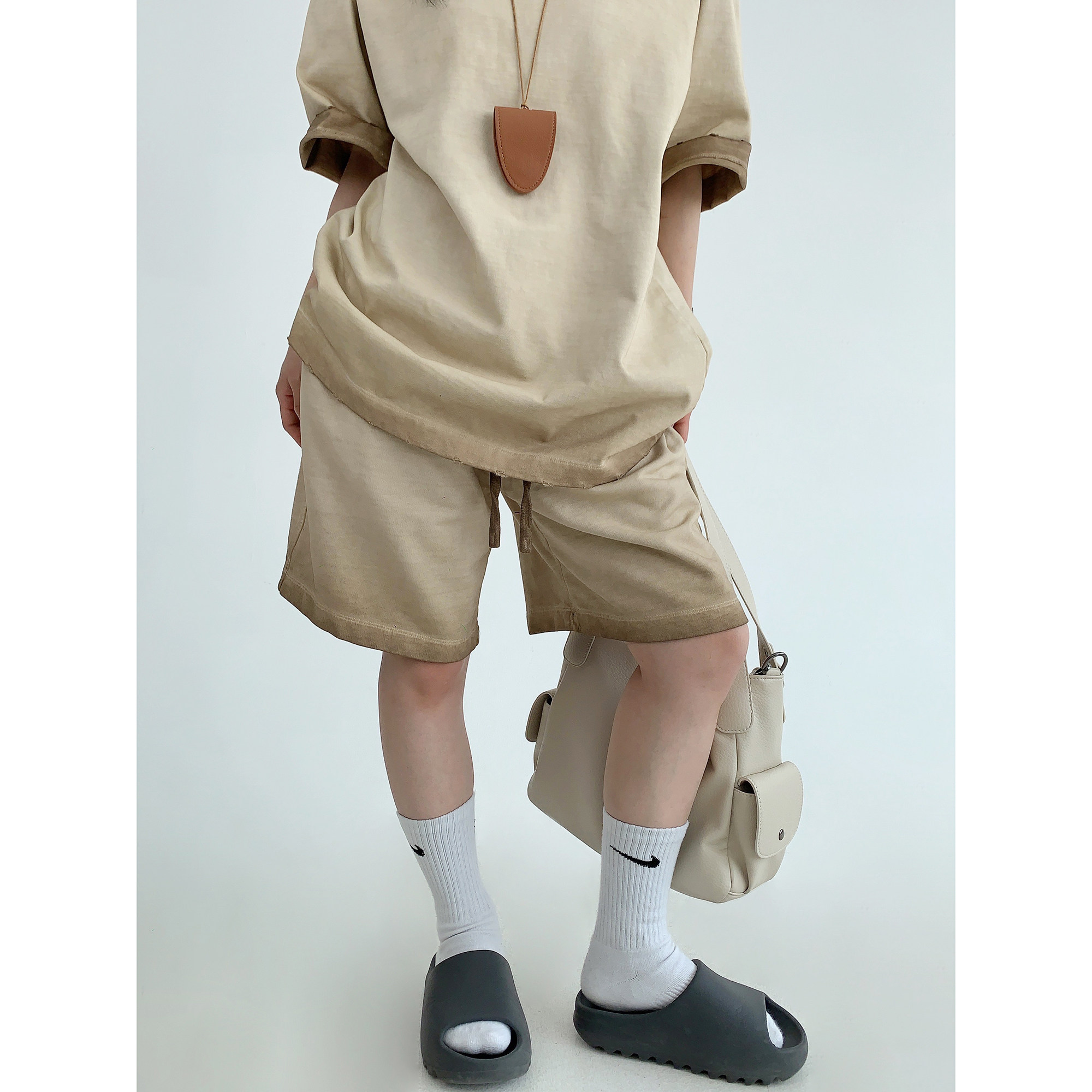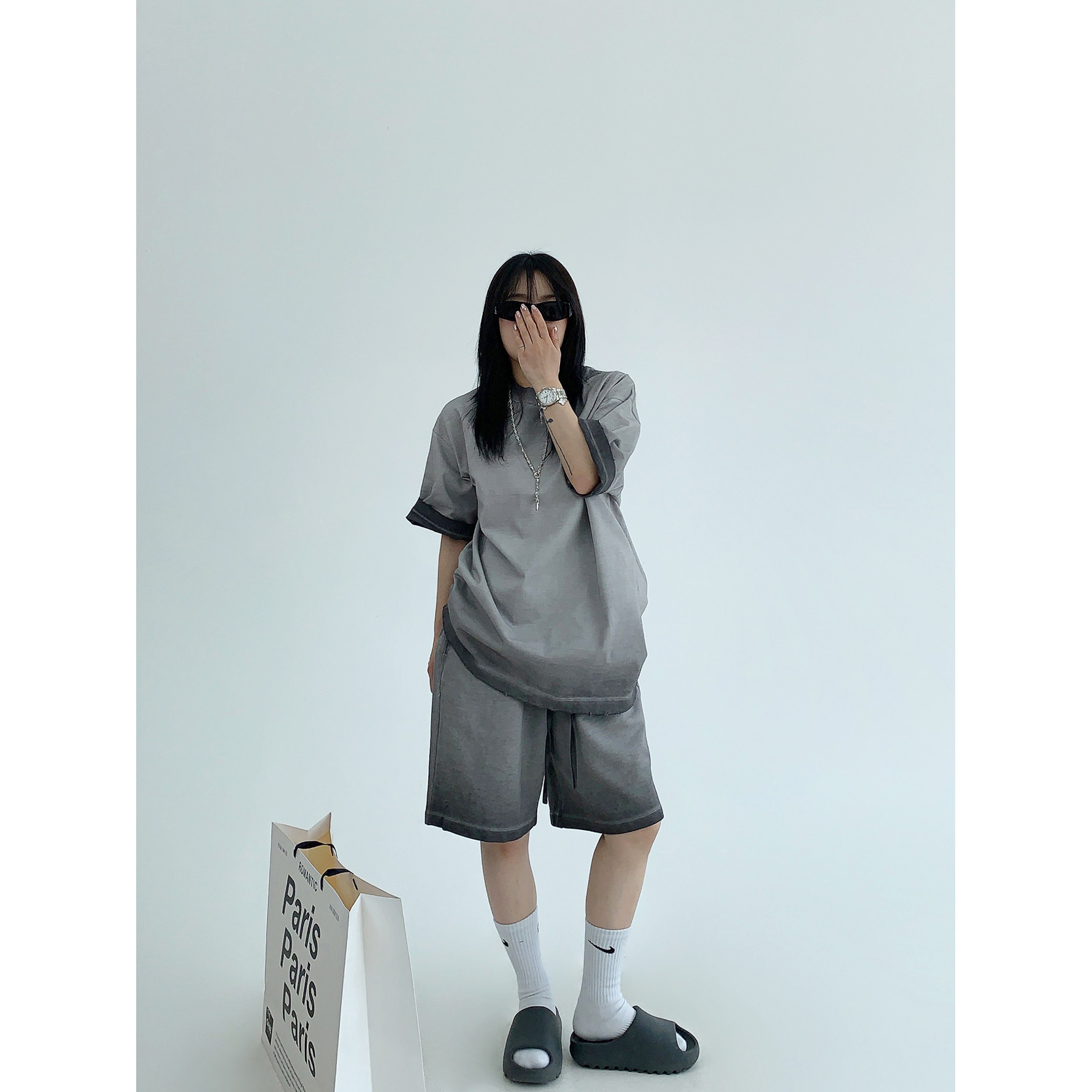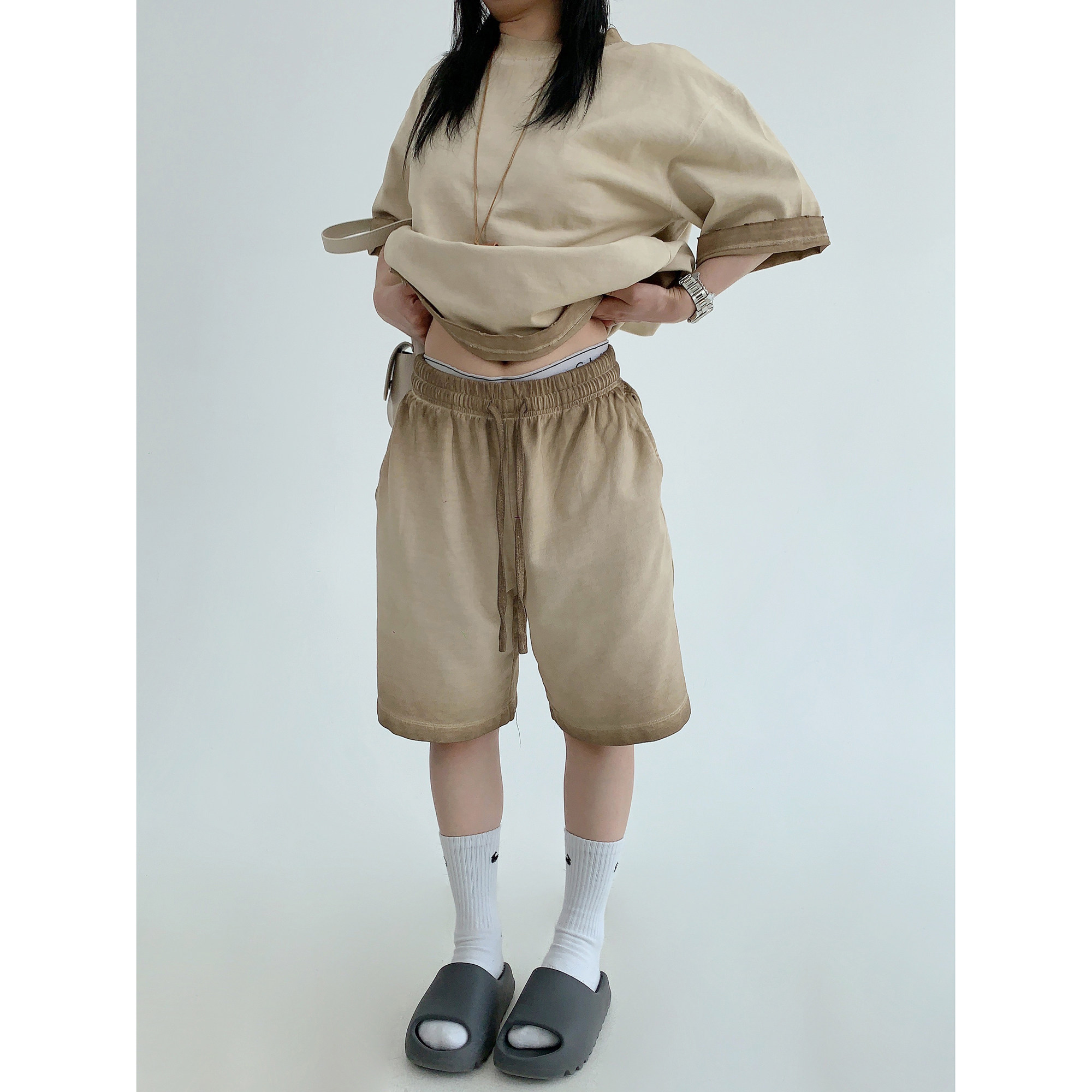 【単品注文】【ボトムス】ルーズ リラックス感 ウォッシュド ダメージ加工 Tシャツ + ショートパンツ 上下セット【FCシリーズ】