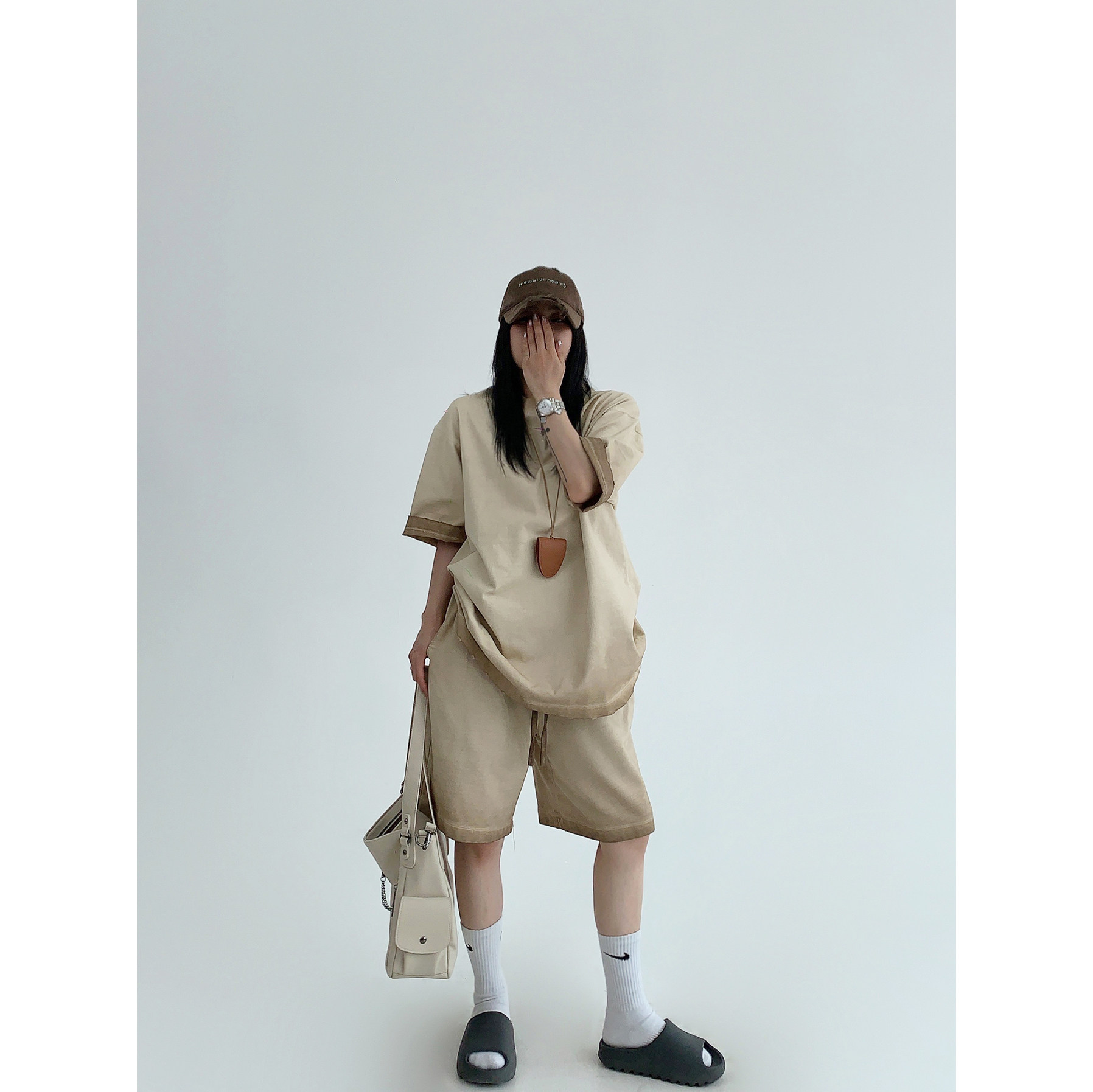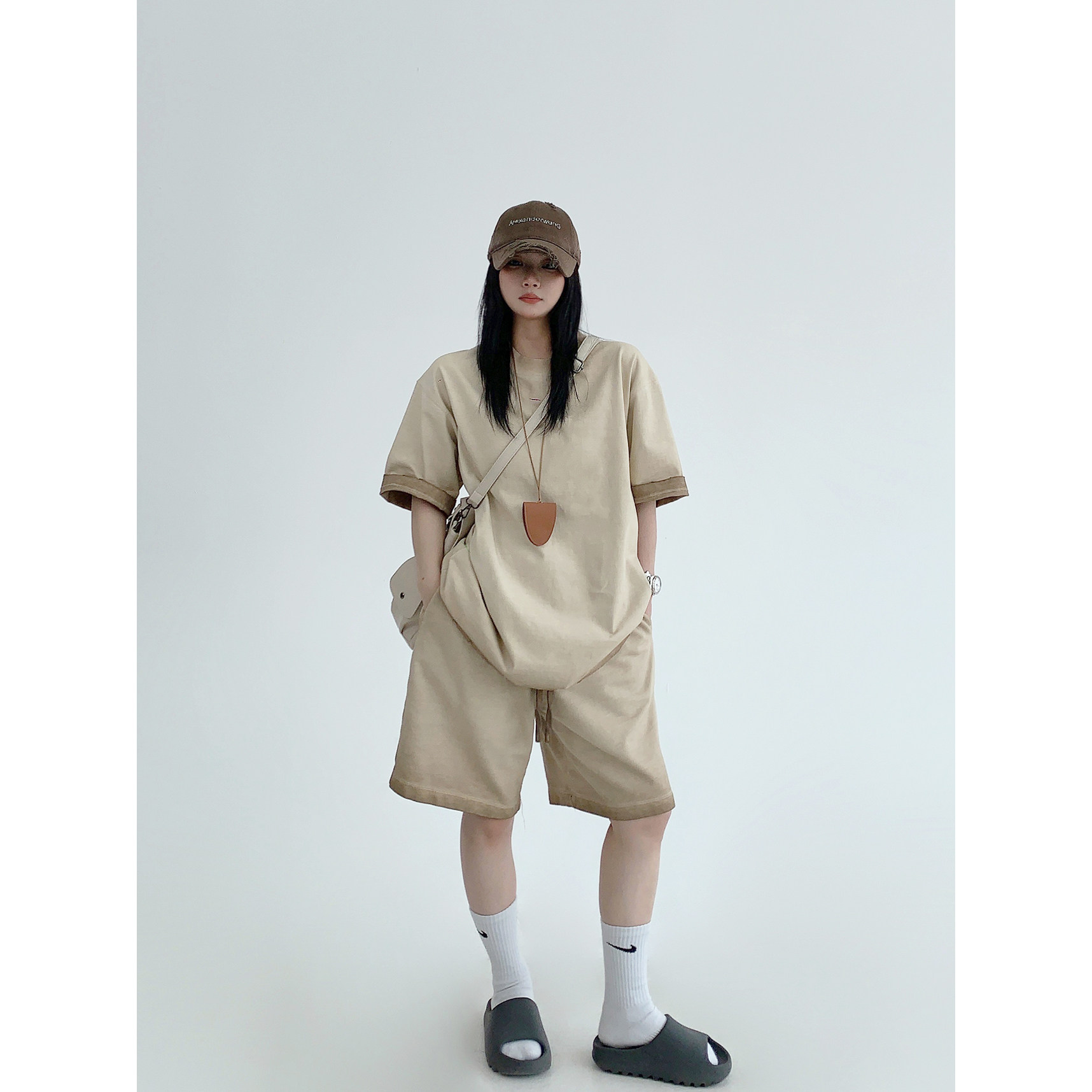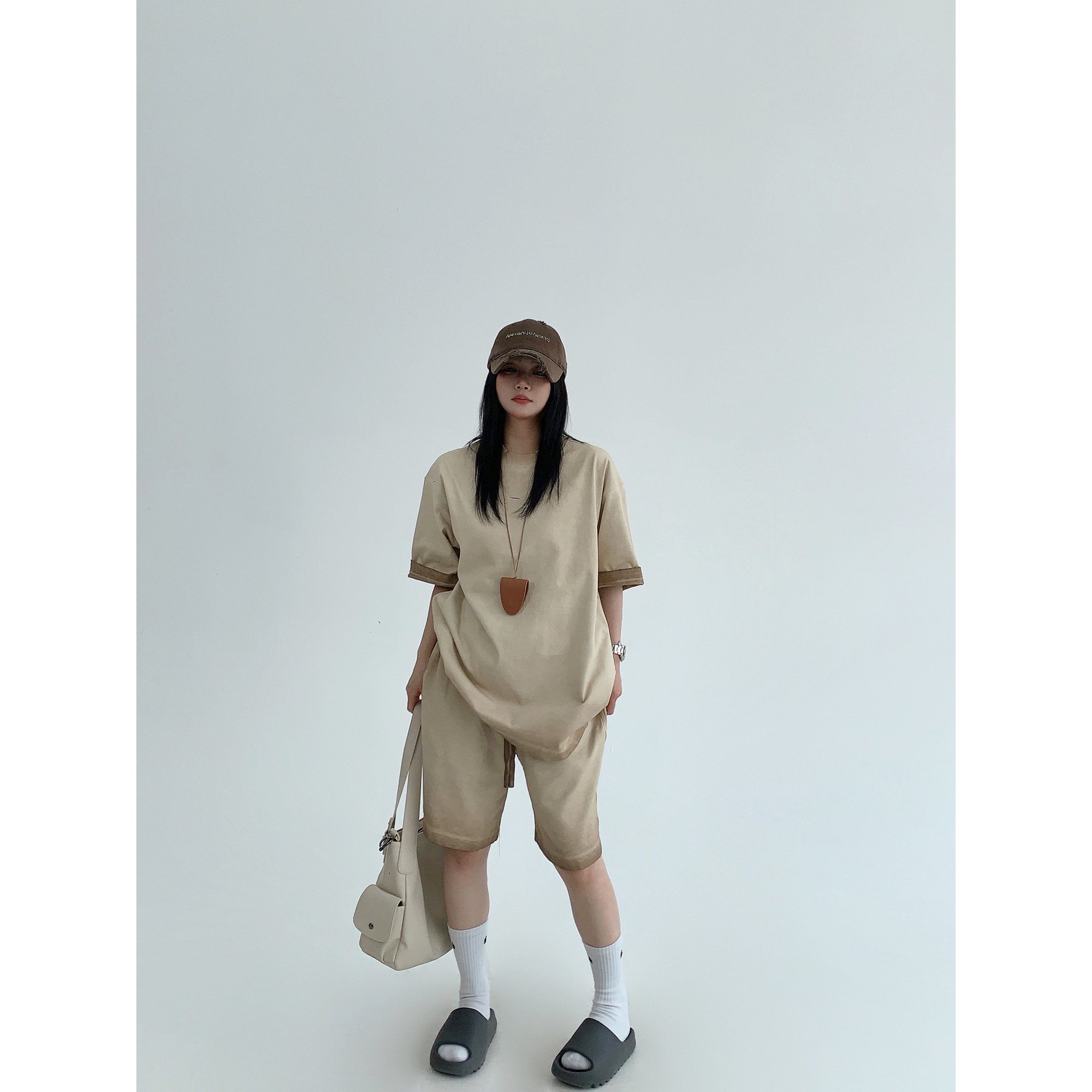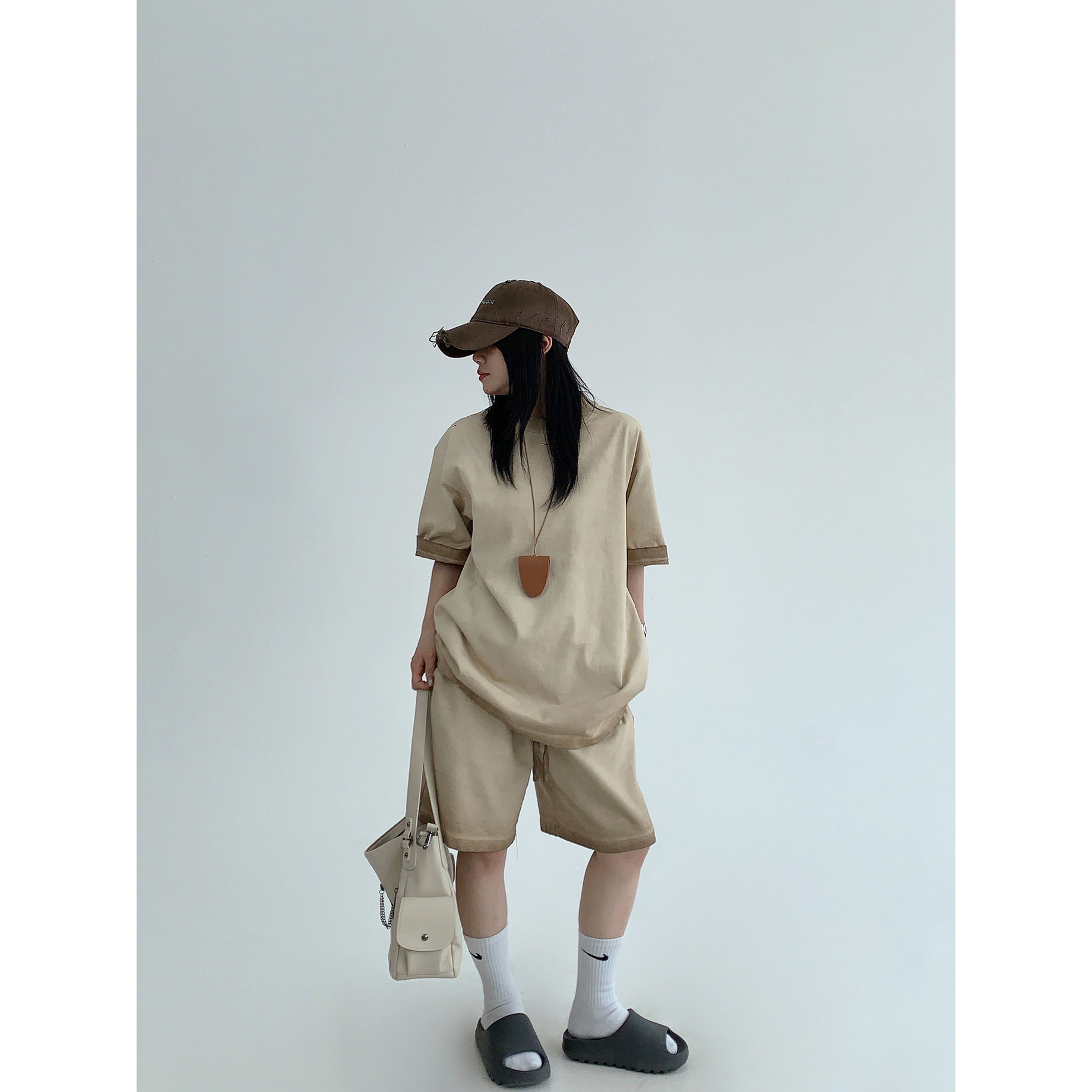 【単品注文】【ボトムス】ルーズ リラックス感 ウォッシュド ダメージ加工 Tシャツ + ショートパンツ 上下セット【FCシリーズ】