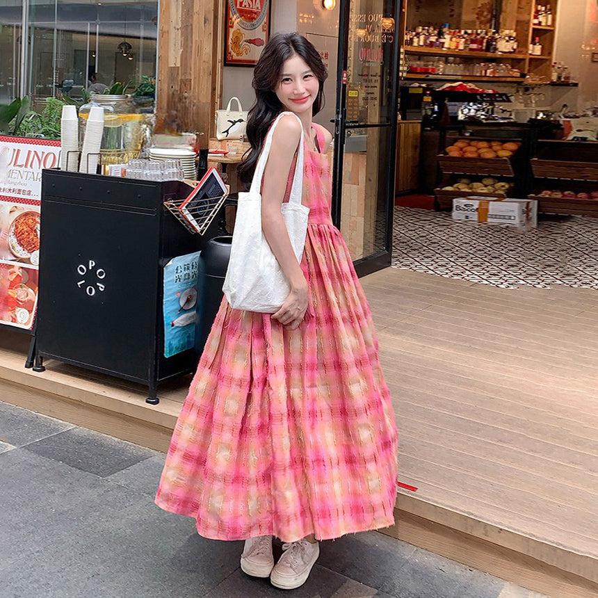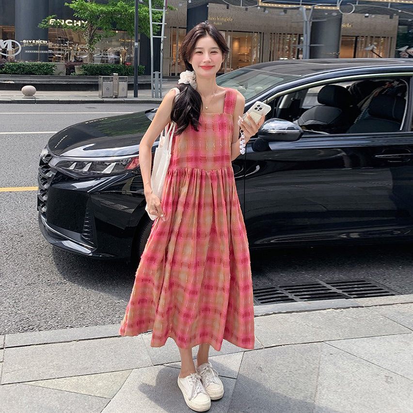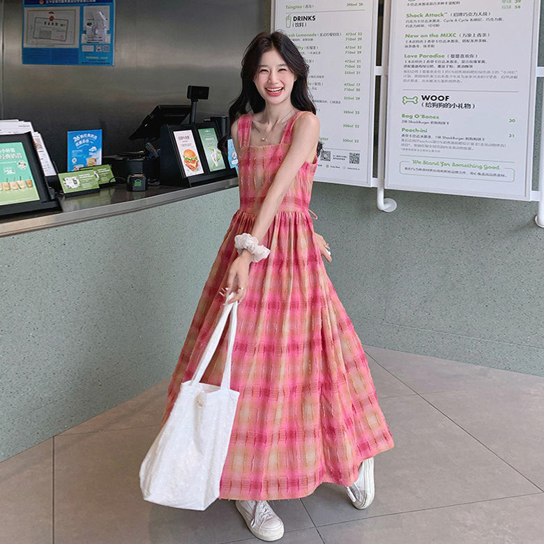 【商品名】【ワンピース】ドーパミンチェック 夏 トレンド 甘め初恋ガール ノースリーブワンピース【SHシリーズ】