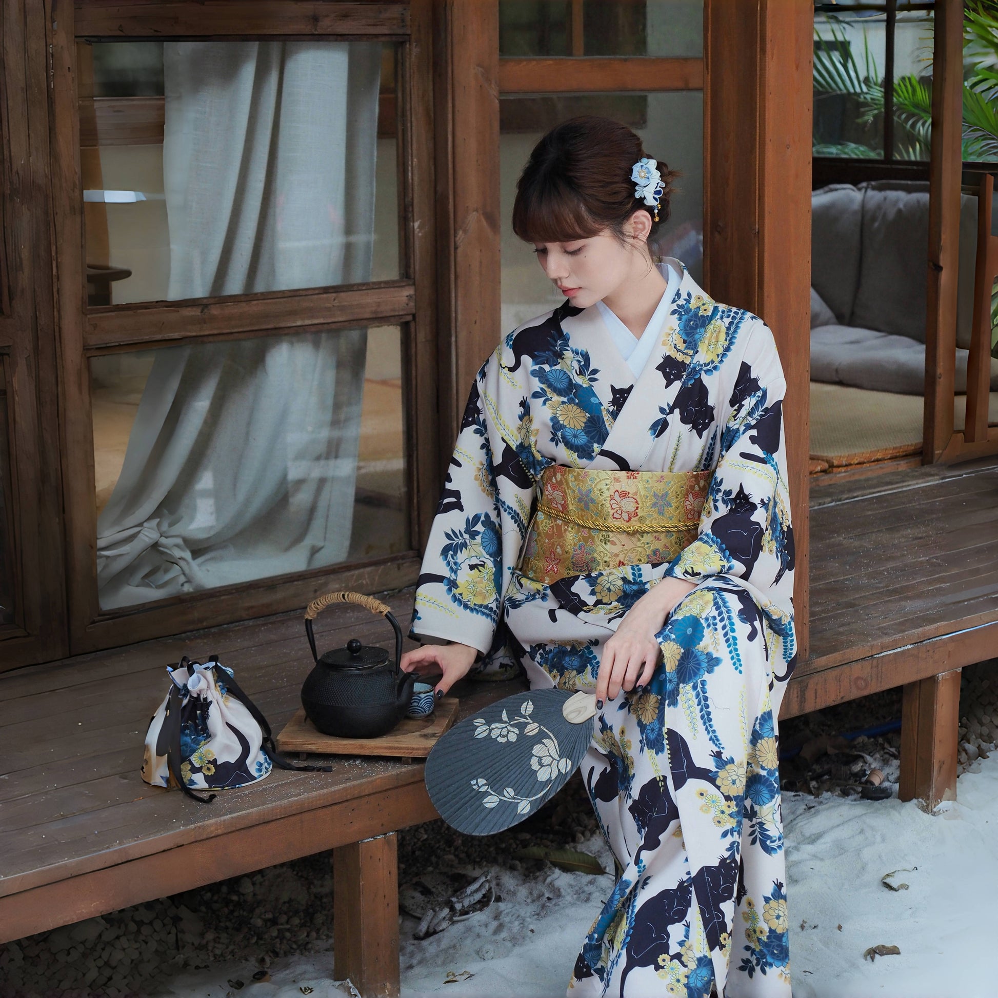 【ワンピース】夏 猫柄 いたずら 花柄 浴衣 【SHシリーズ】