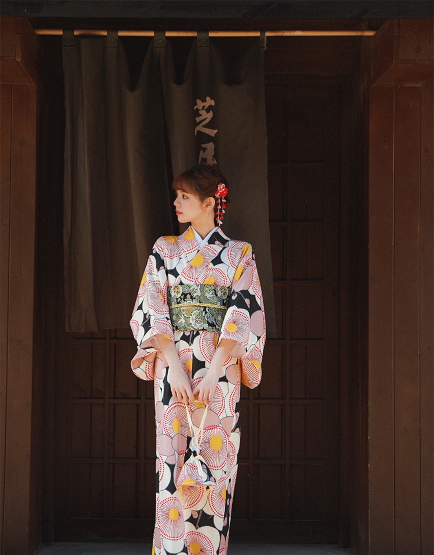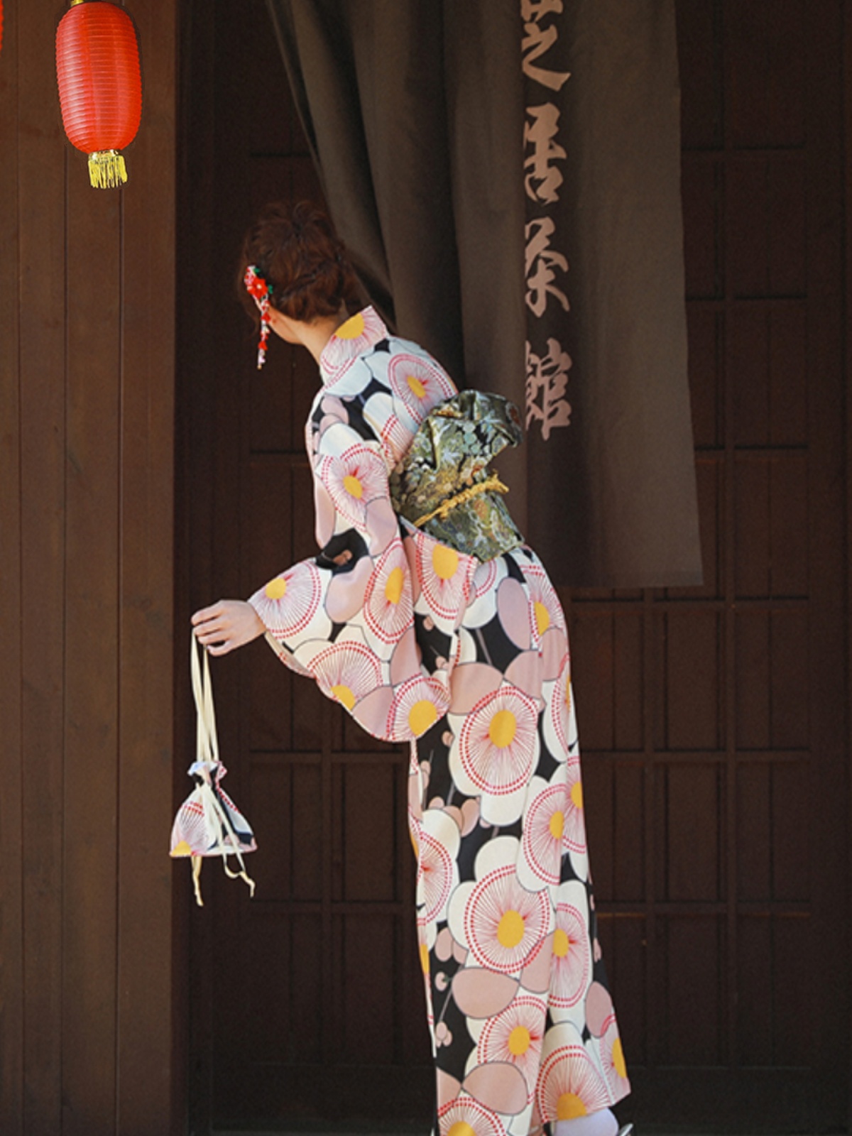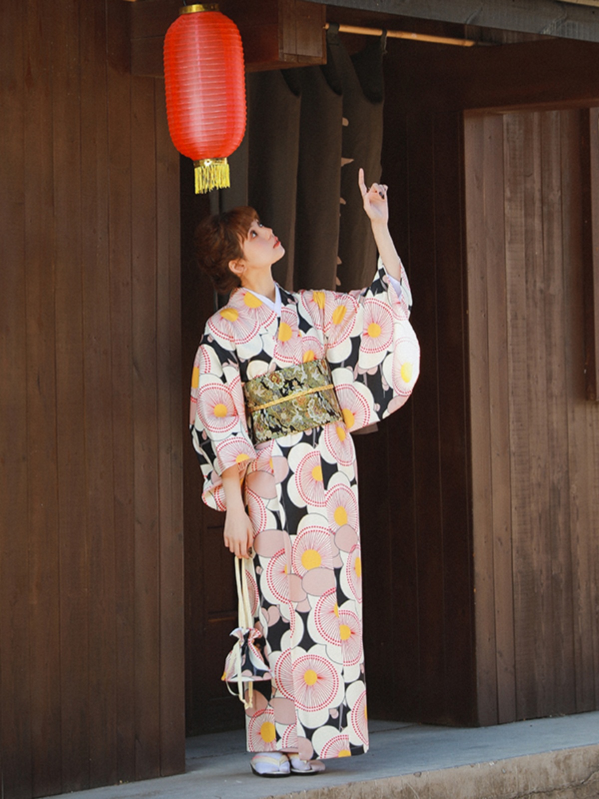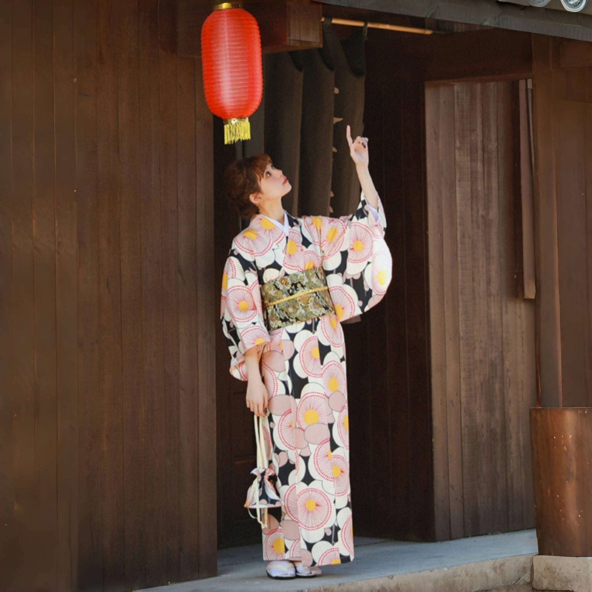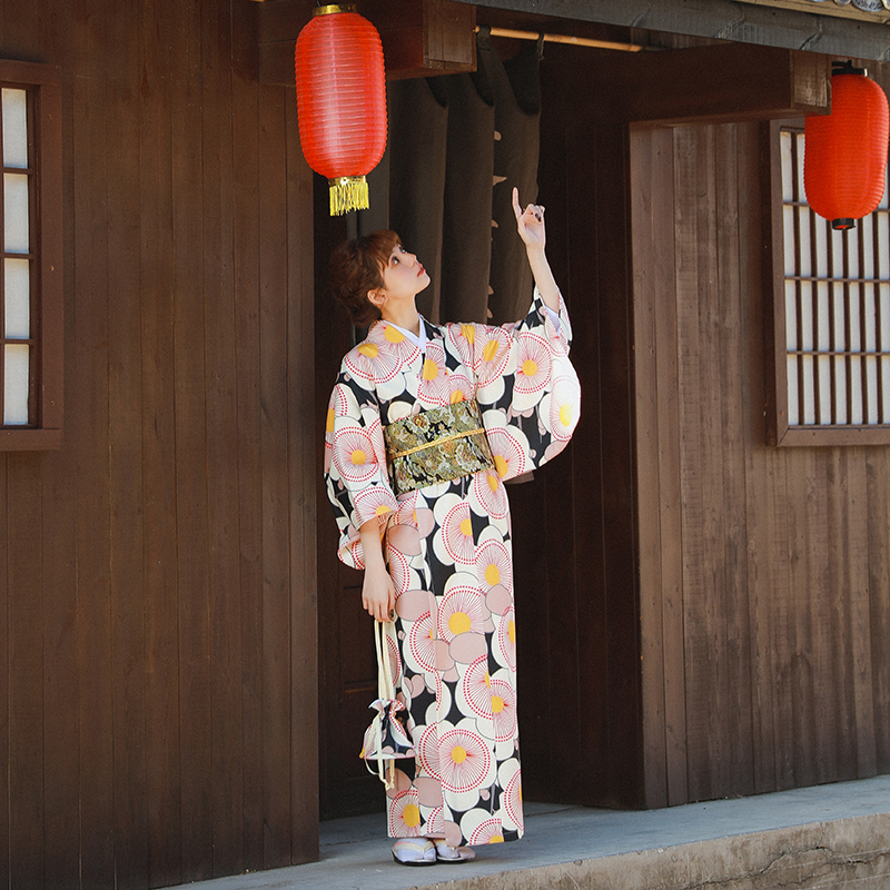 【商品名】【ワンピース】夏 花火大会 黒×ピンク ガーリー系 浴衣 【SHシリーズ】