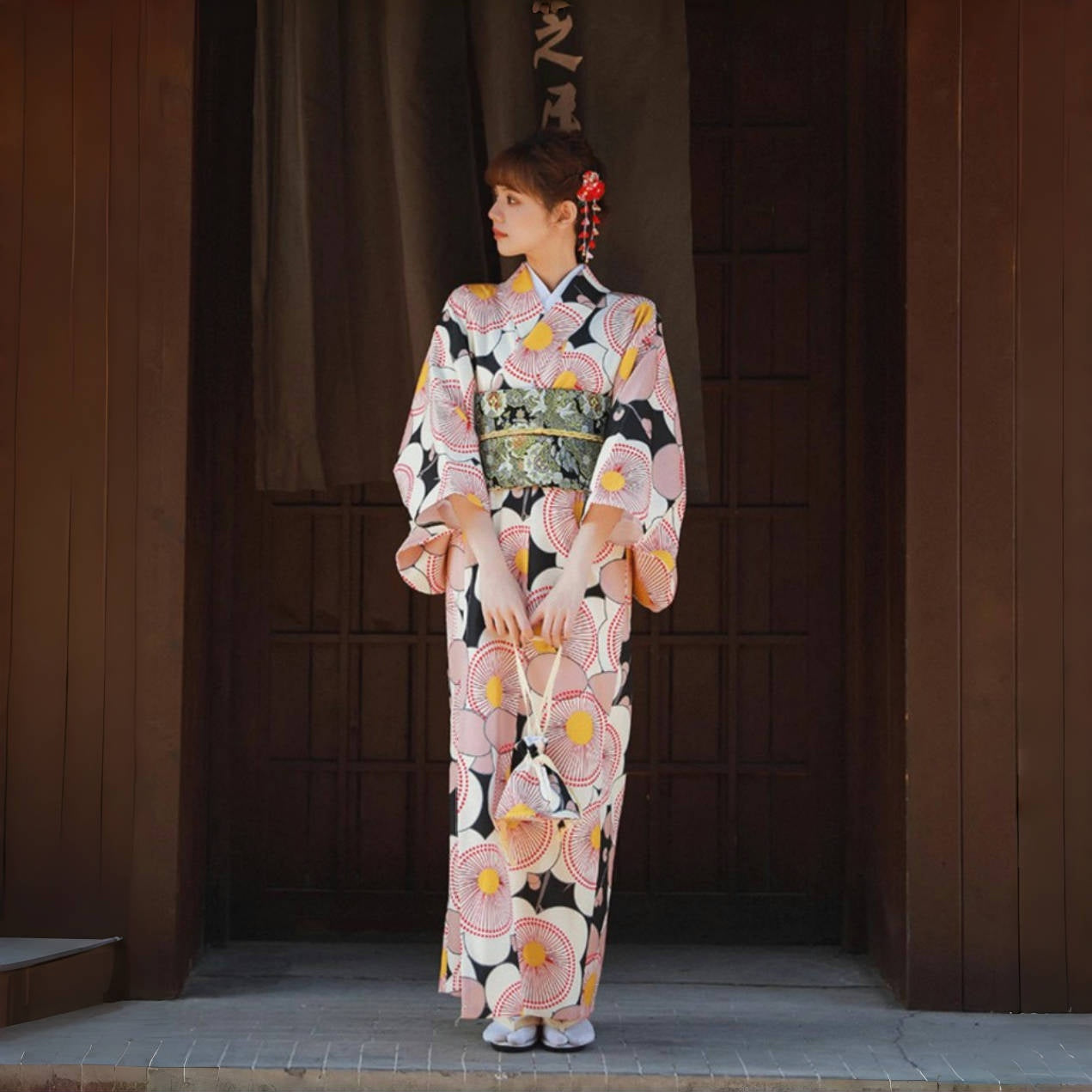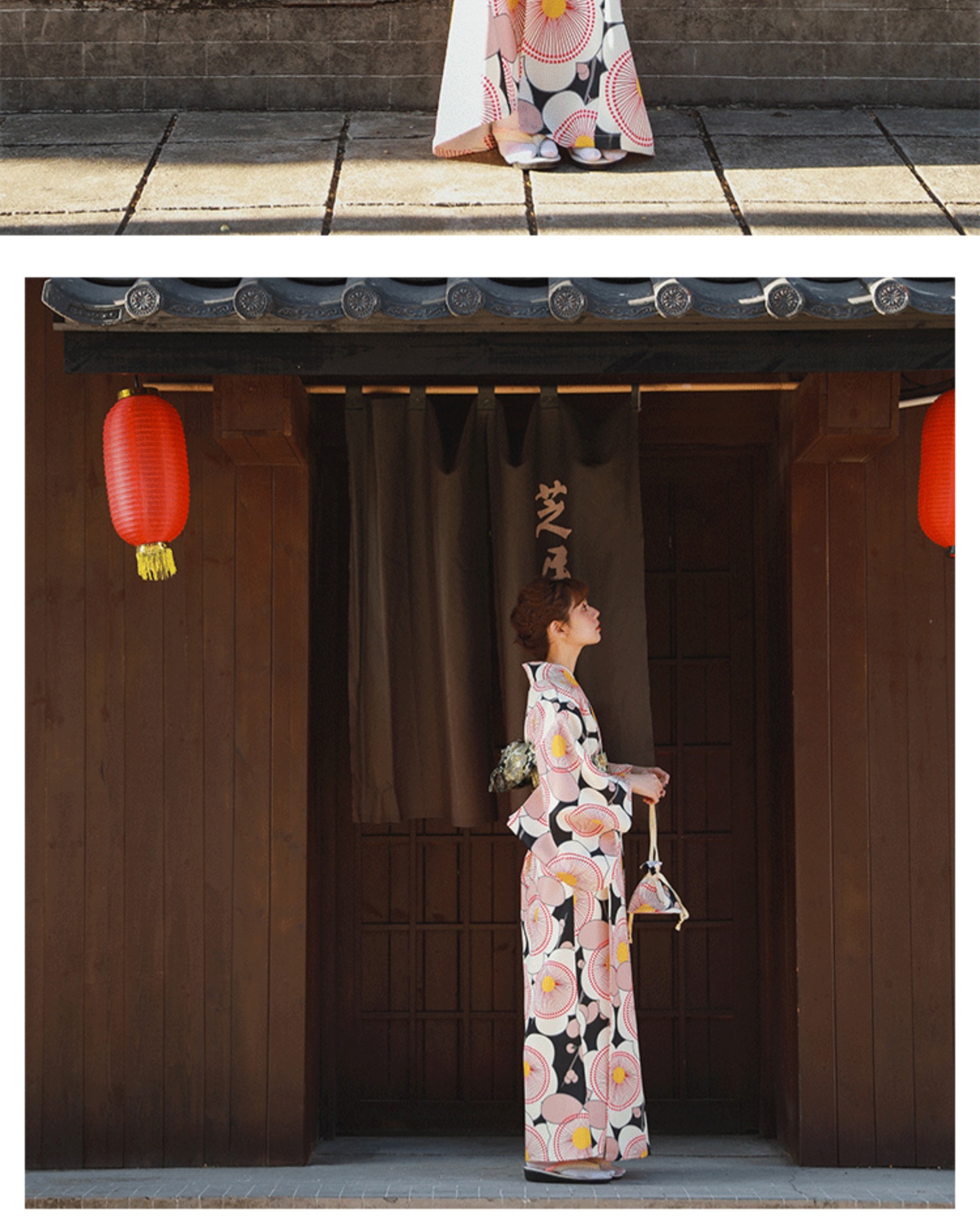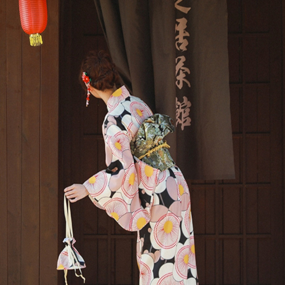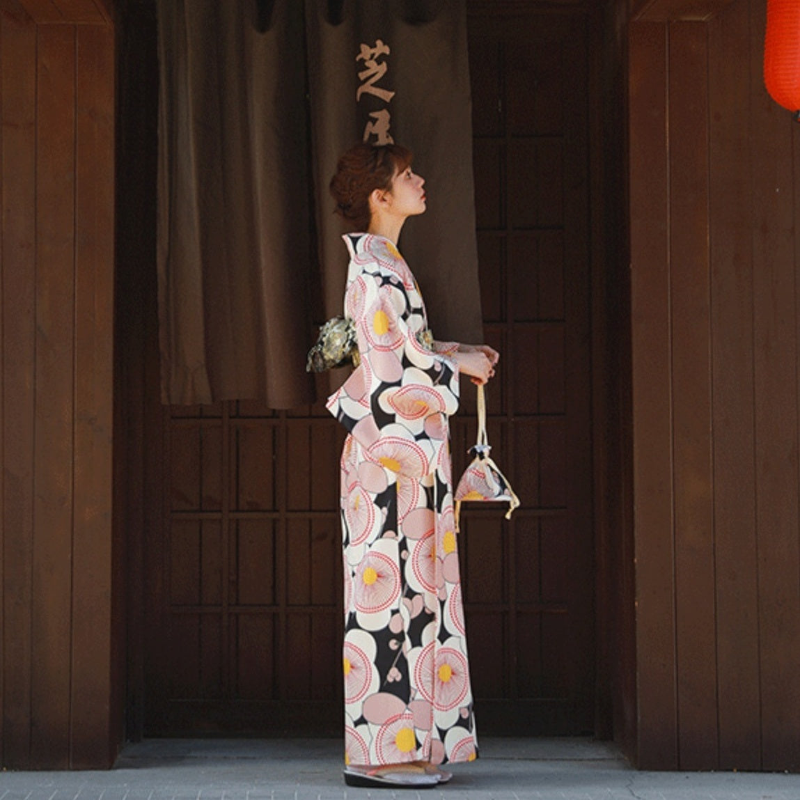 【商品名】【ワンピース】夏 花火大会 黒×ピンク ガーリー系 浴衣 【SHシリーズ】