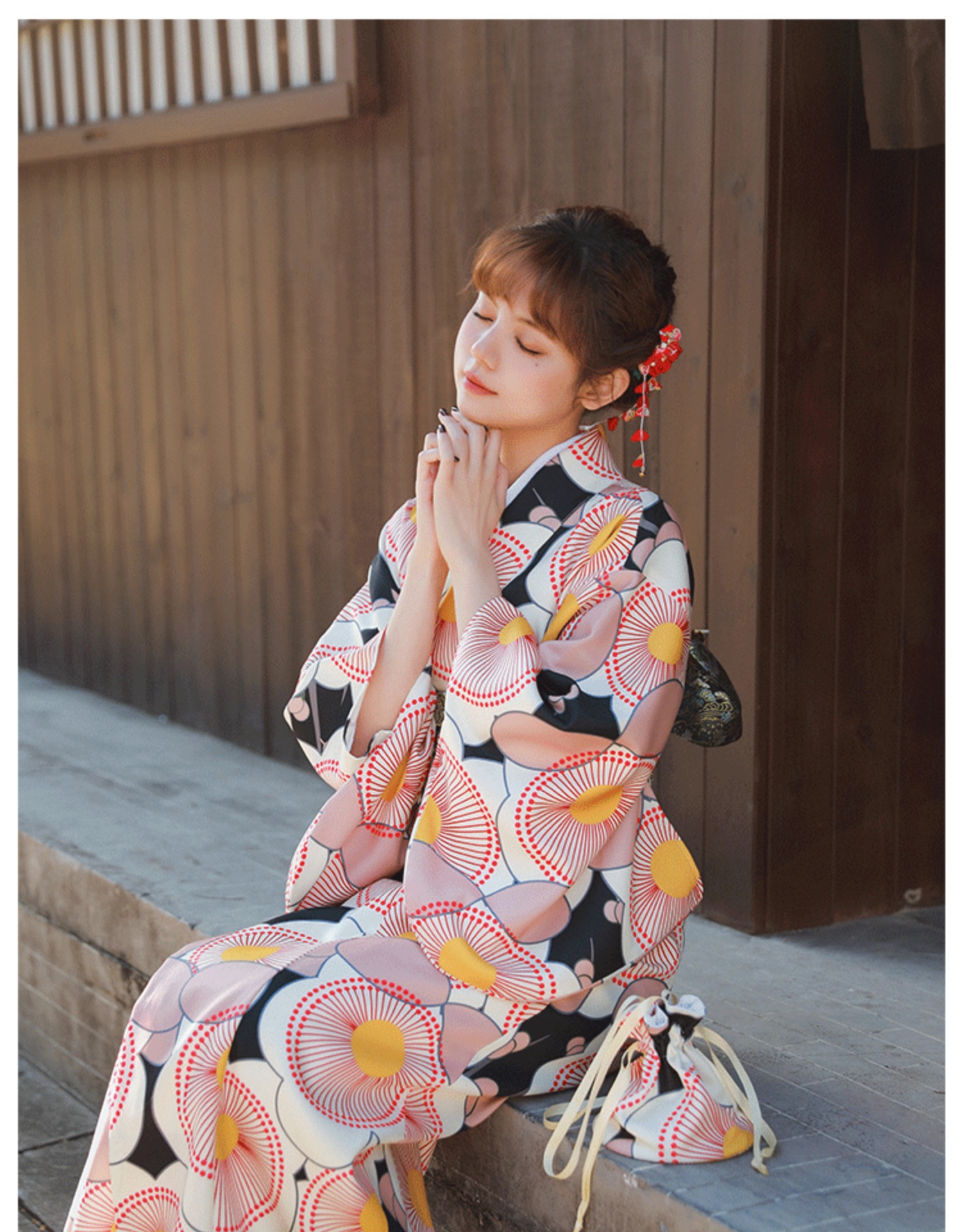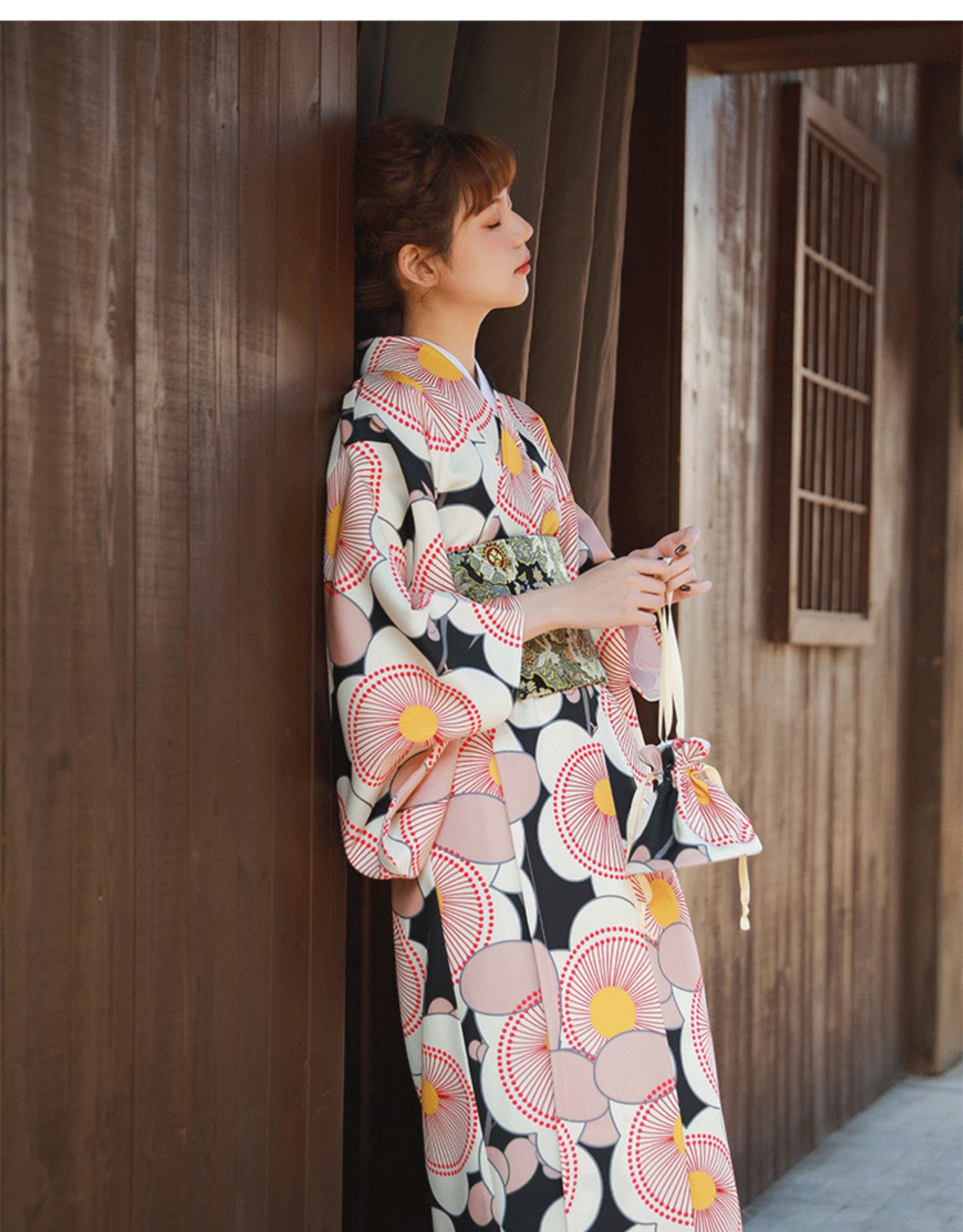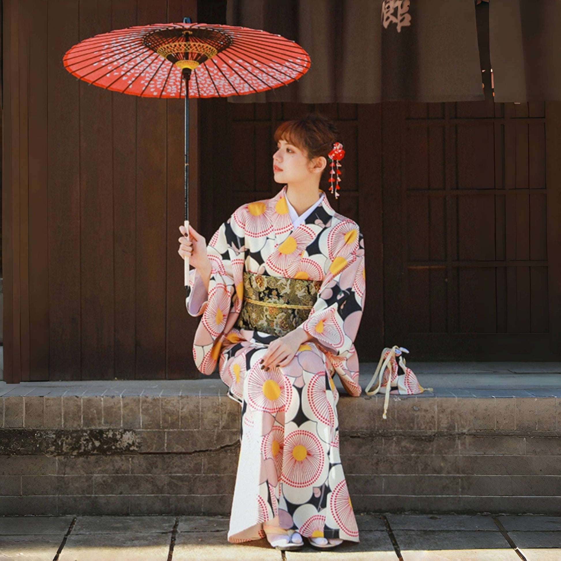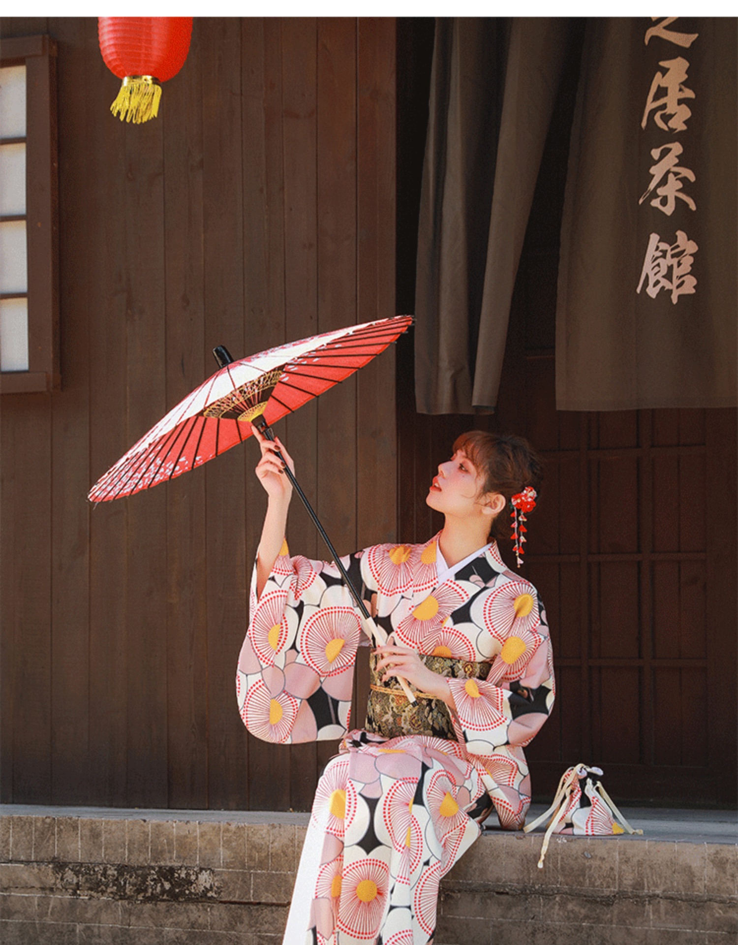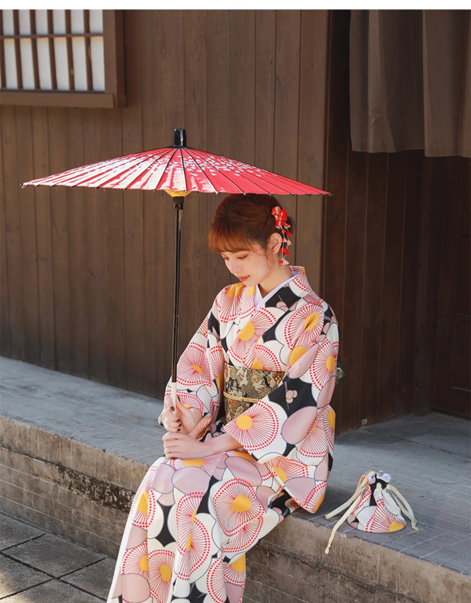 【商品名】【ワンピース】夏 花火大会 黒×ピンク ガーリー系 浴衣 【SHシリーズ】