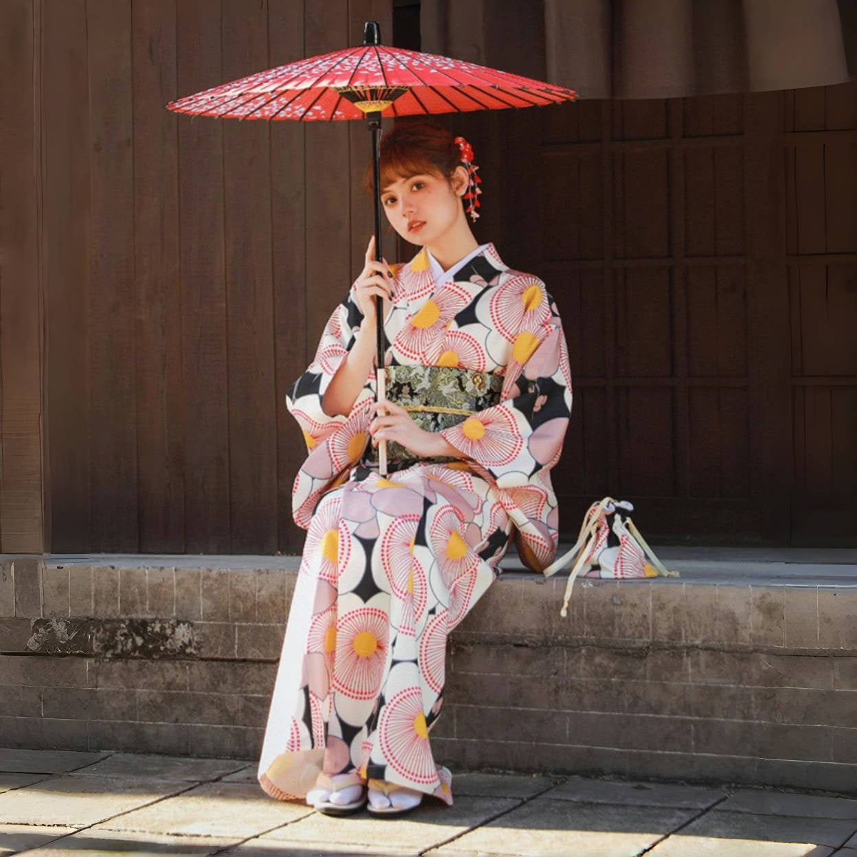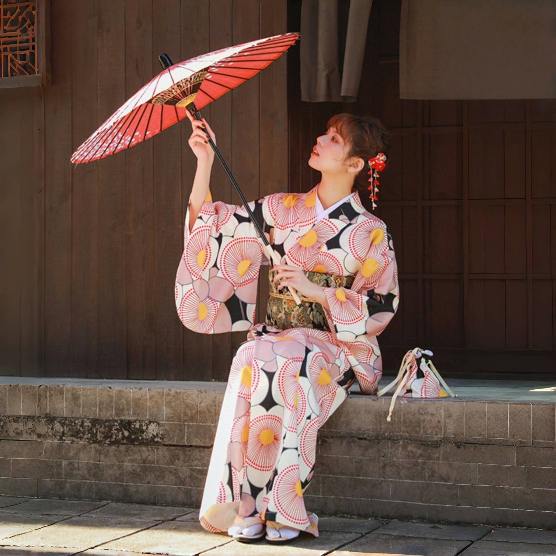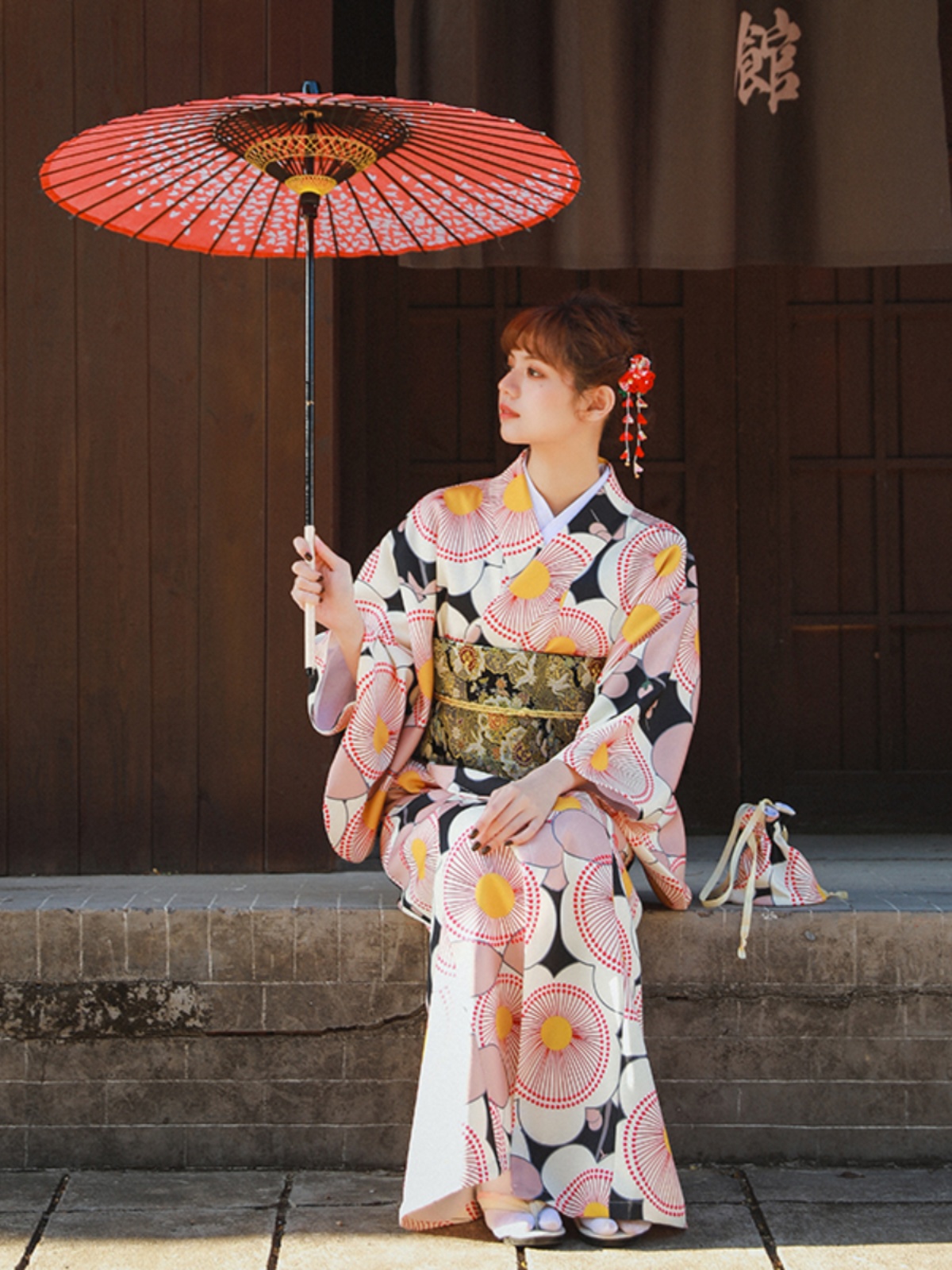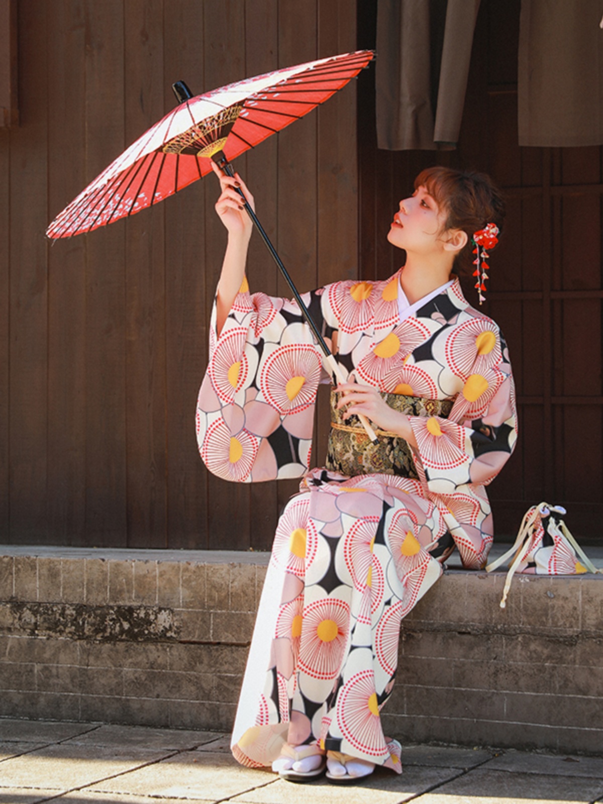【商品名】【ワンピース】夏 花火大会 黒×ピンク ガーリー系 浴衣 【SHシリーズ】