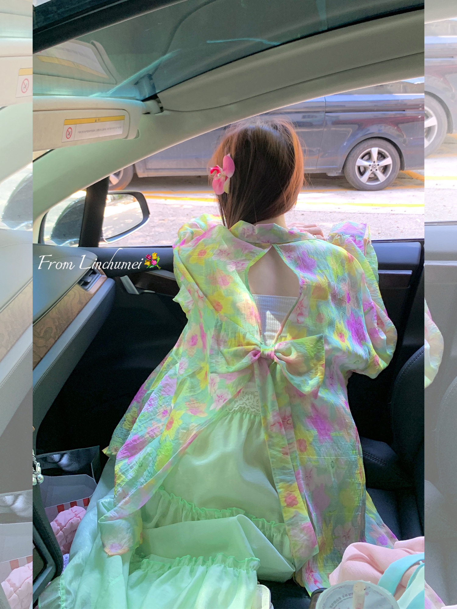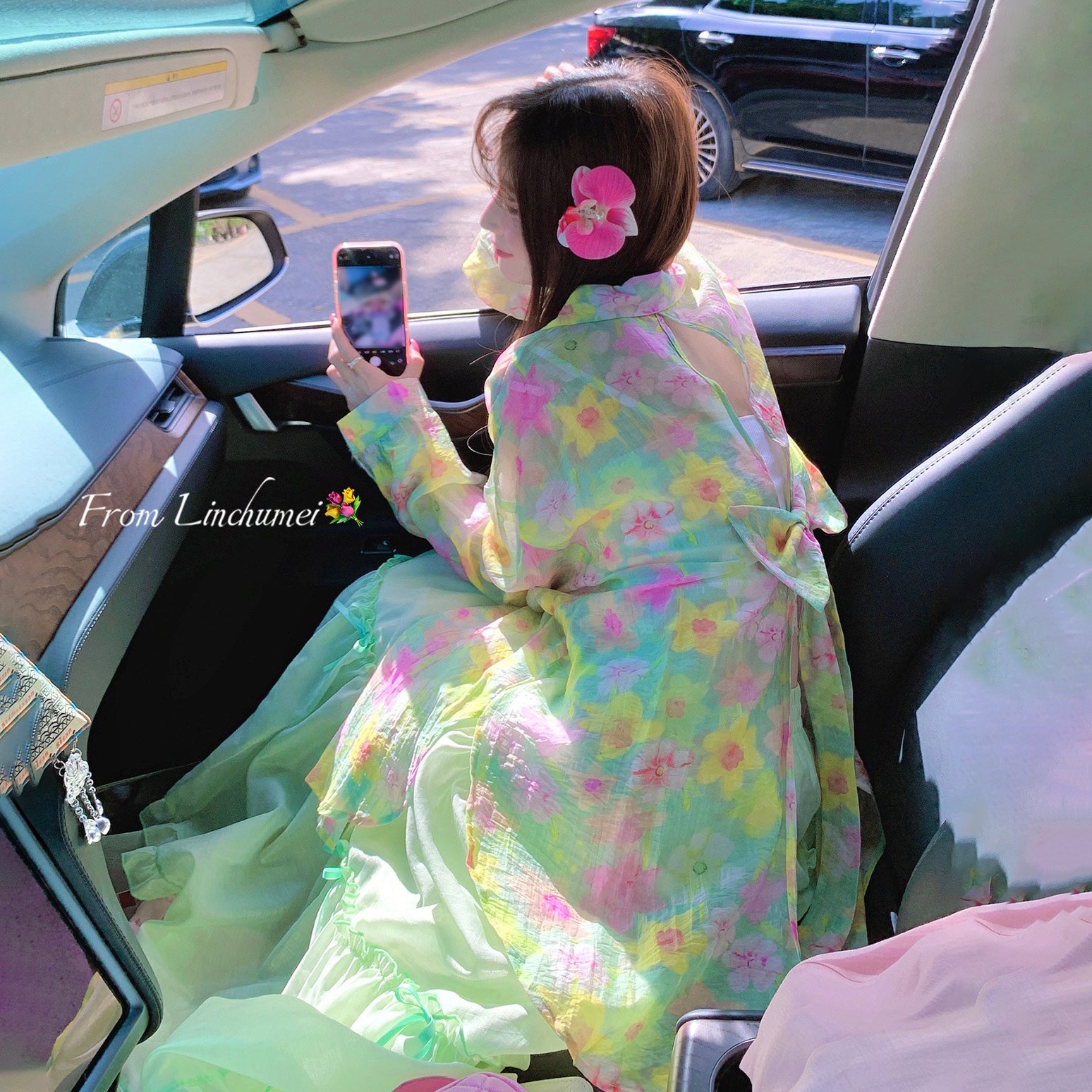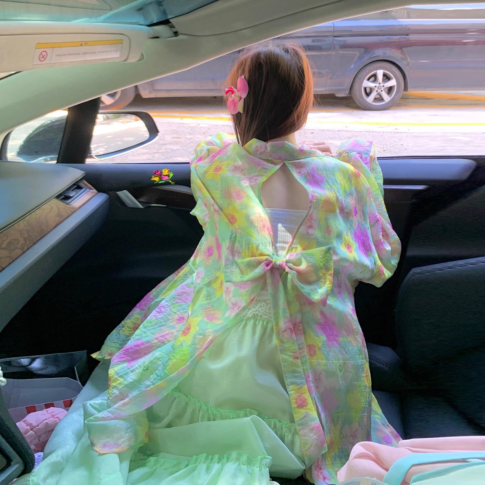 【アウター】夏 スイートリゾート風 スリット入りリボン 花柄 テンセル防晒シャツ【SHシリーズ】