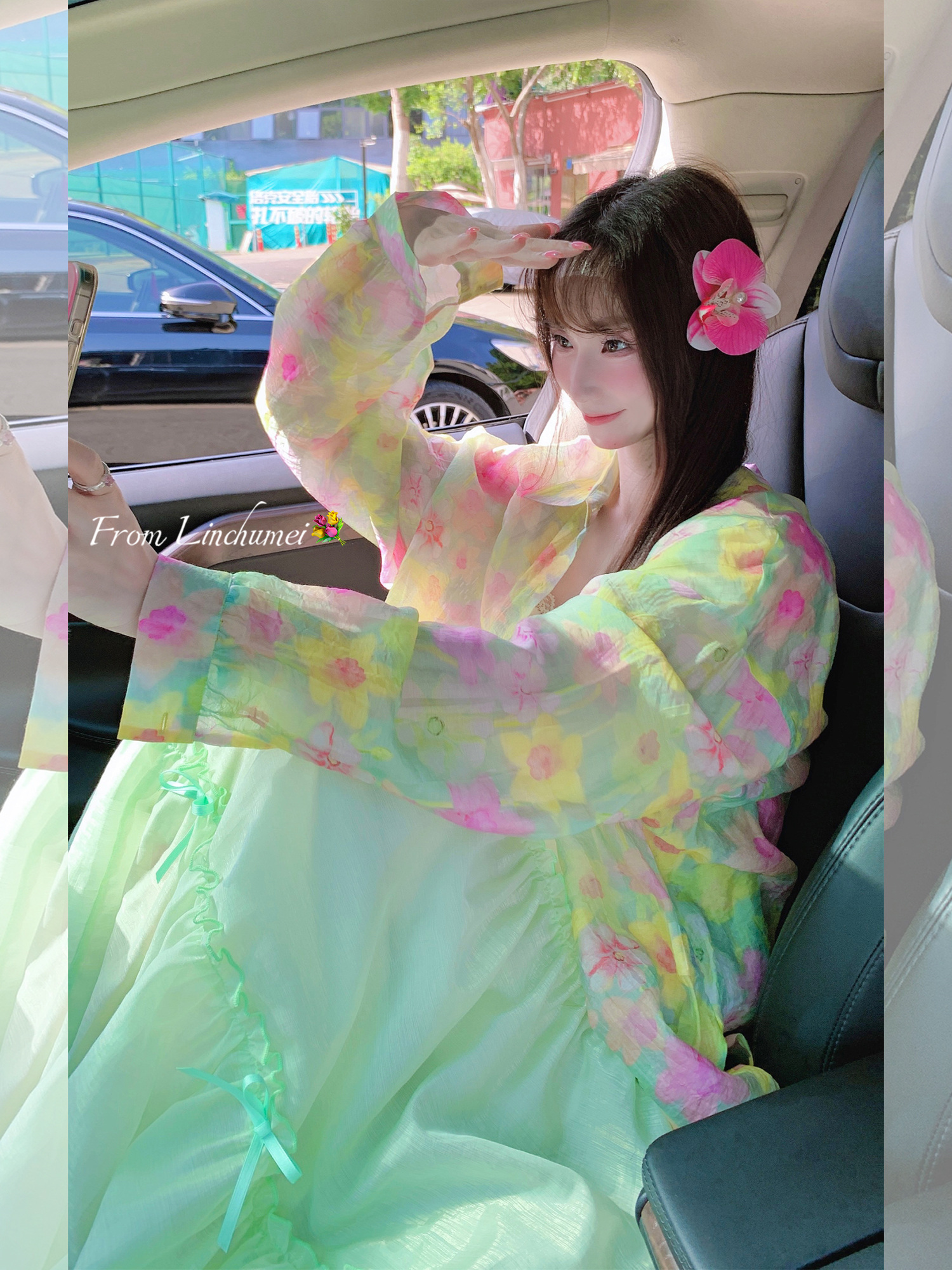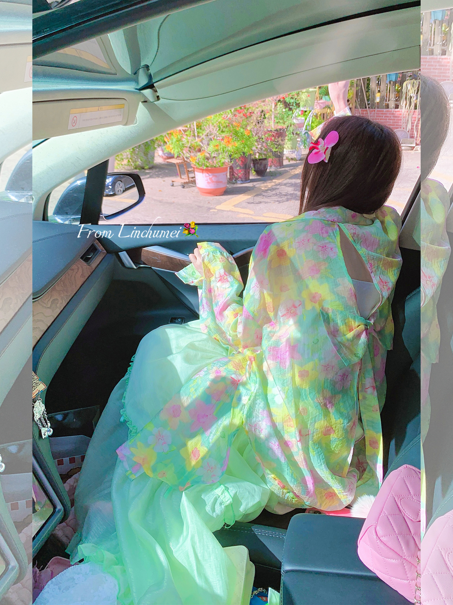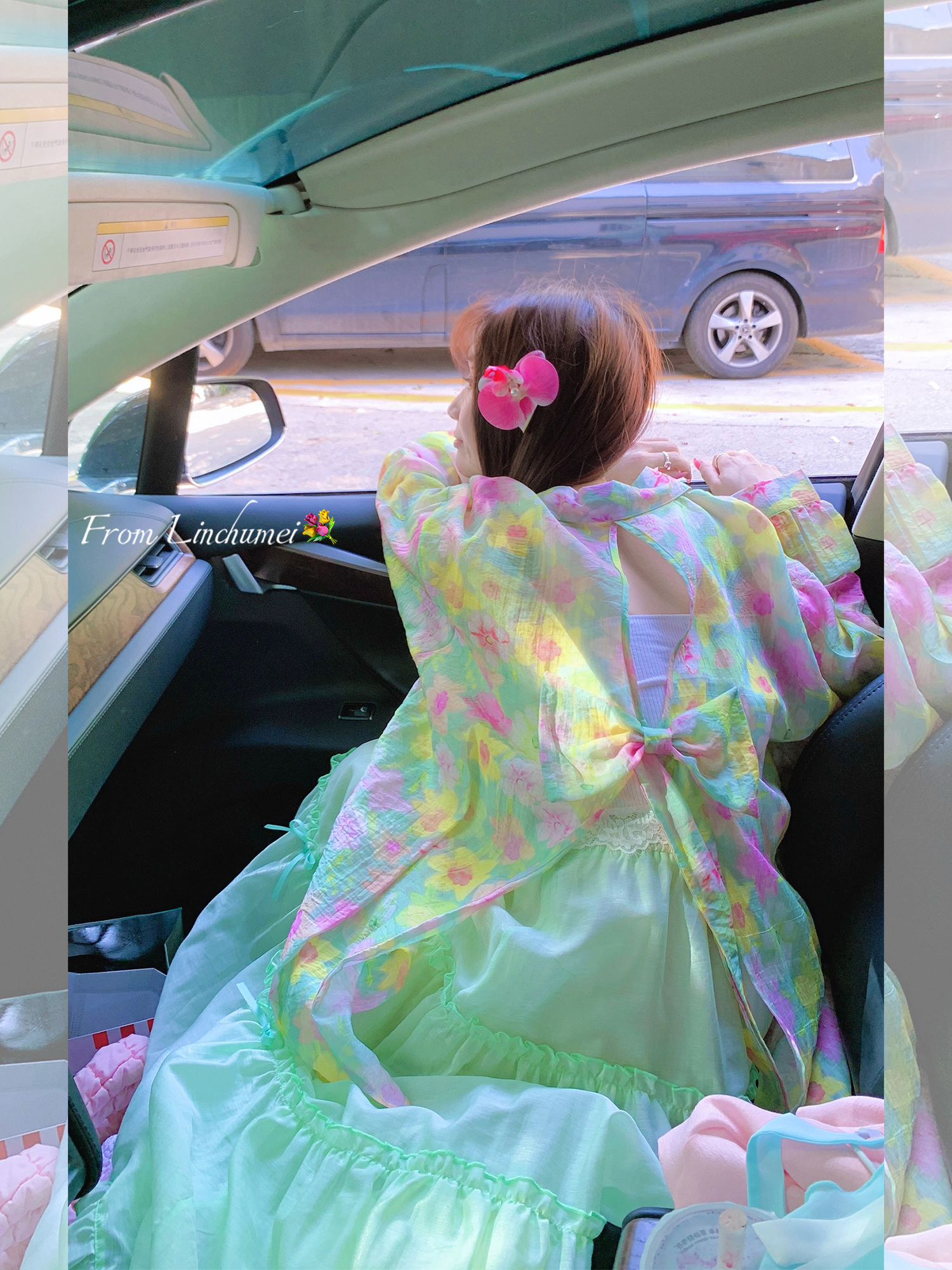 【アウター】夏 スイートリゾート風 スリット入りリボン 花柄 テンセル防晒シャツ【SHシリーズ】
