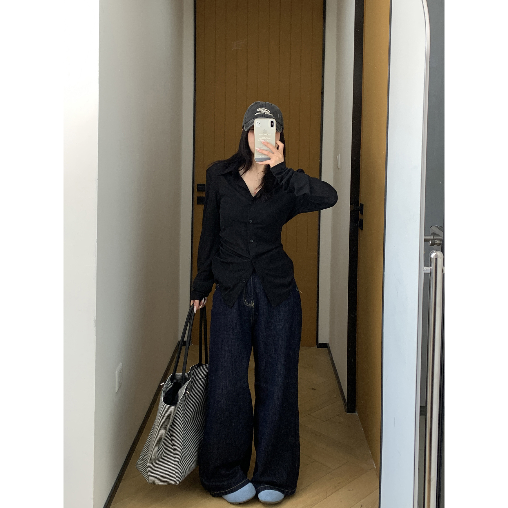 【ワンピース】細見え 日系 Vネック 無地 長袖ワンピース 切替デザイン ゆったり 気質ロング【JZシリーズ】【AHシリーズ】