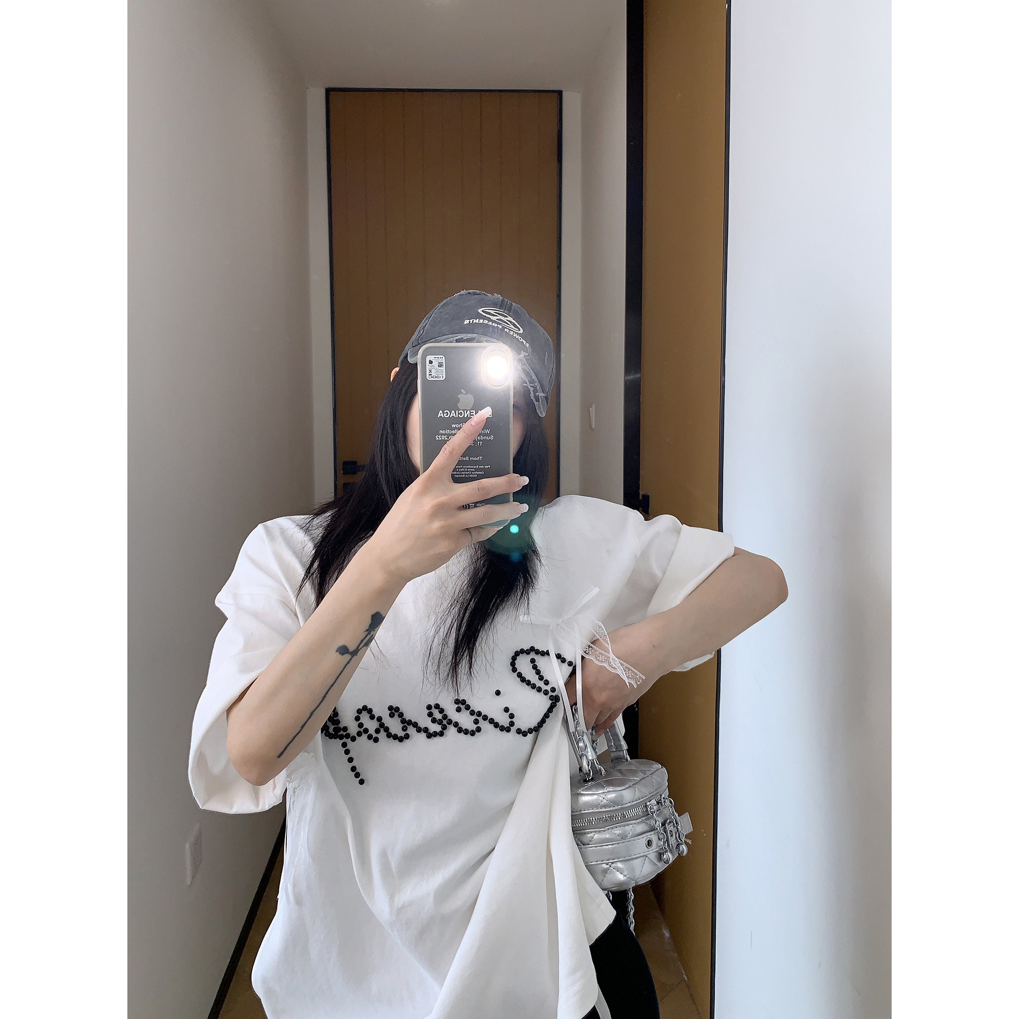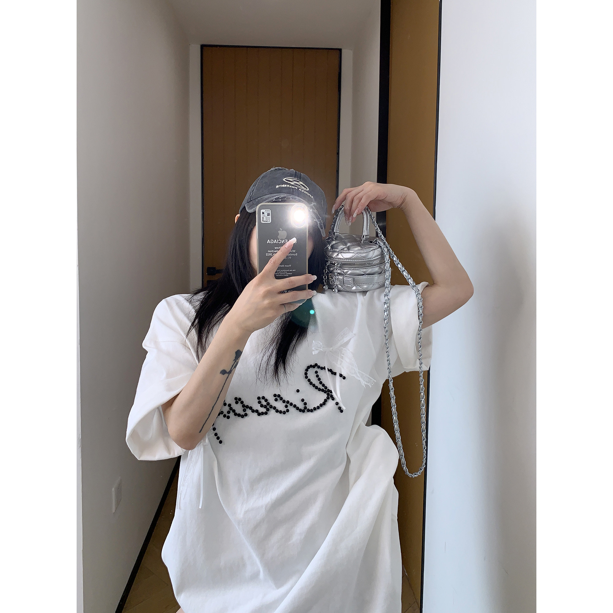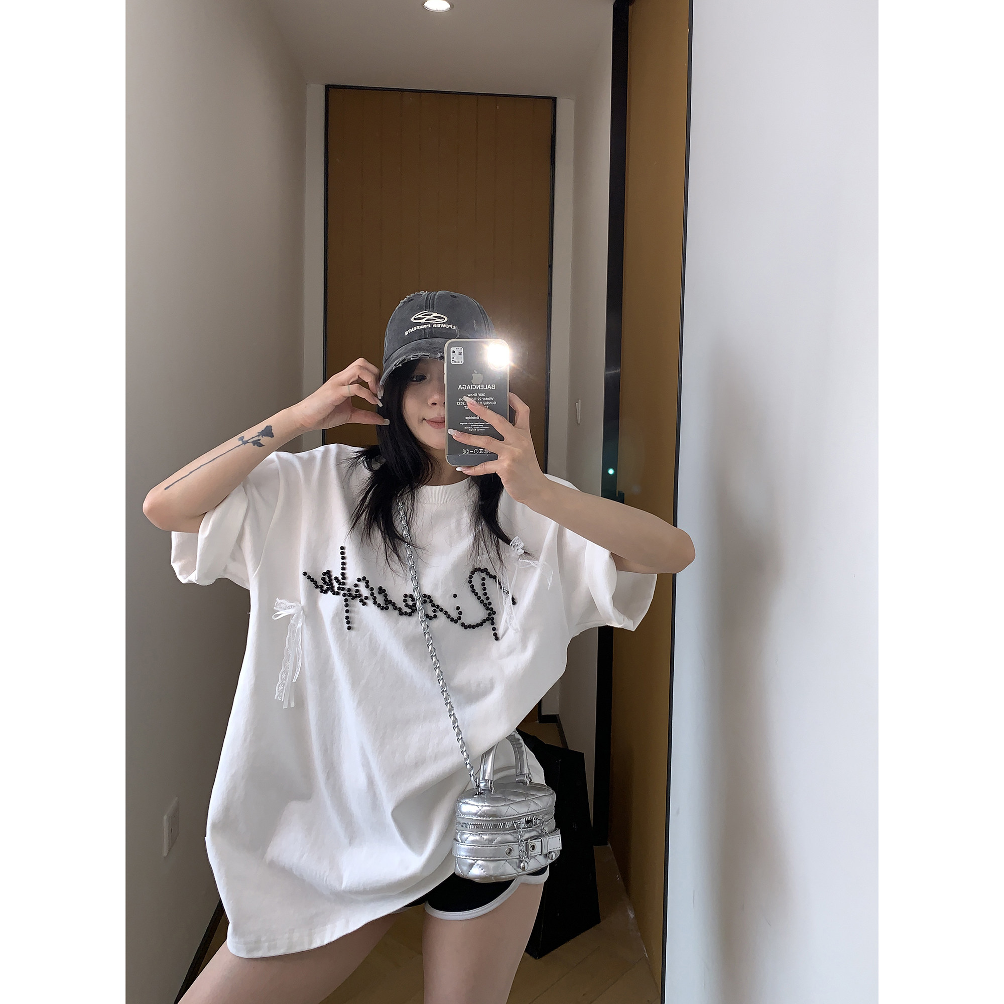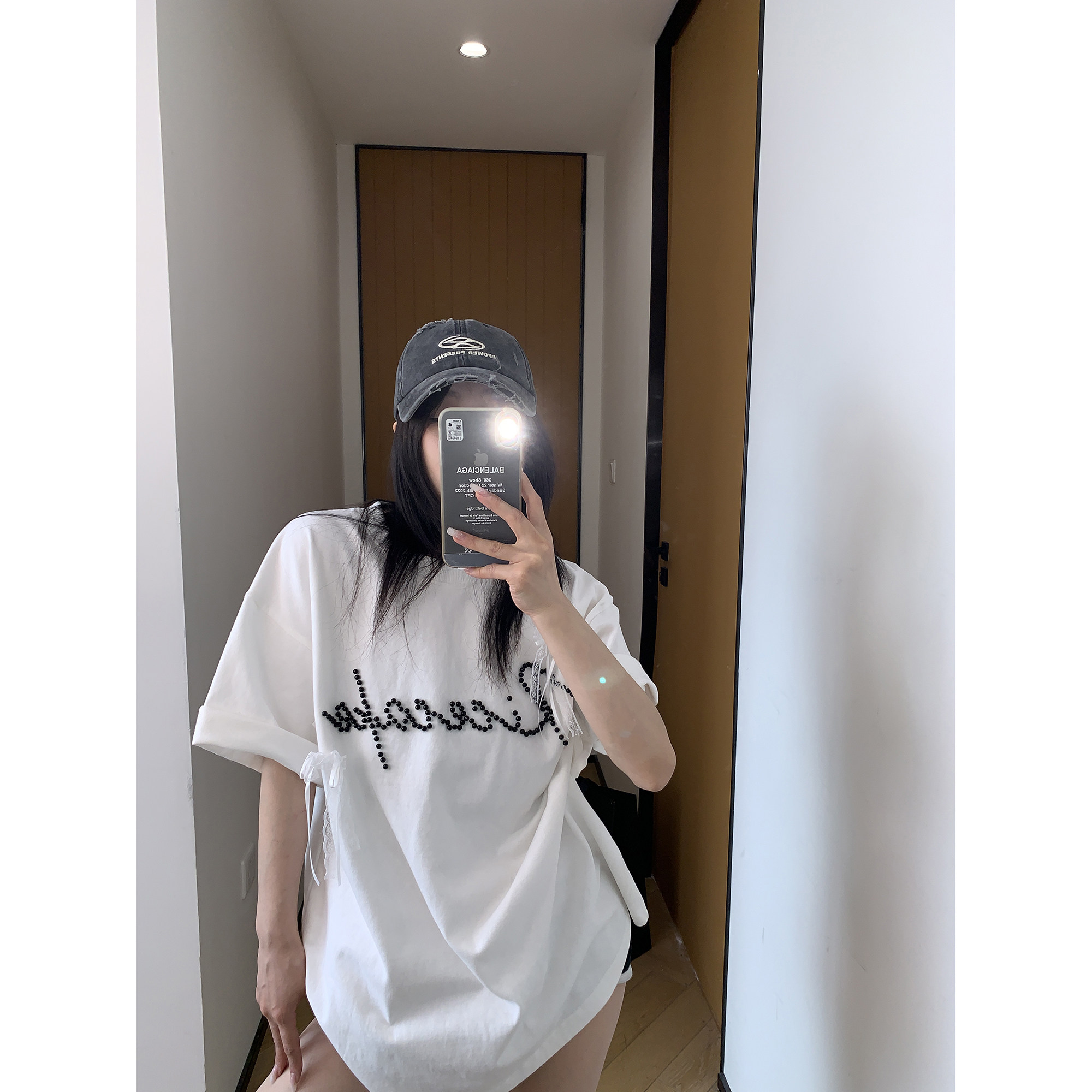 【トップス】夏 リボン ビジュー レース ルーズ 半袖 Tシャツ 【FCシリーズ】