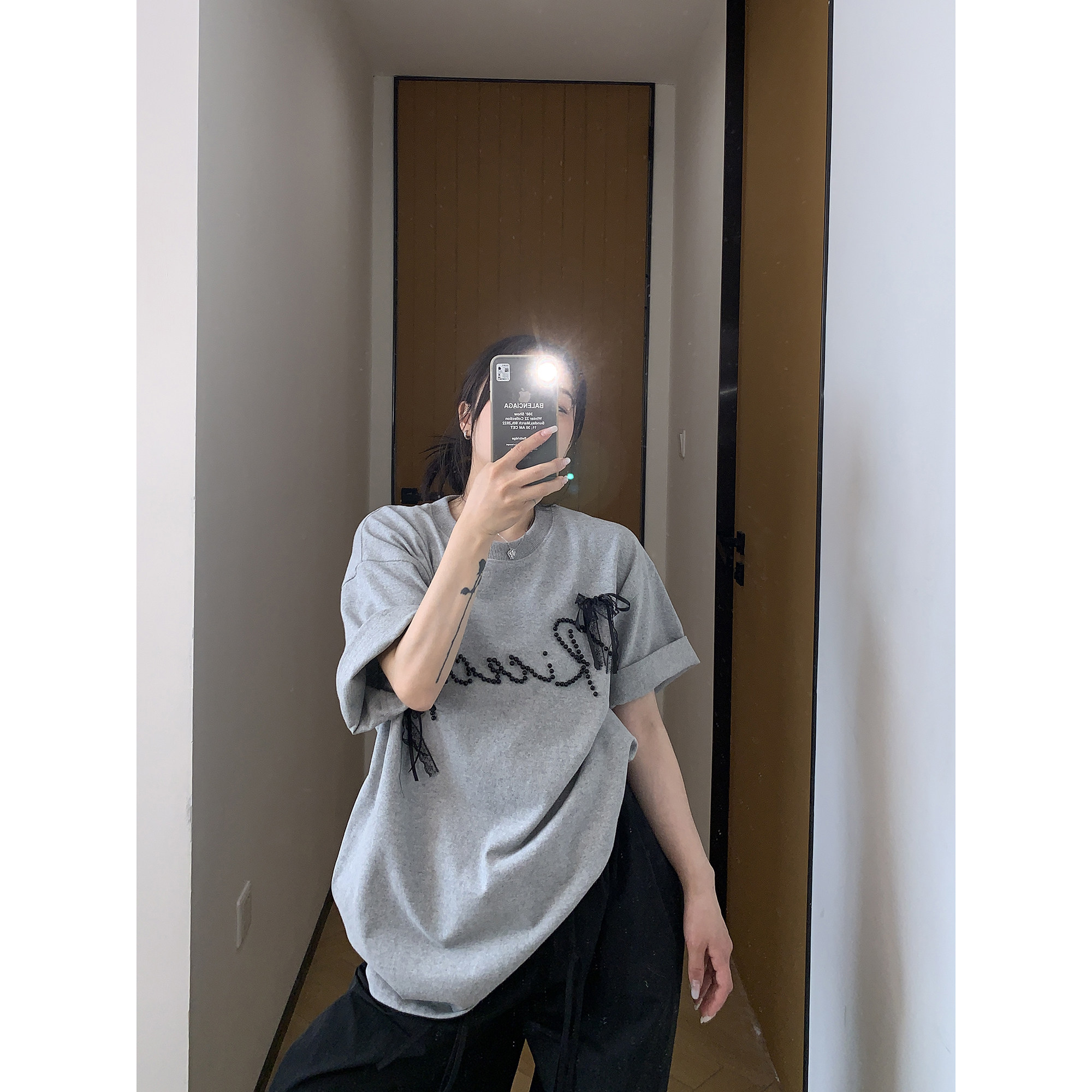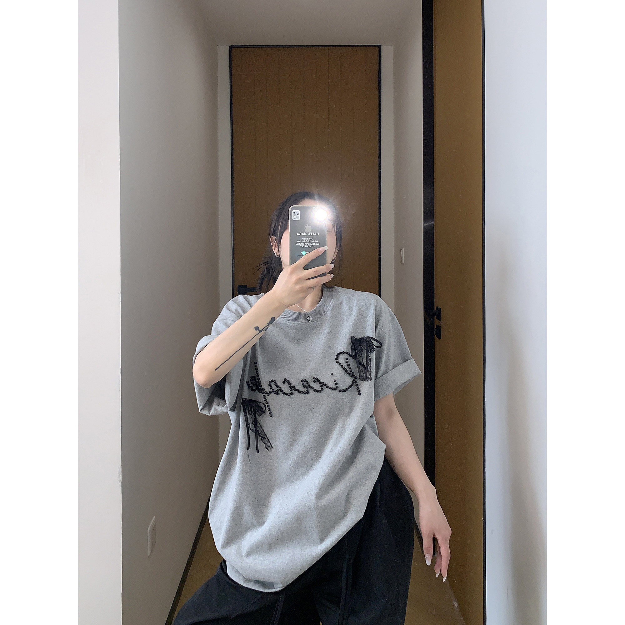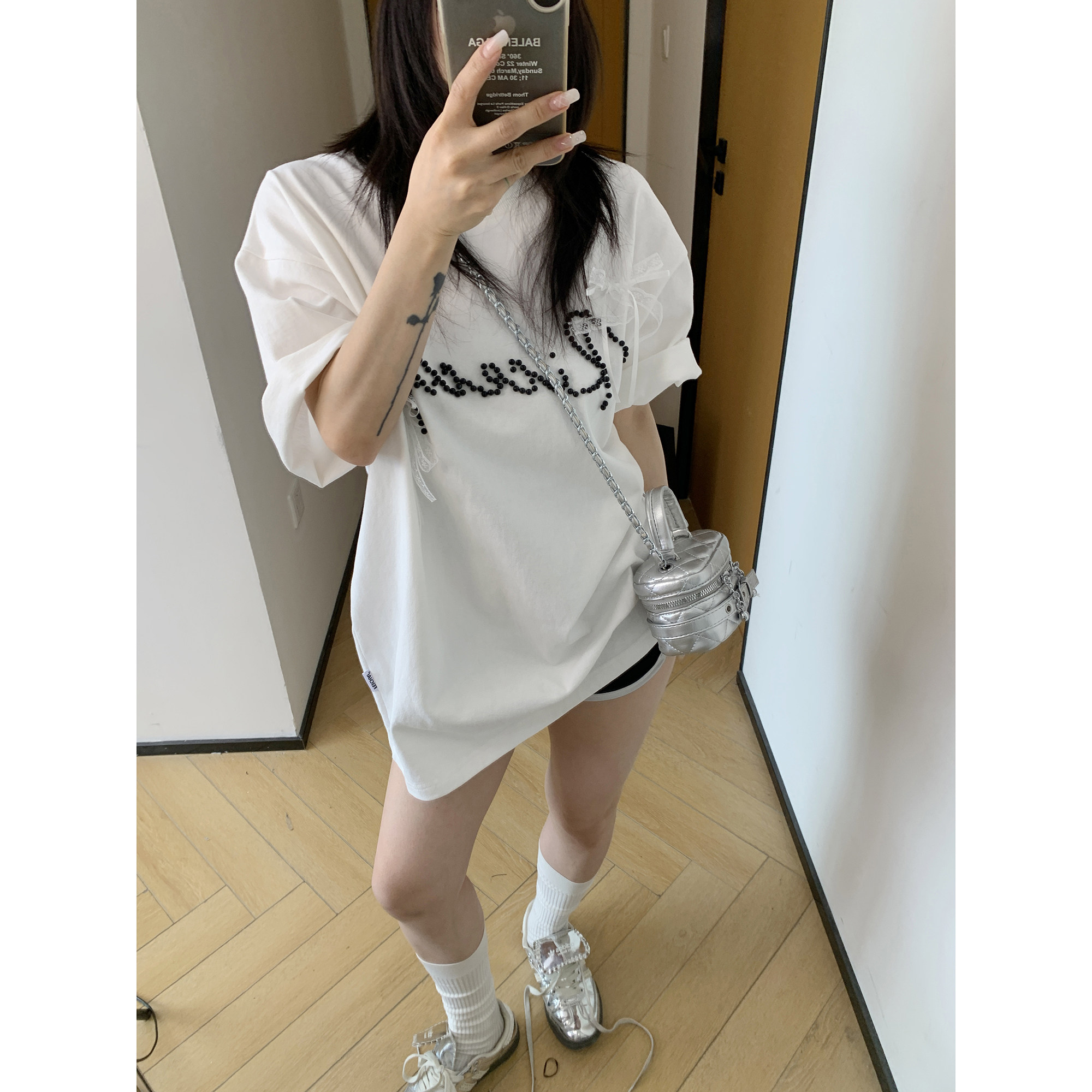 【商品名】【トップス】夏 リボン ビジュー レース ルーズ 半袖 Tシャツ 【FCシリーズ】