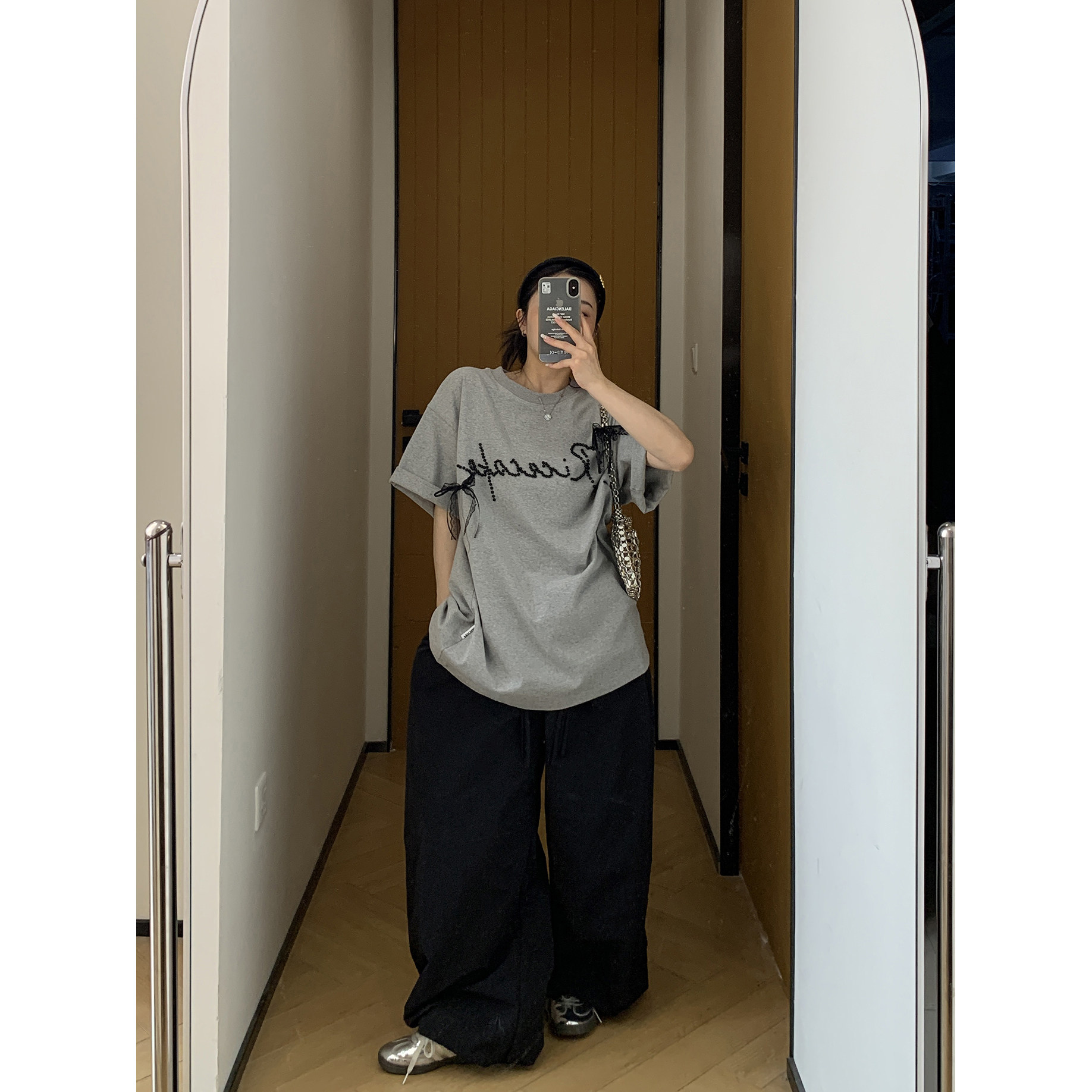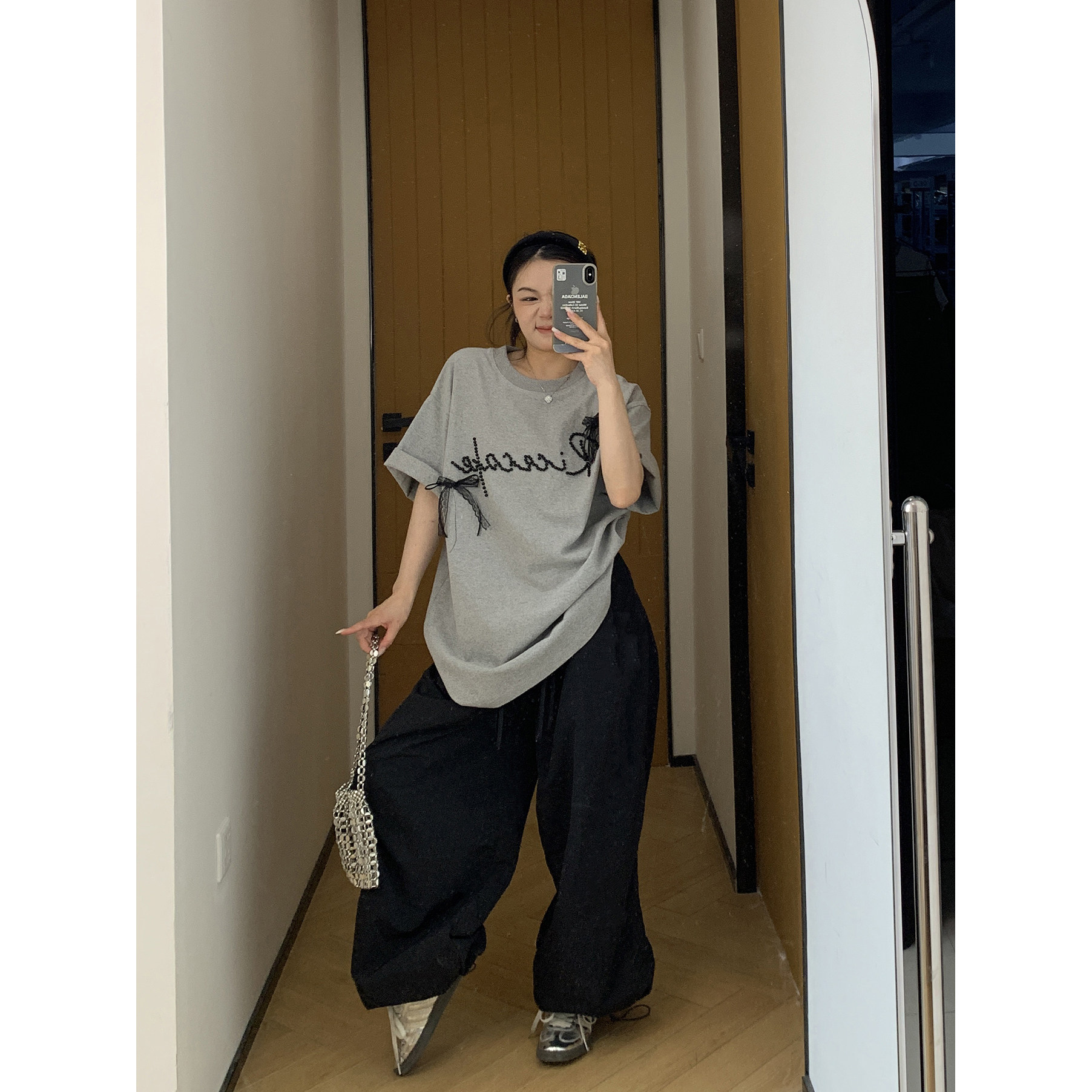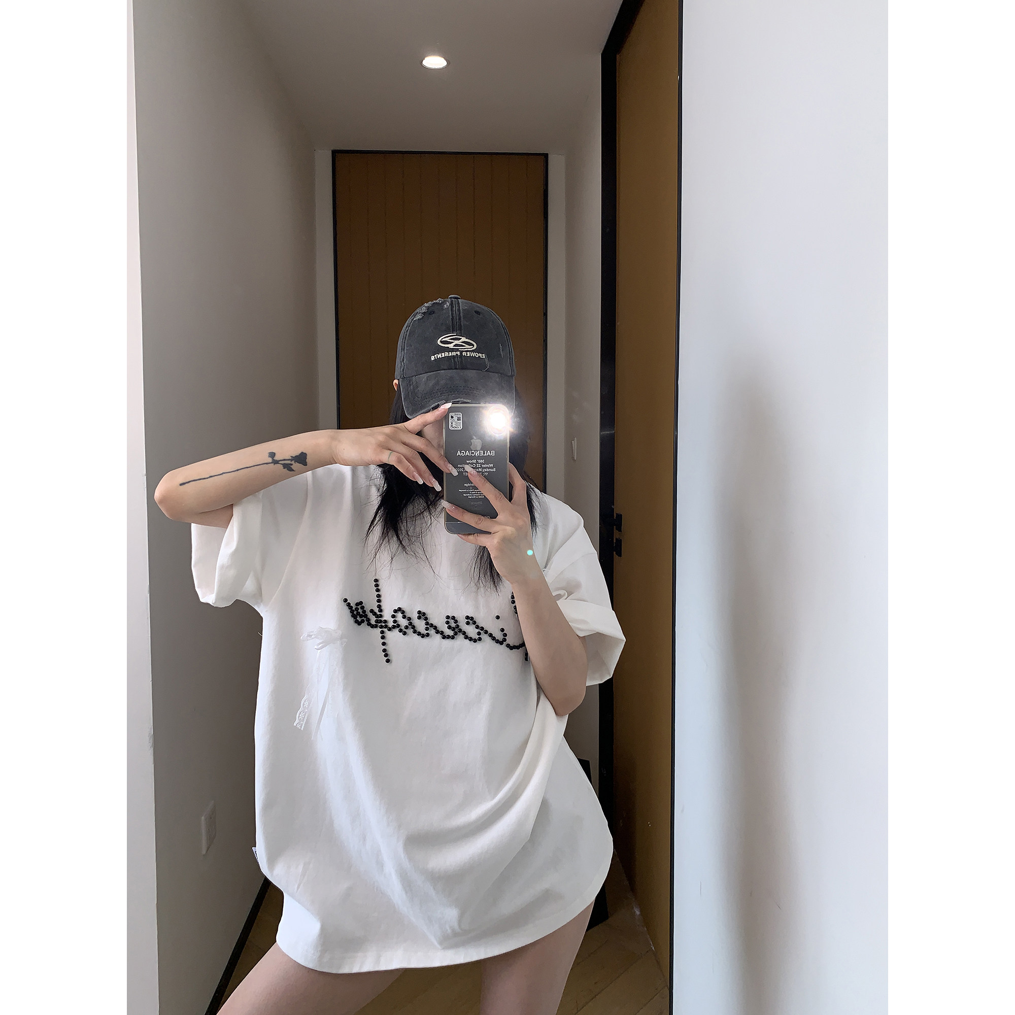 【商品名】【トップス】夏 リボン ビジュー レース ルーズ 半袖 Tシャツ 【FCシリーズ】