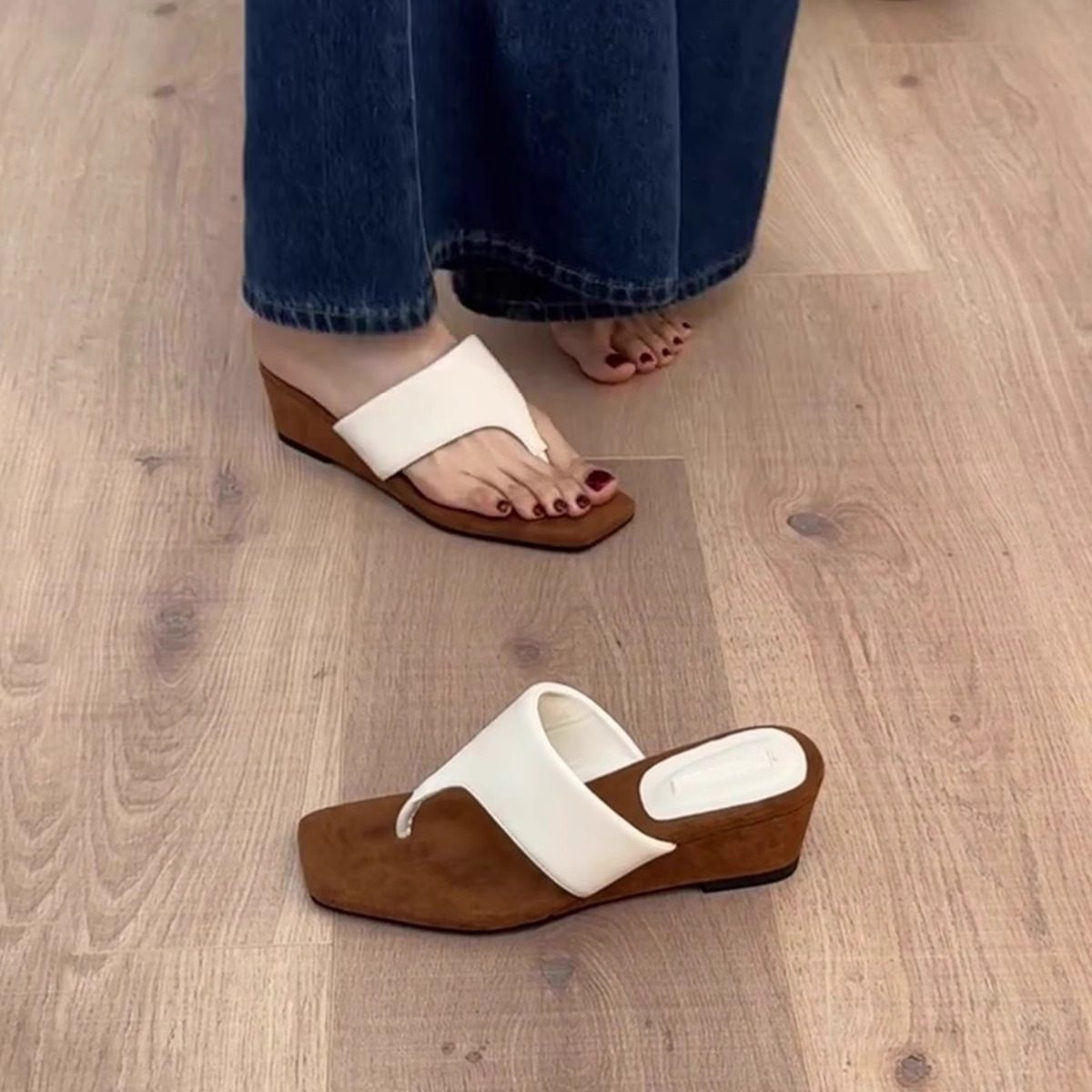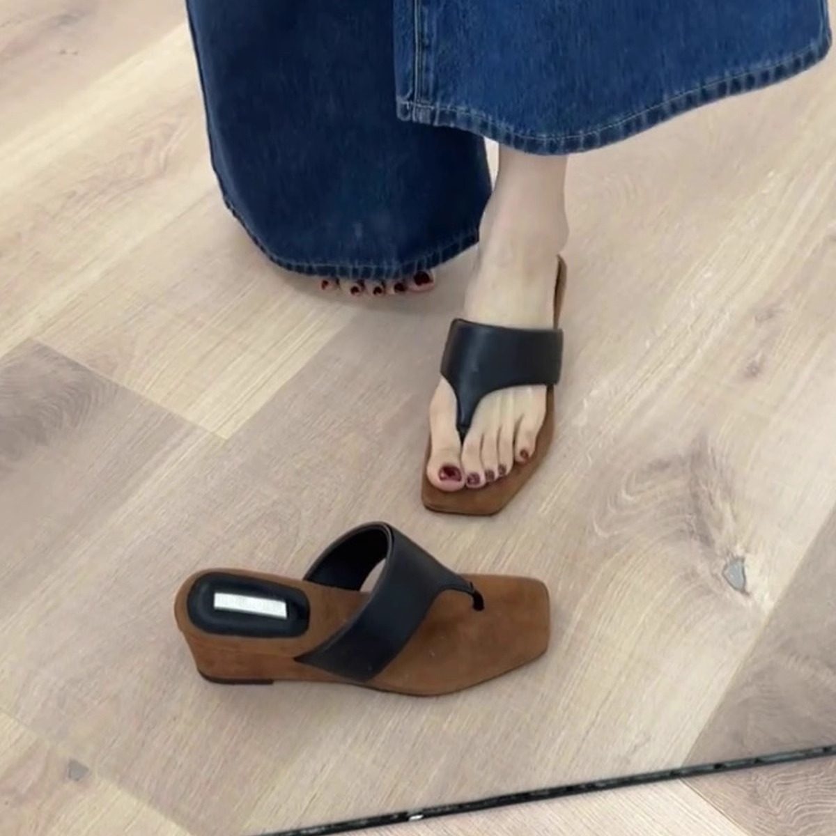 【シューズ】厚底スクエアトゥ トングサンダル ヴィンテージミニマル ウェッジソール ビーチサンダル