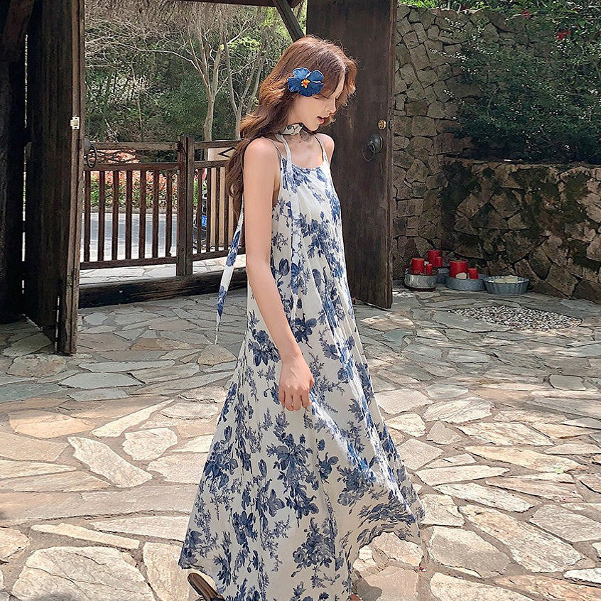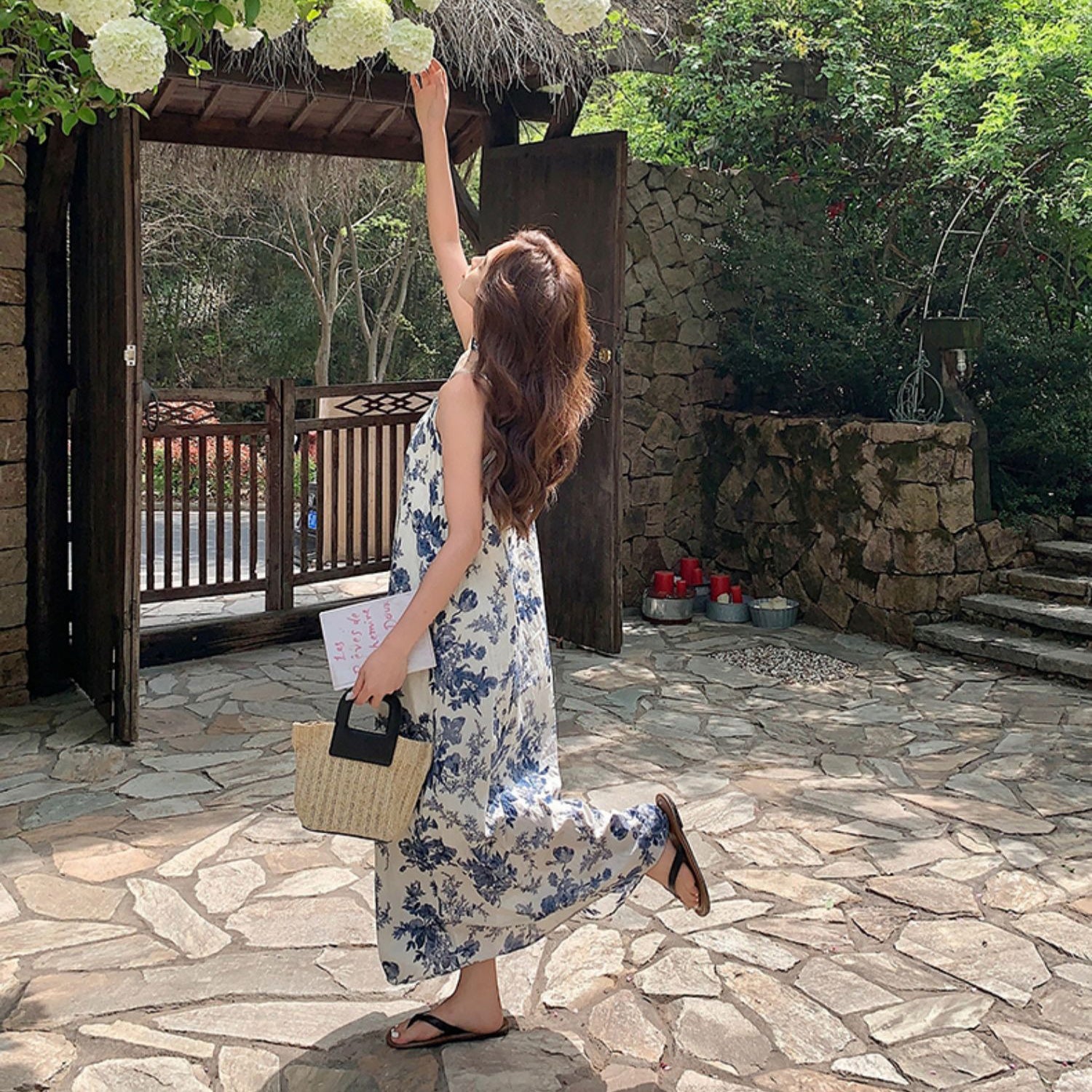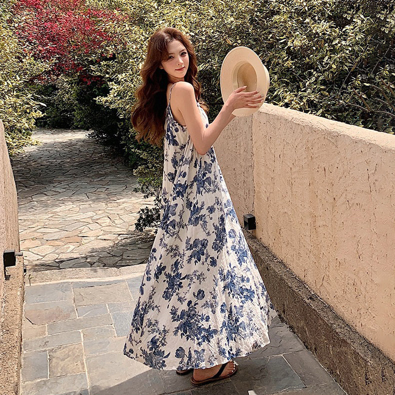 【ワンピース】プリント ビーチリゾート ロマンティック ノースリーブワンピース レディース【SHシリーズ】