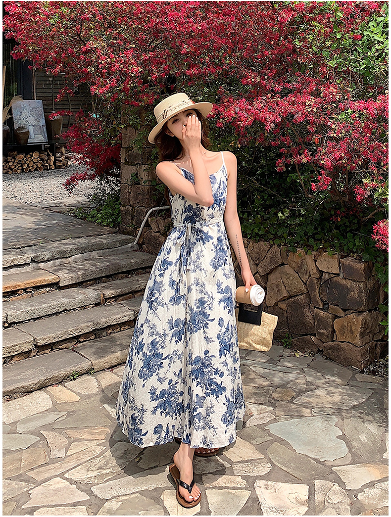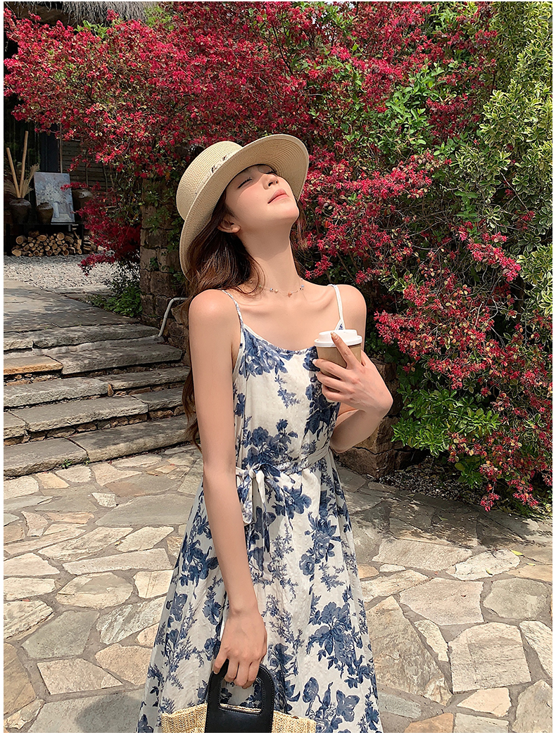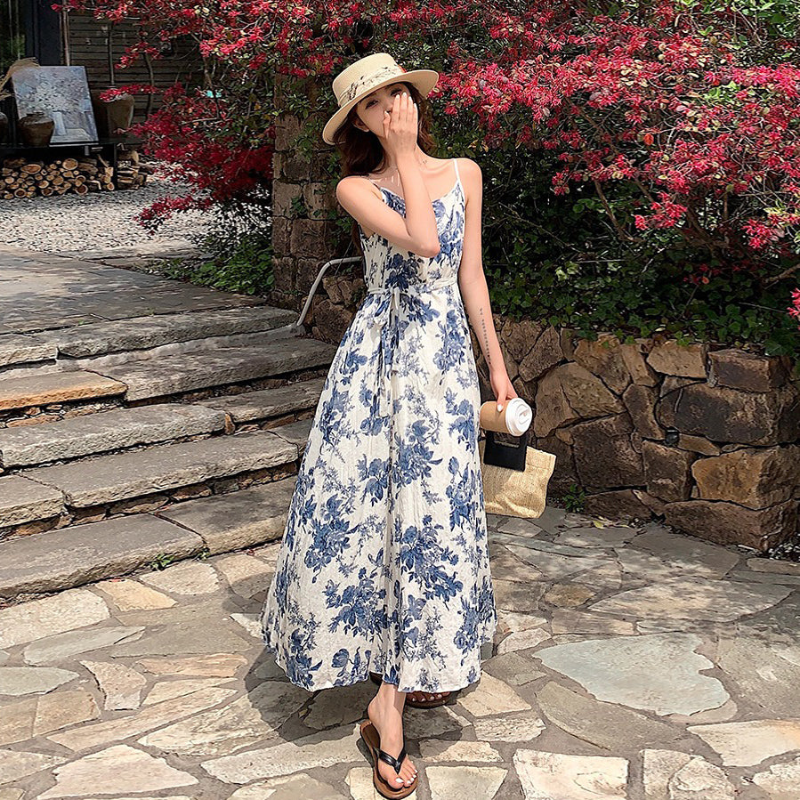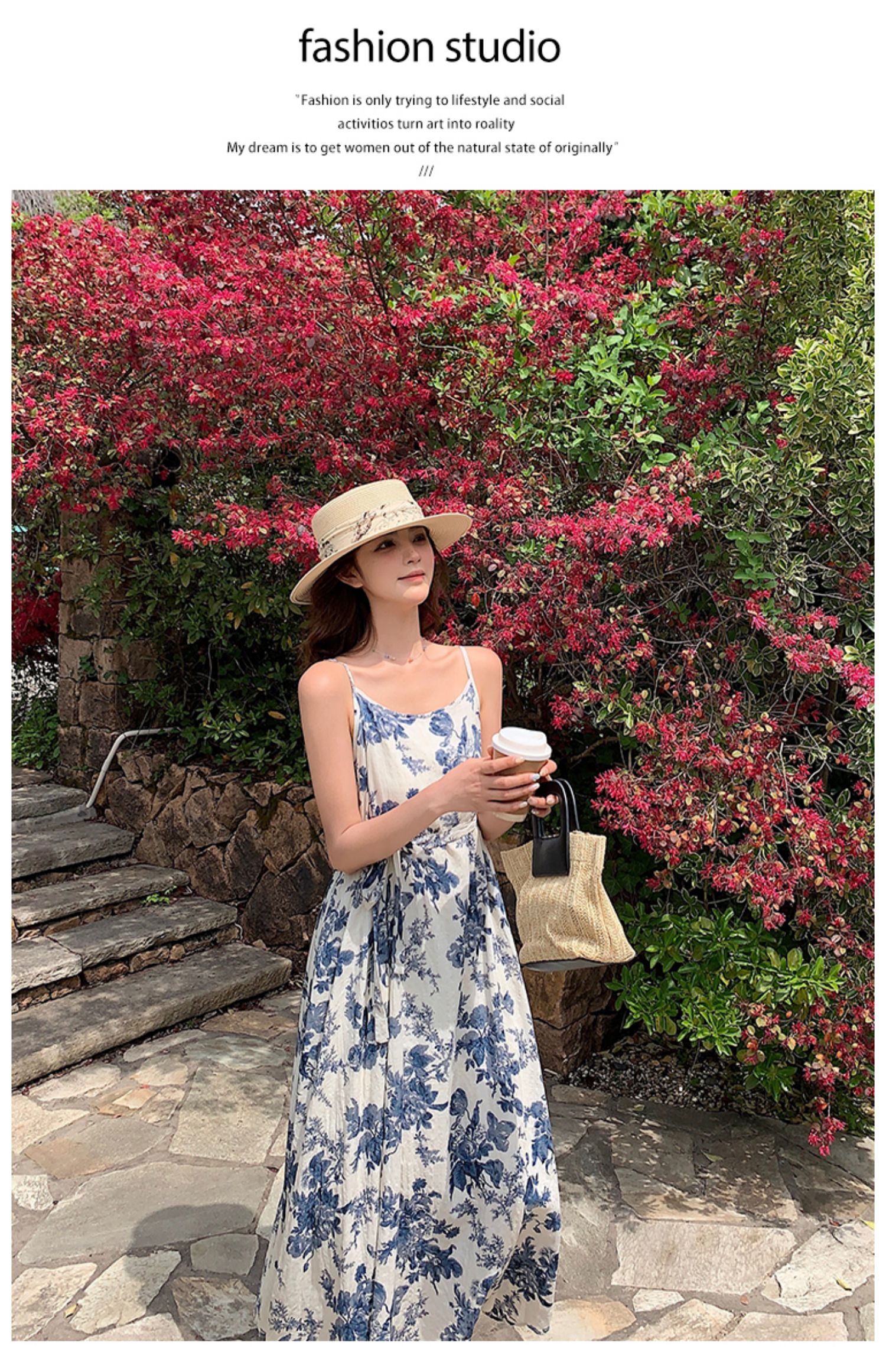 【ワンピース】プリント ビーチリゾート ロマンティック ノースリーブワンピース レディース【SHシリーズ】