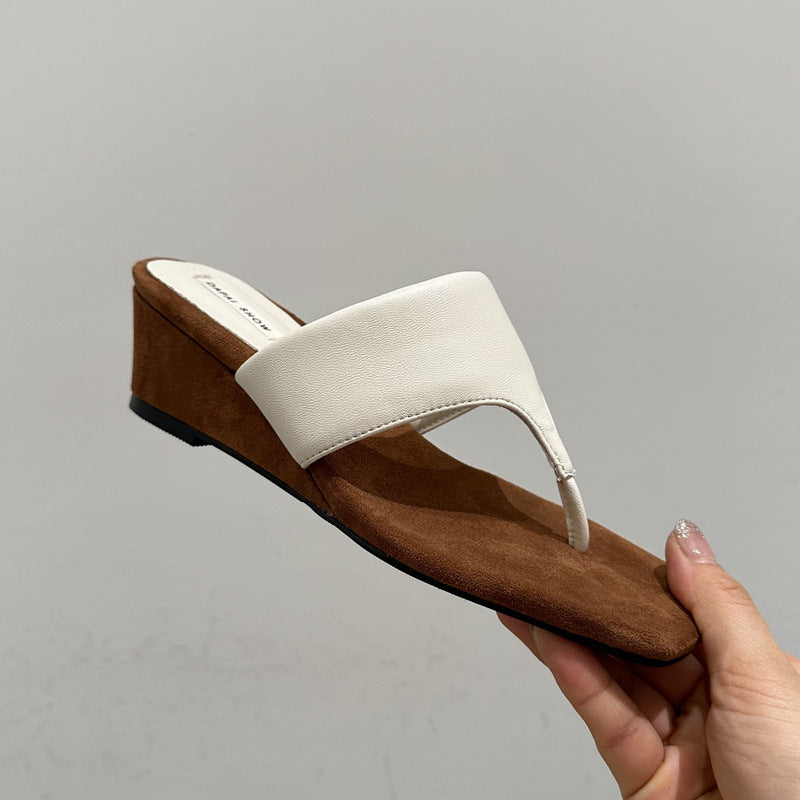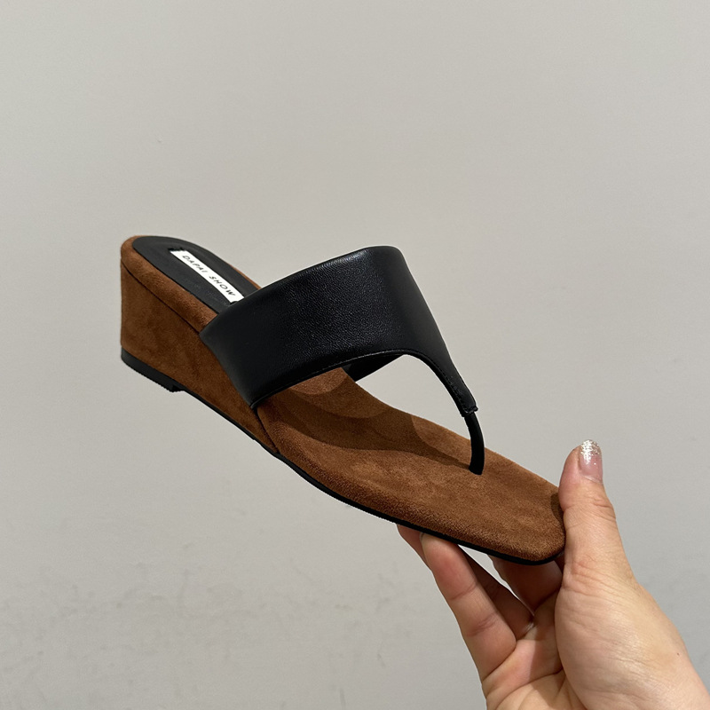 【商品名】【シューズ】フレンチ厚底トングサンダル 夏スカート対応 ウェッジヒール