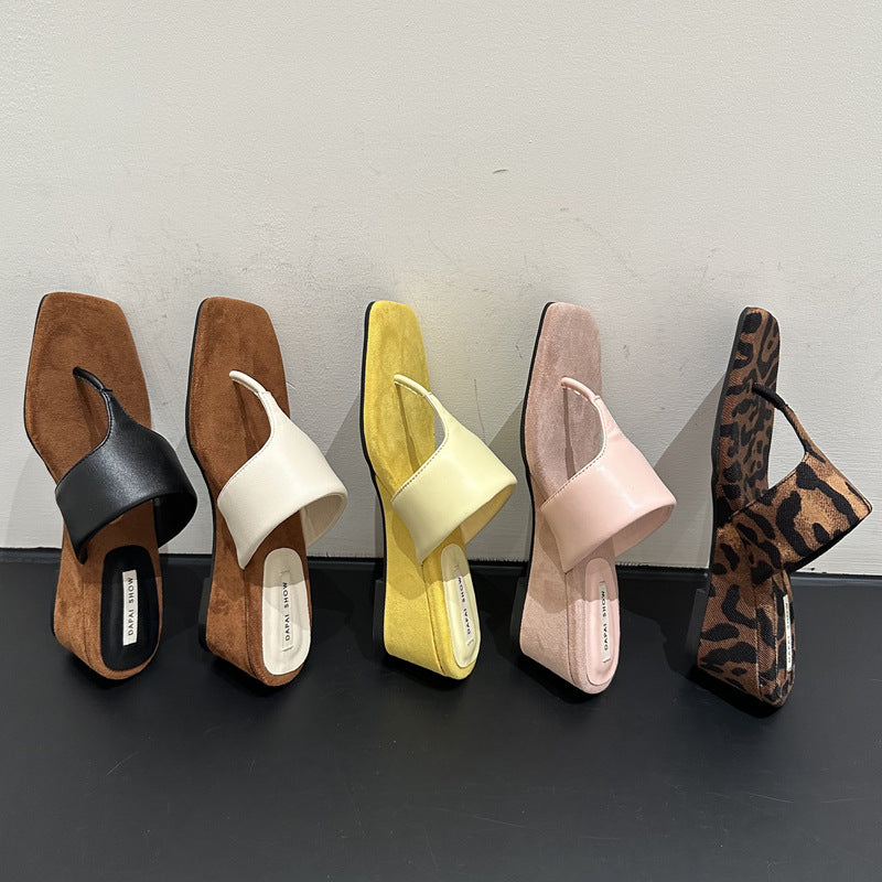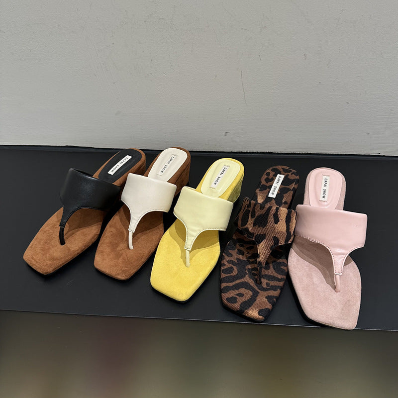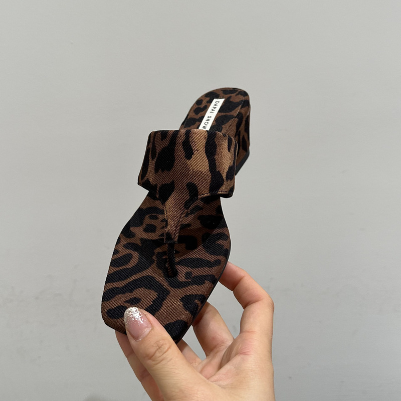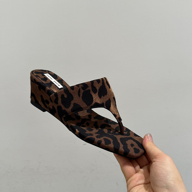 【シューズ】フレンチ厚底トングサンダル ヒョウ柄 夏スカート対応 ウェッジヒール