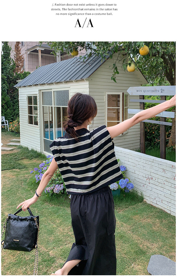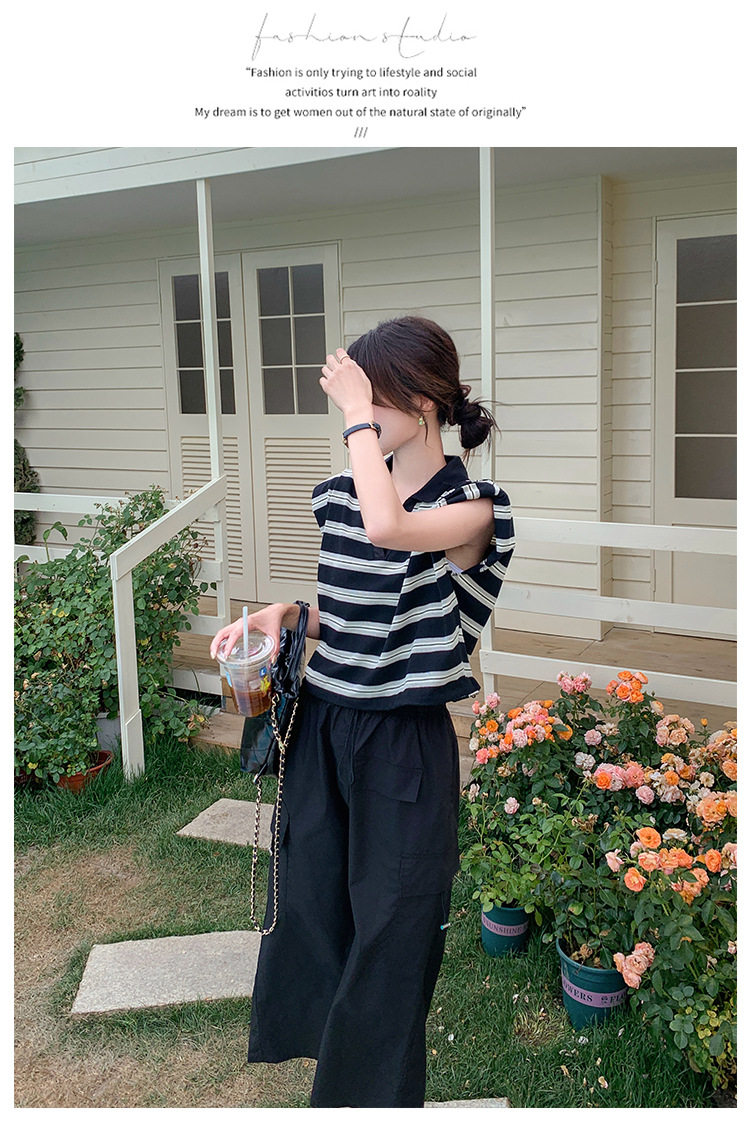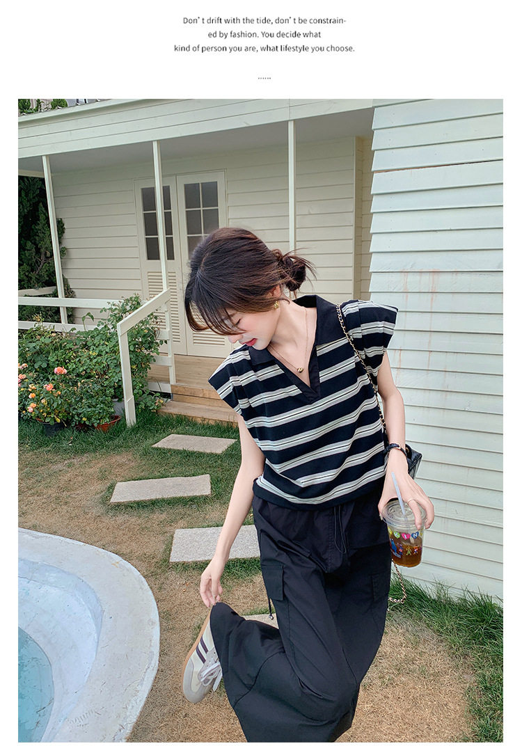 【商品名】2点セット!【ボトムス】ストライプポロシャツ+カーゴスカート 夏 カジュアル 上下セットアップ【JZシリーズ】