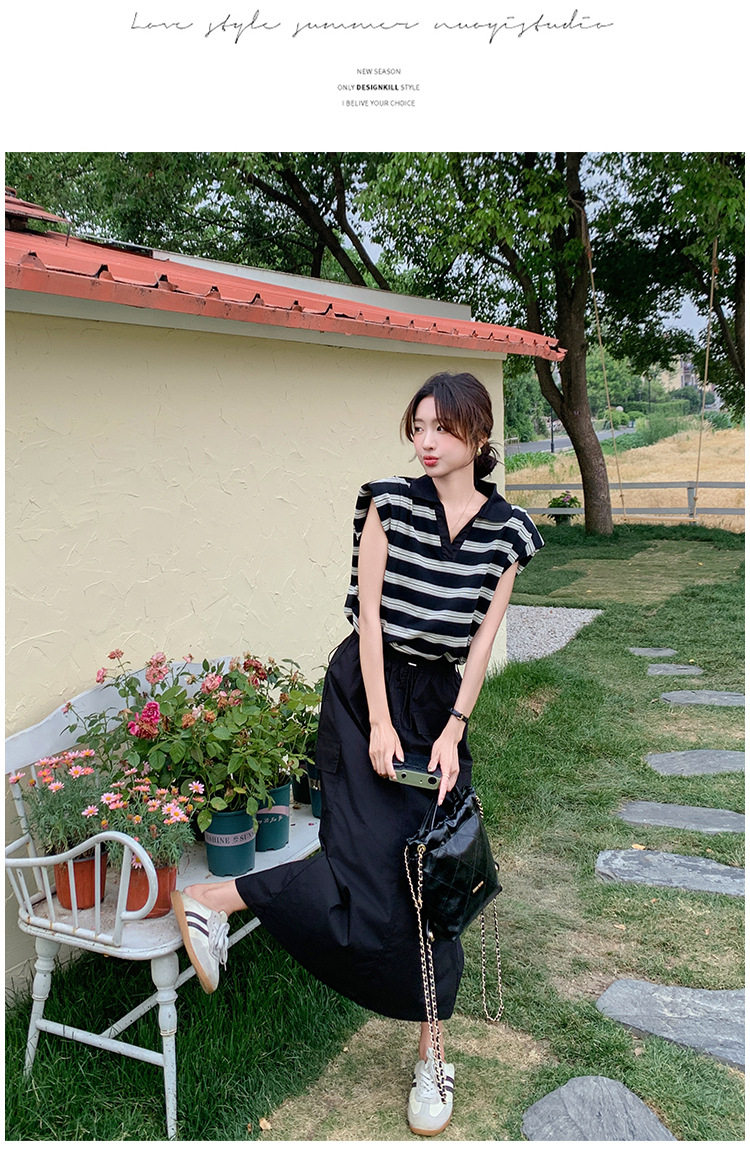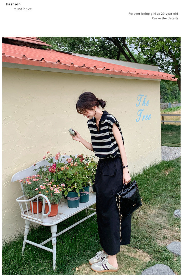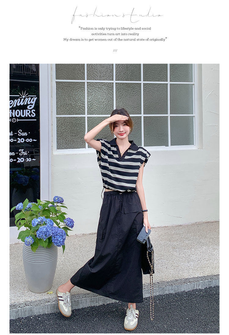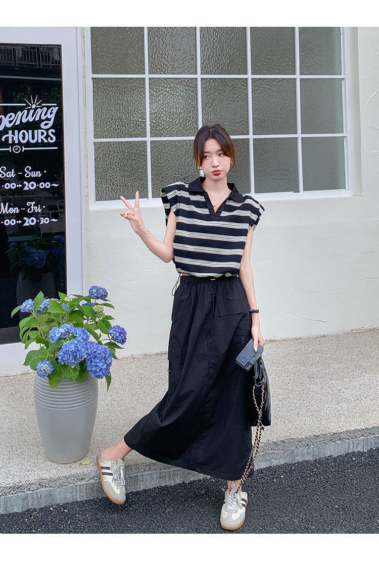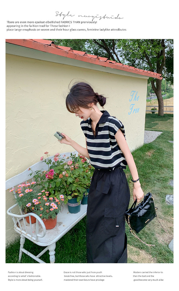 2点セット!【セットアップ】ストライプポロシャツ+カーゴスカート 夏 カジュアル 上下セットアップ 【JZシリーズ】