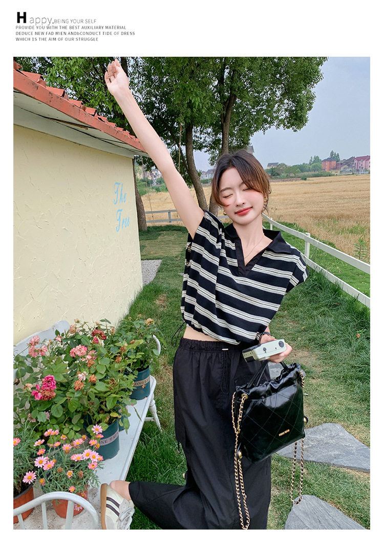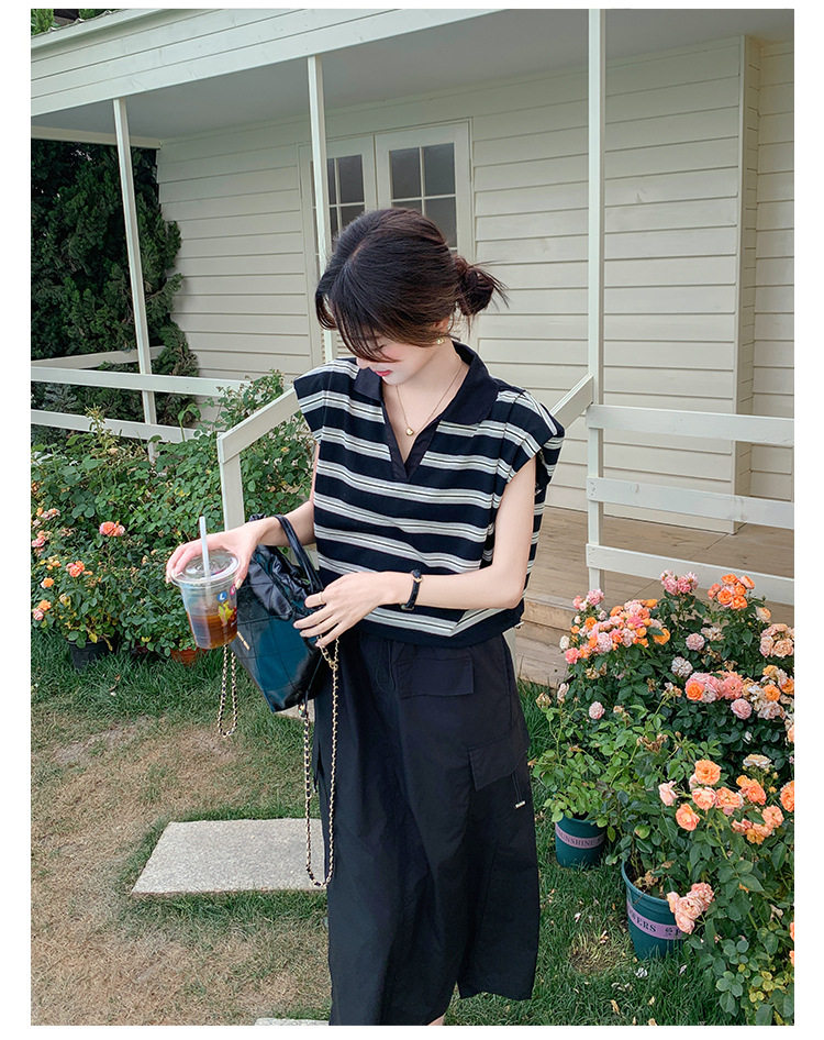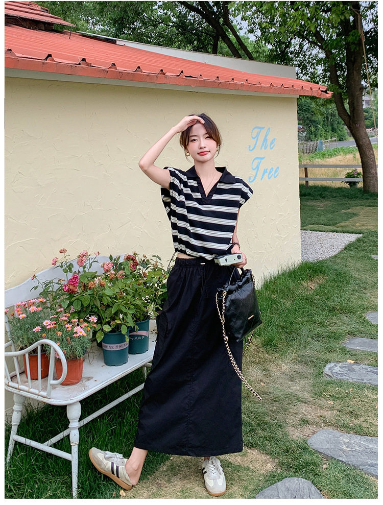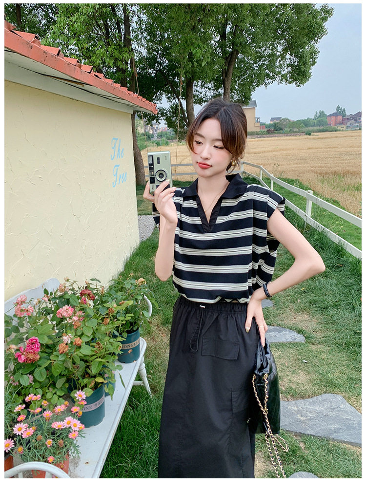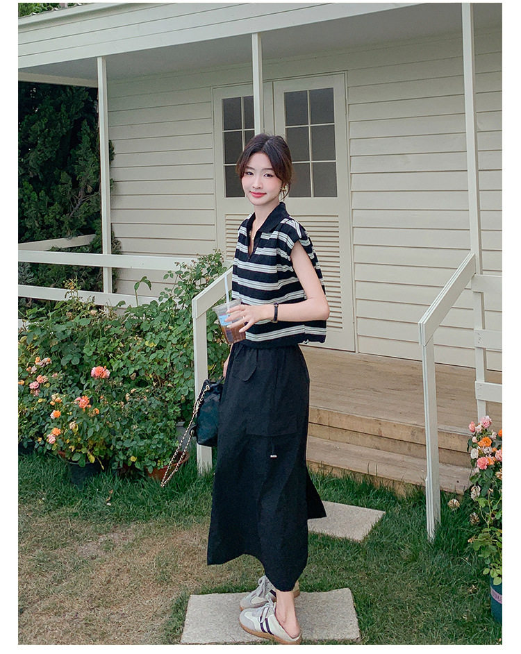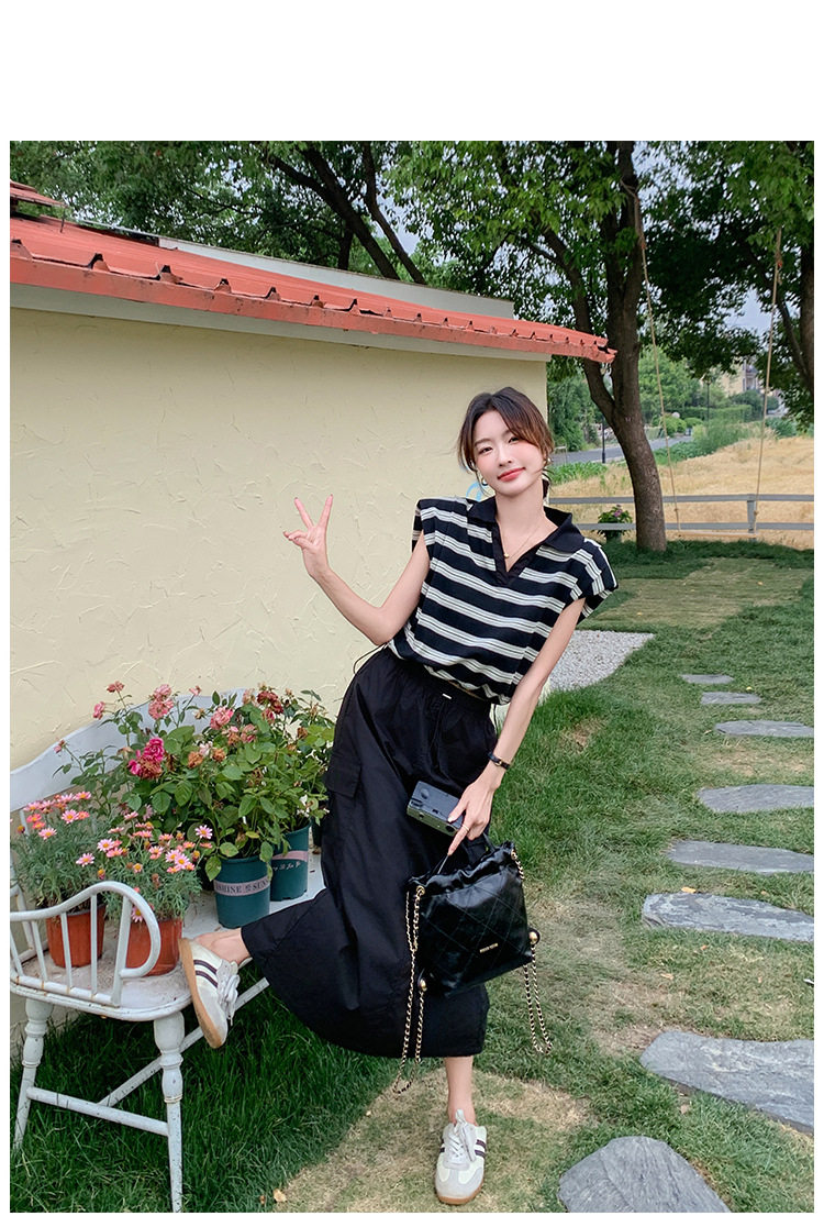 2点セット!【セットアップ】ストライプポロシャツ+カーゴスカート 夏 カジュアル 上下セットアップ 【JZシリーズ】