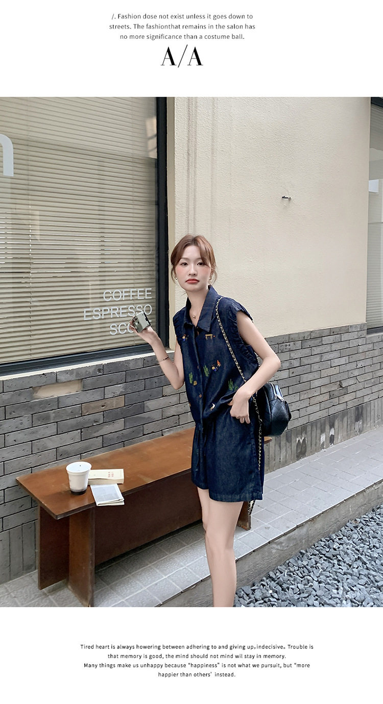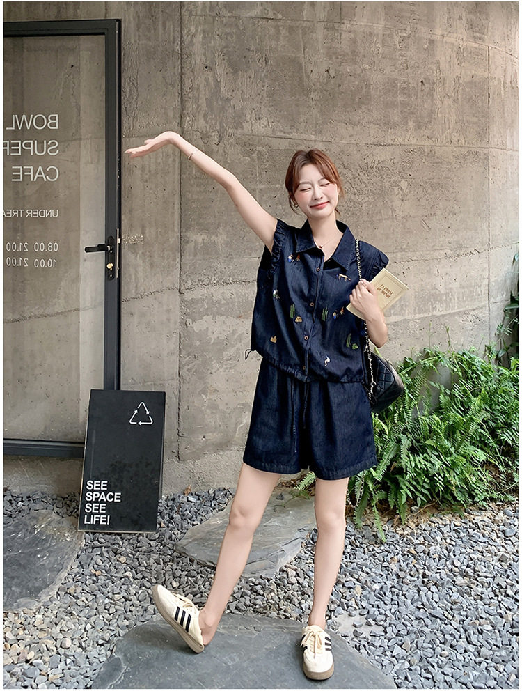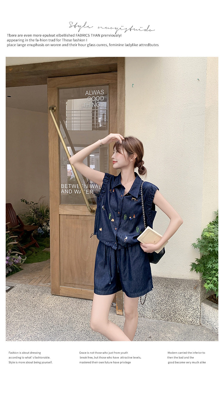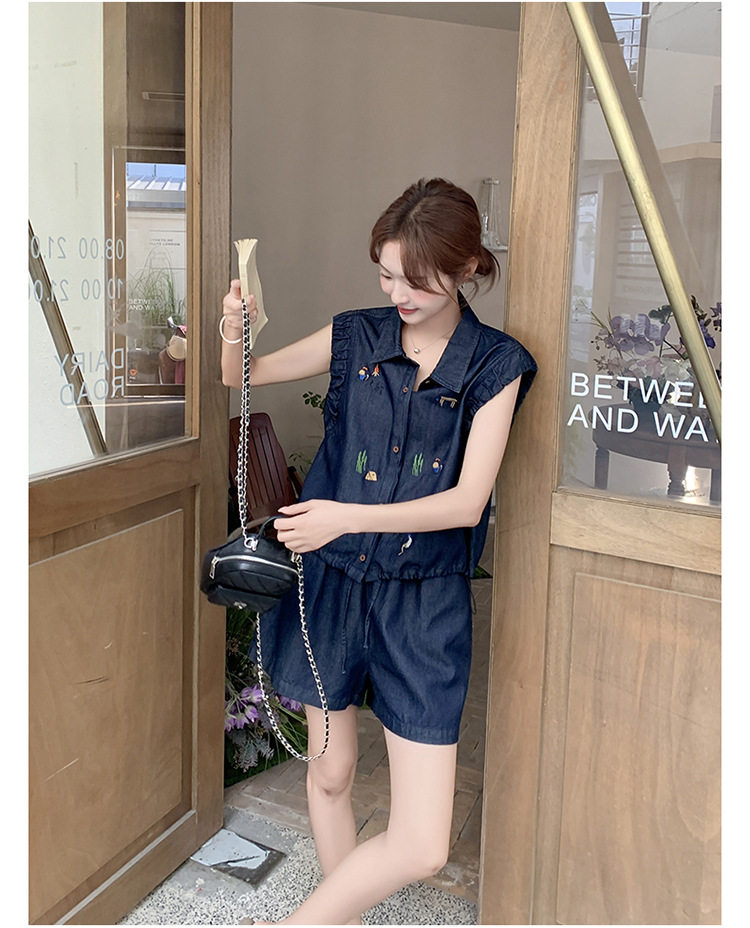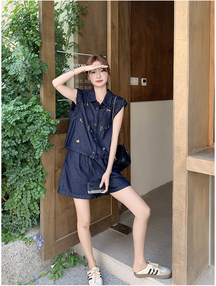 2点セット!【セットアップ】デニムブルー ベスト+ワイドショートパンツ 夏 レディース 高見え 着痩せ 上下セットアップ【JZシリーズ】