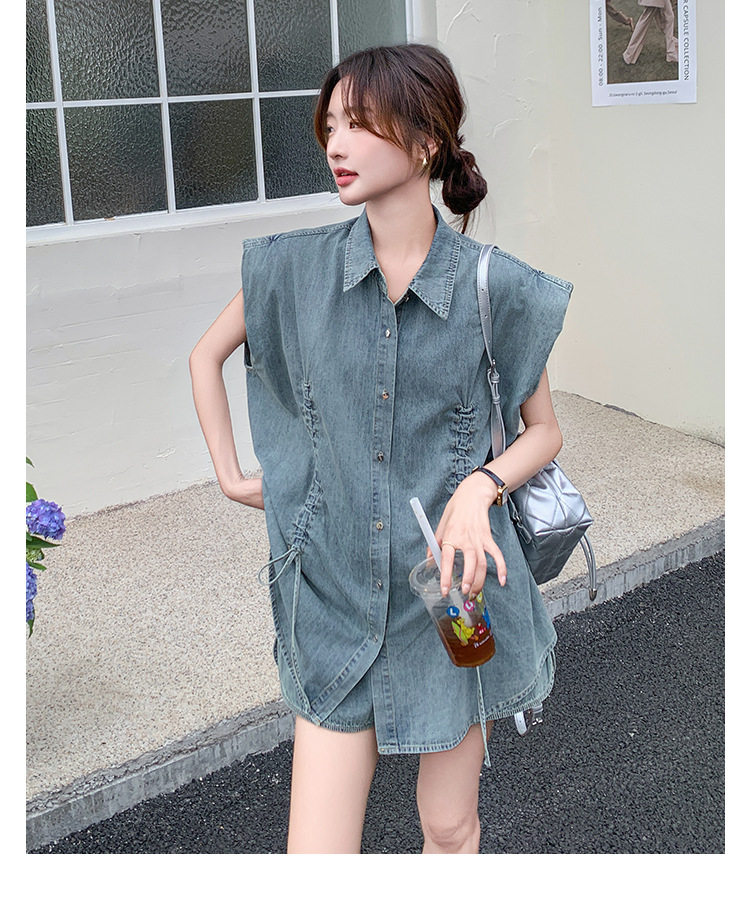 【商品名】2点セット!【ボトムス】デニムベスト+ショートパンツ レディース 夏 薄手 リラックスコーデ【JZシリーズ】