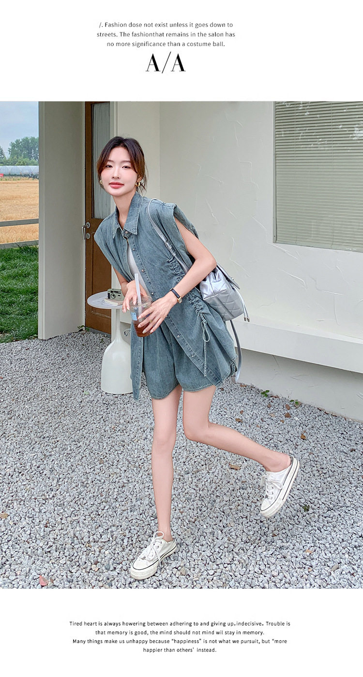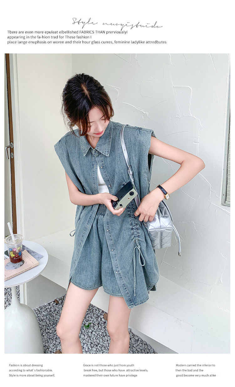 2点セット!【セットアップ】デニムベスト+ショートパンツ 上下セット レディース 夏 薄手 リラックスコーデ【JZシリーズ】