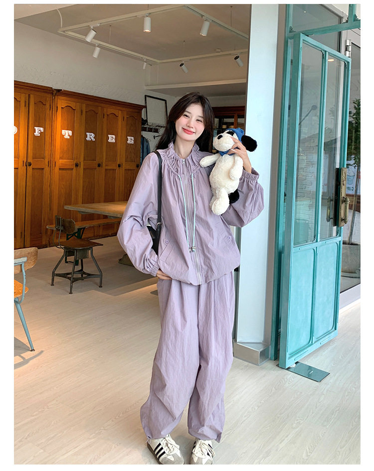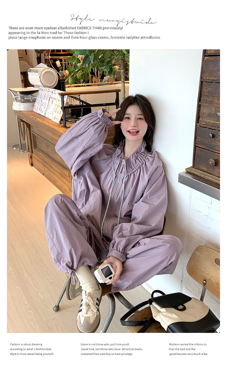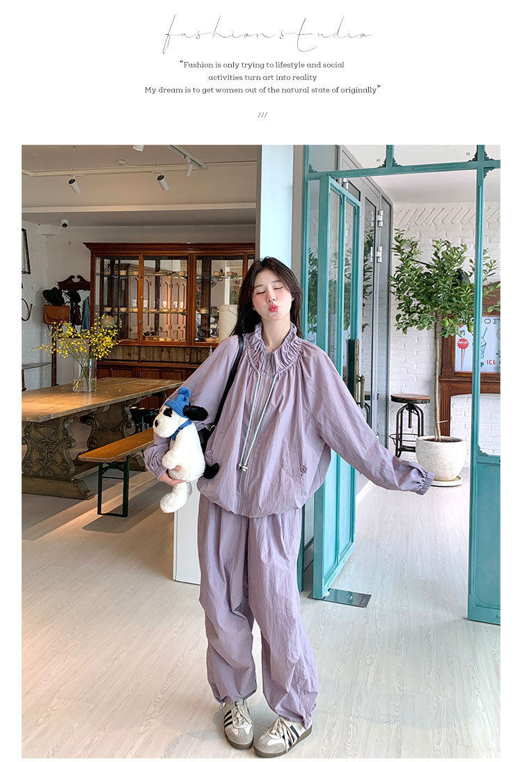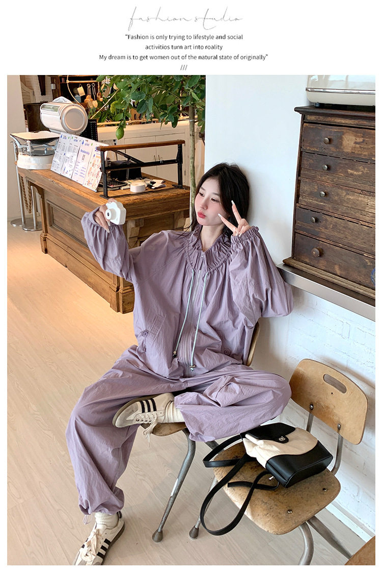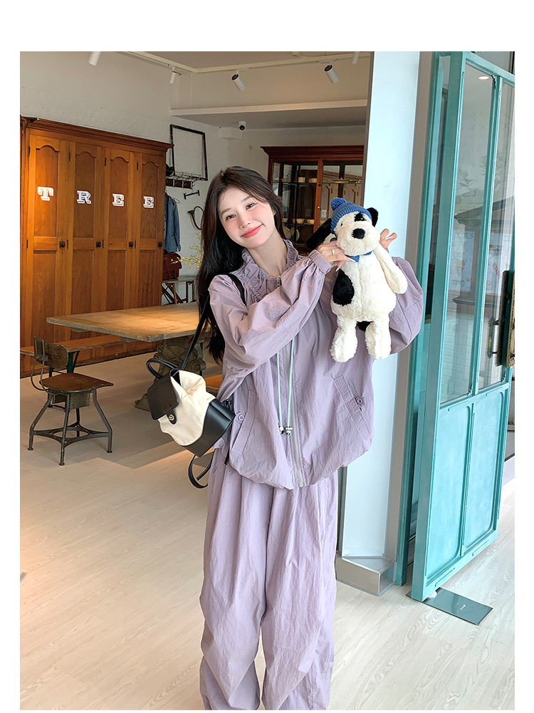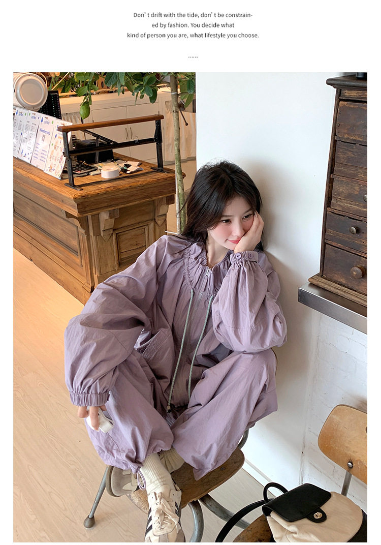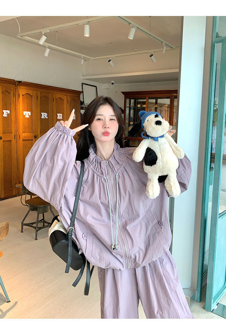 【商品名】2点セット!【ボトムス】バルーンスタンドカラー ジャケット+ジョガーパンツ ワーク風 カジュアル スポーツ 上下セットアップ【JZシリーズ】