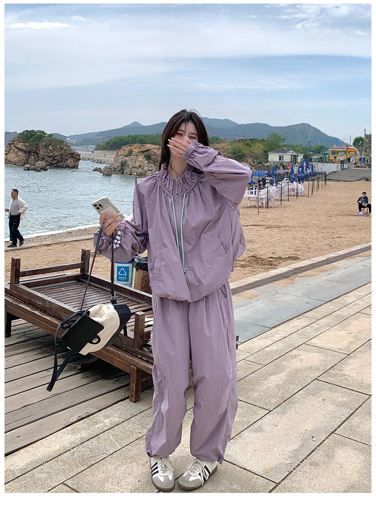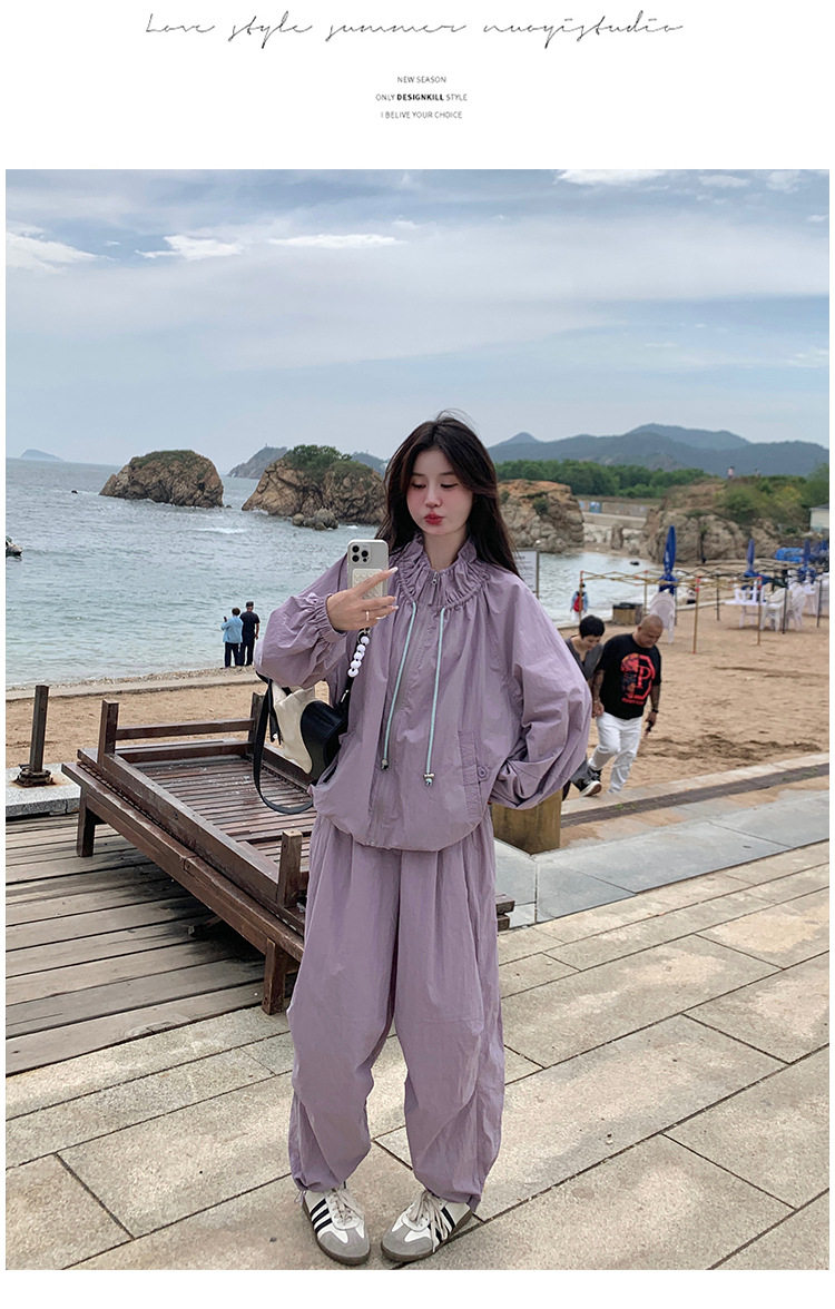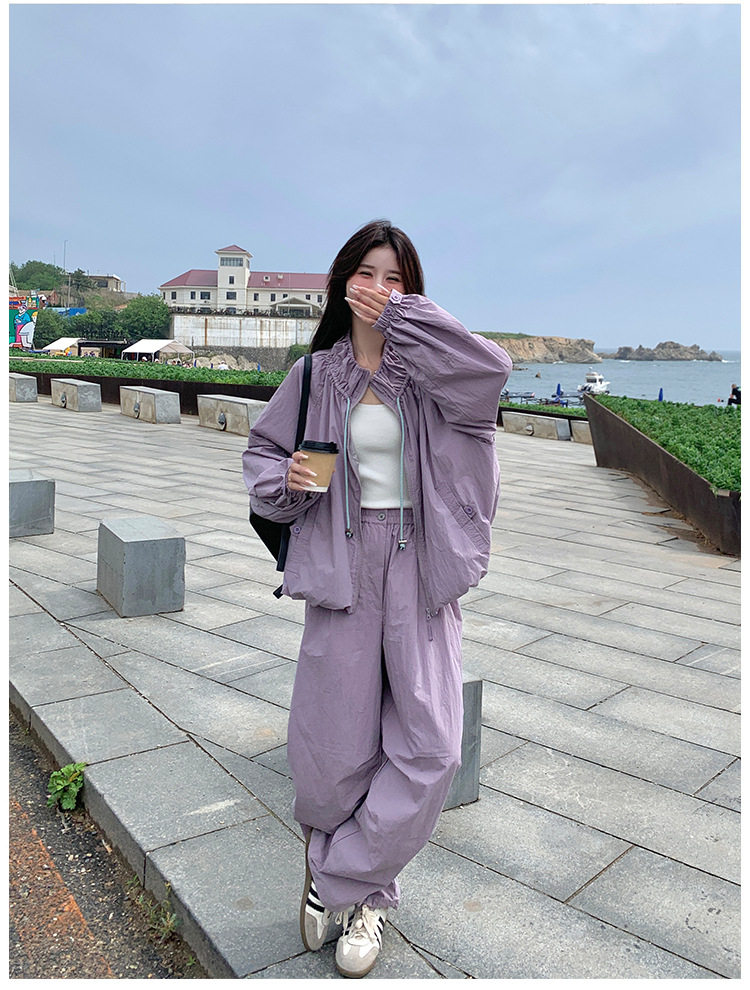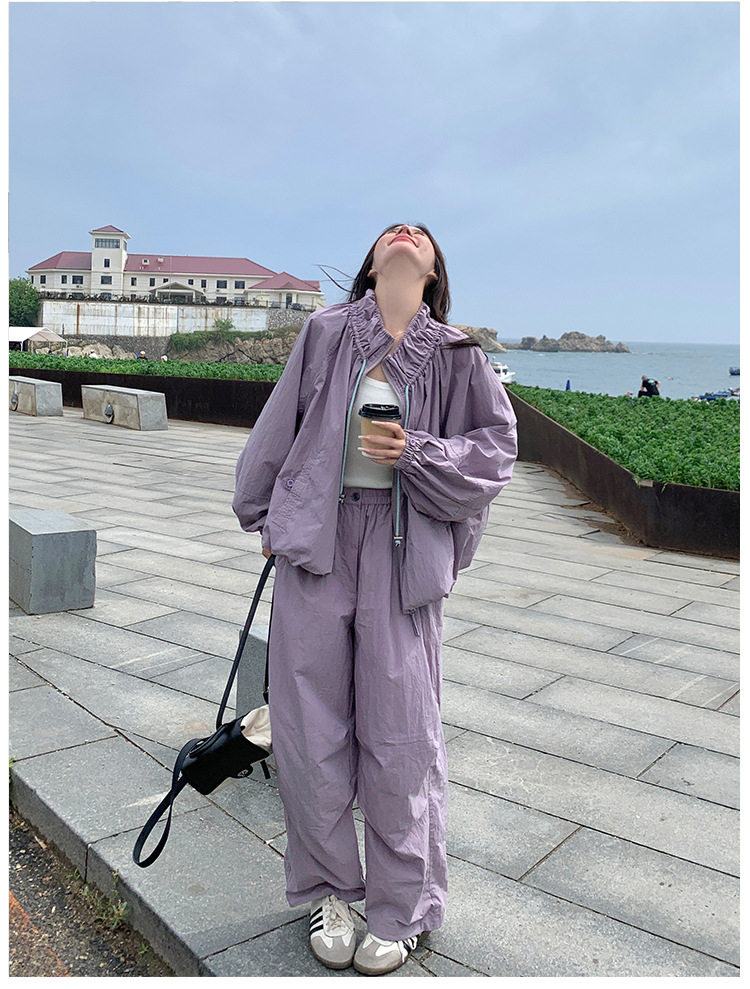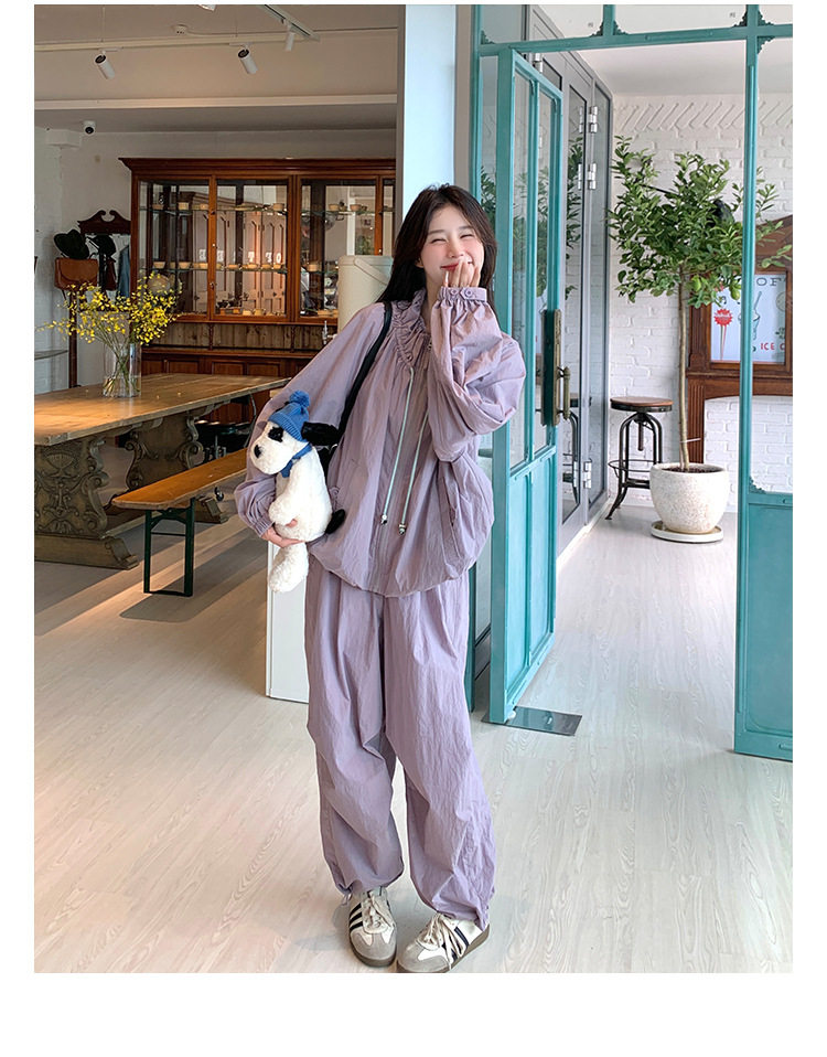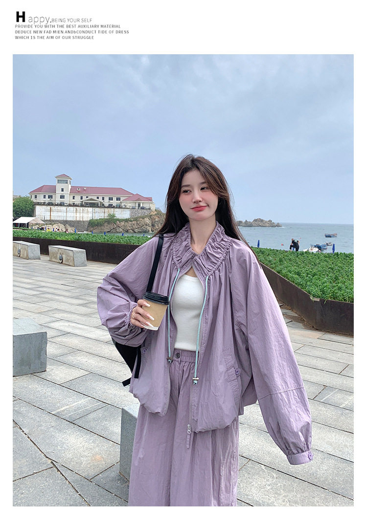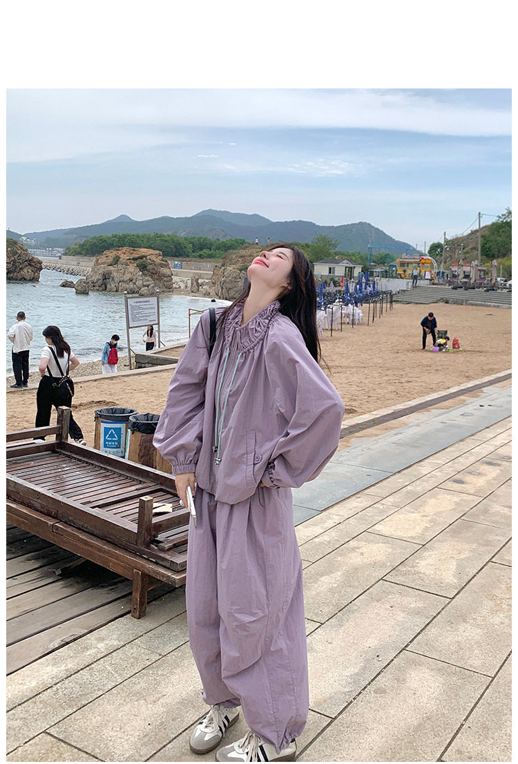 【商品名】2点セット!【ボトムス】バルーンスタンドカラー ジャケット+ジョガーパンツ ワーク風 カジュアル スポーツ 上下セットアップ【JZシリーズ】