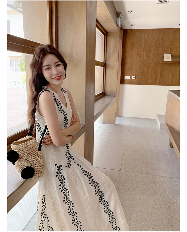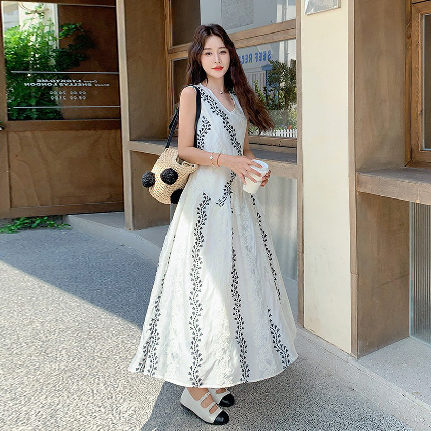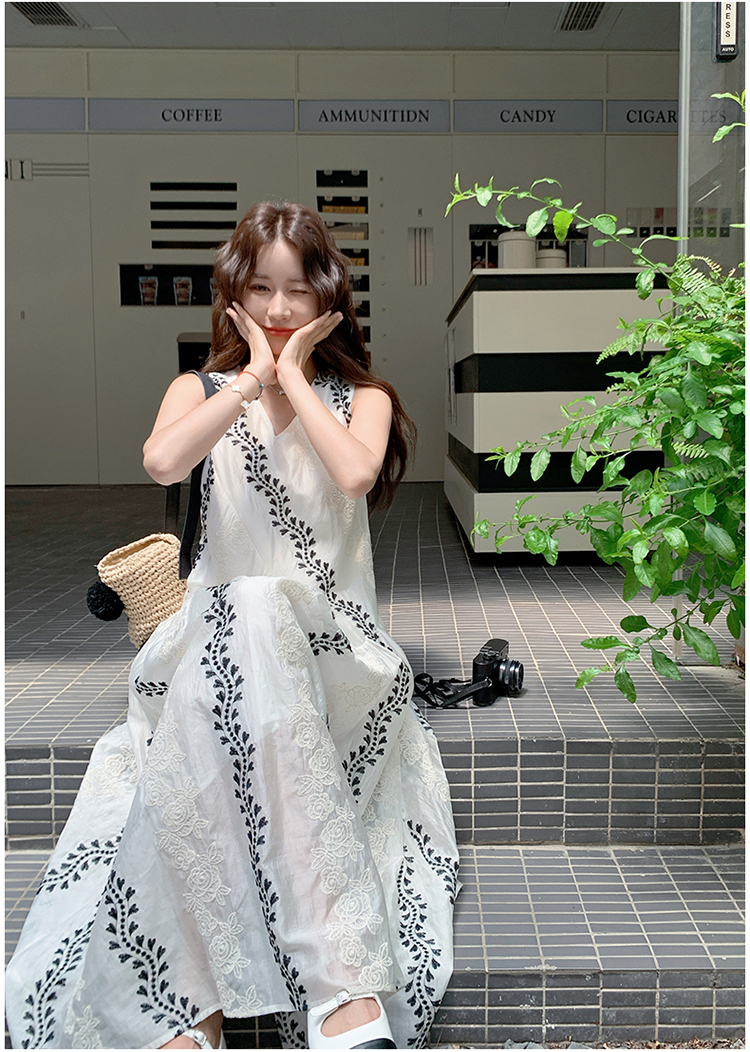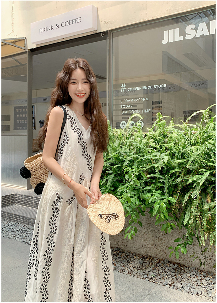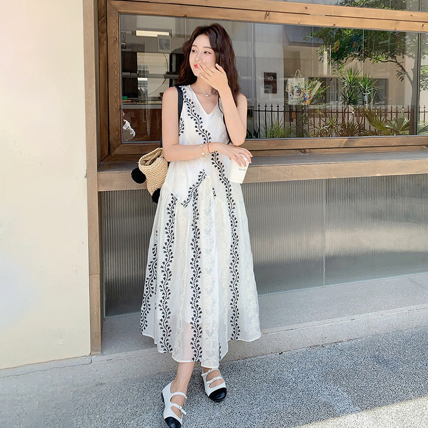 【商品名】【ワンピース】気質 ノースリーブプリントワンピース 夏 韓国風 Vネック キャミロングドレス【SHシリーズ】