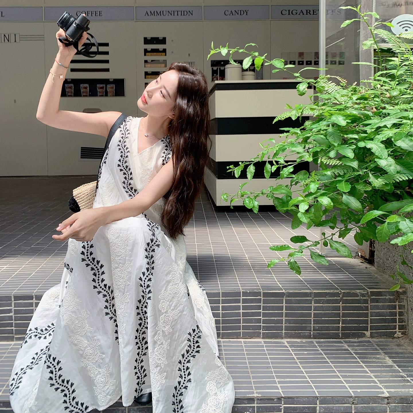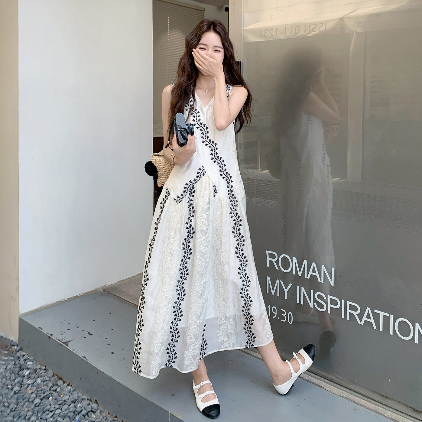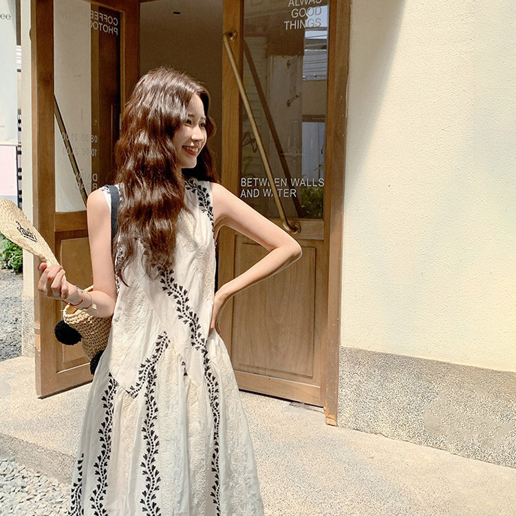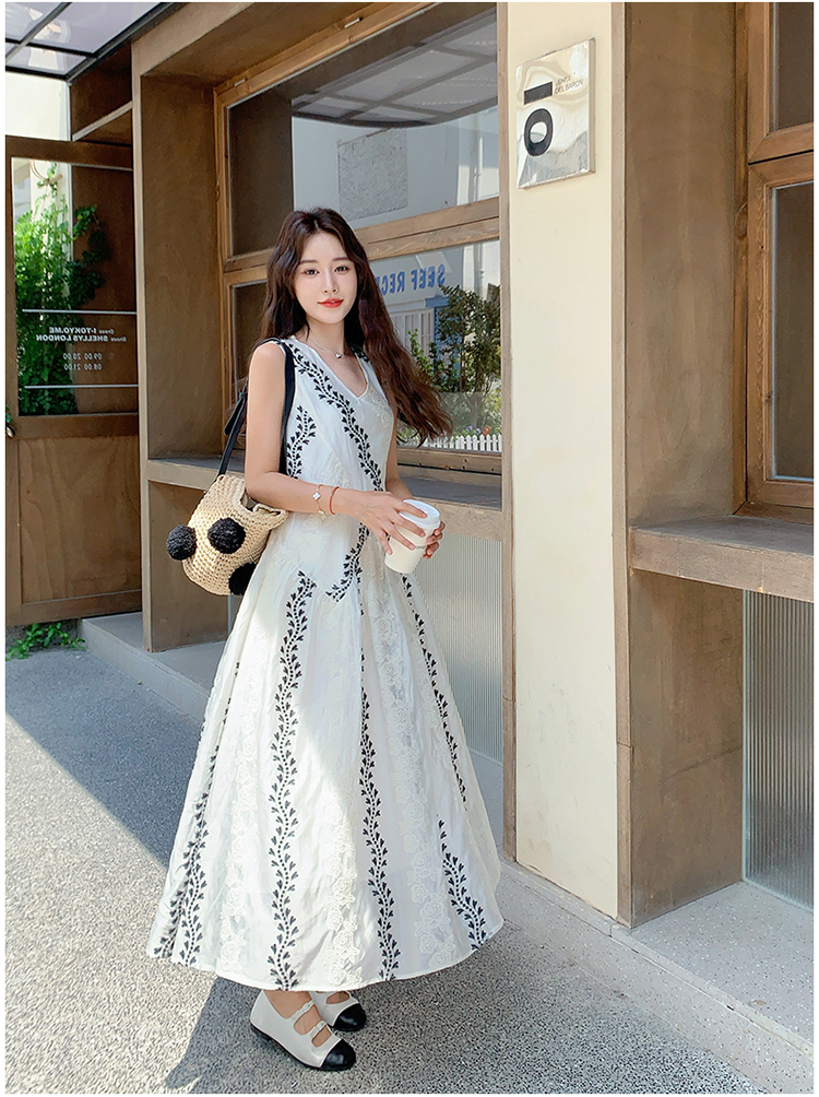 【商品名】【ワンピース】気質 ノースリーブプリントワンピース 夏 韓国風 Vネック キャミロングドレス【SHシリーズ】