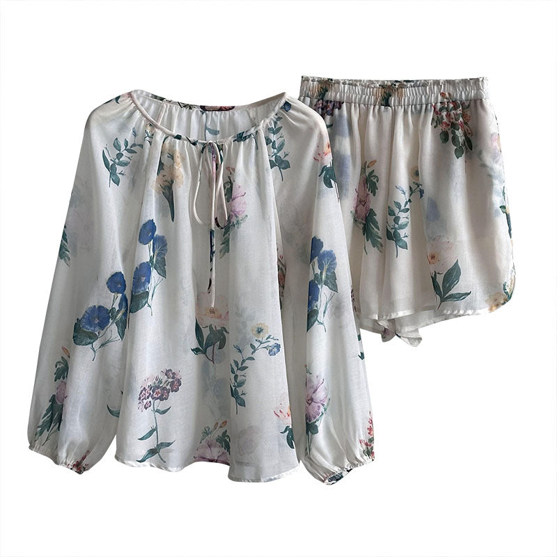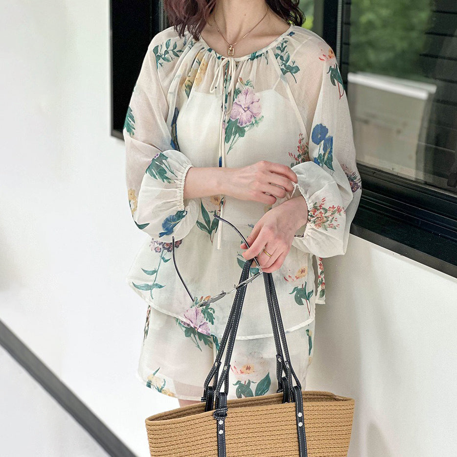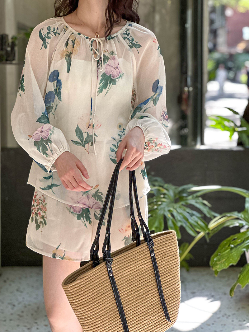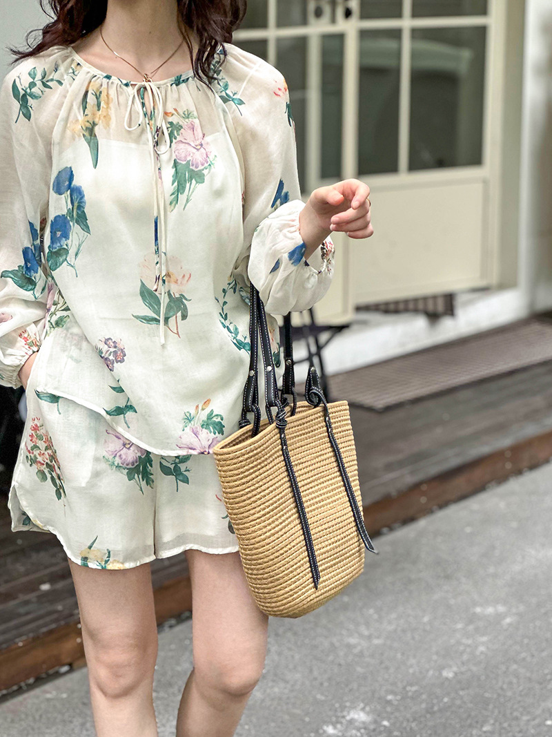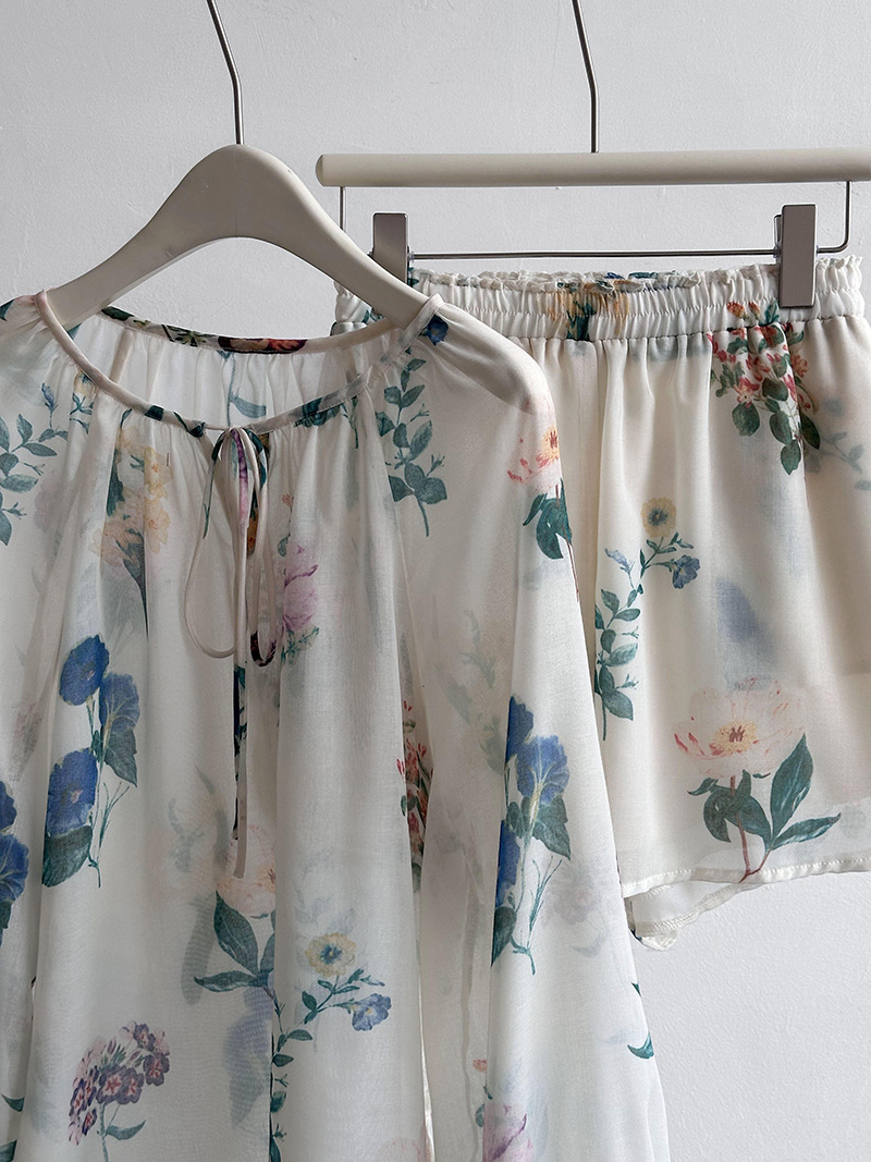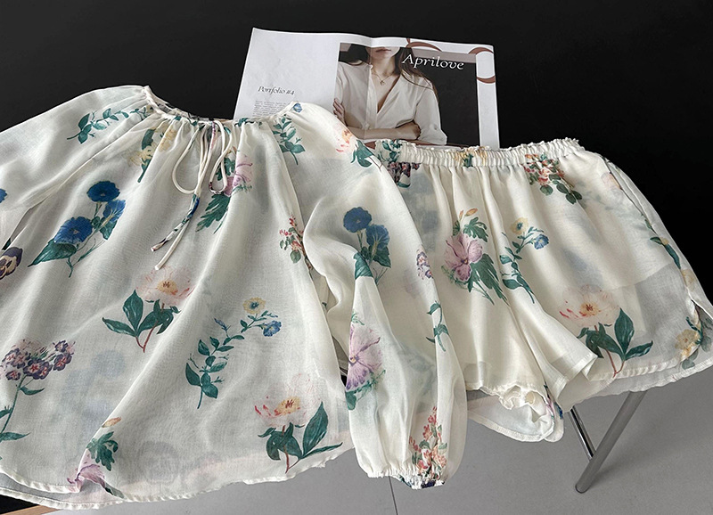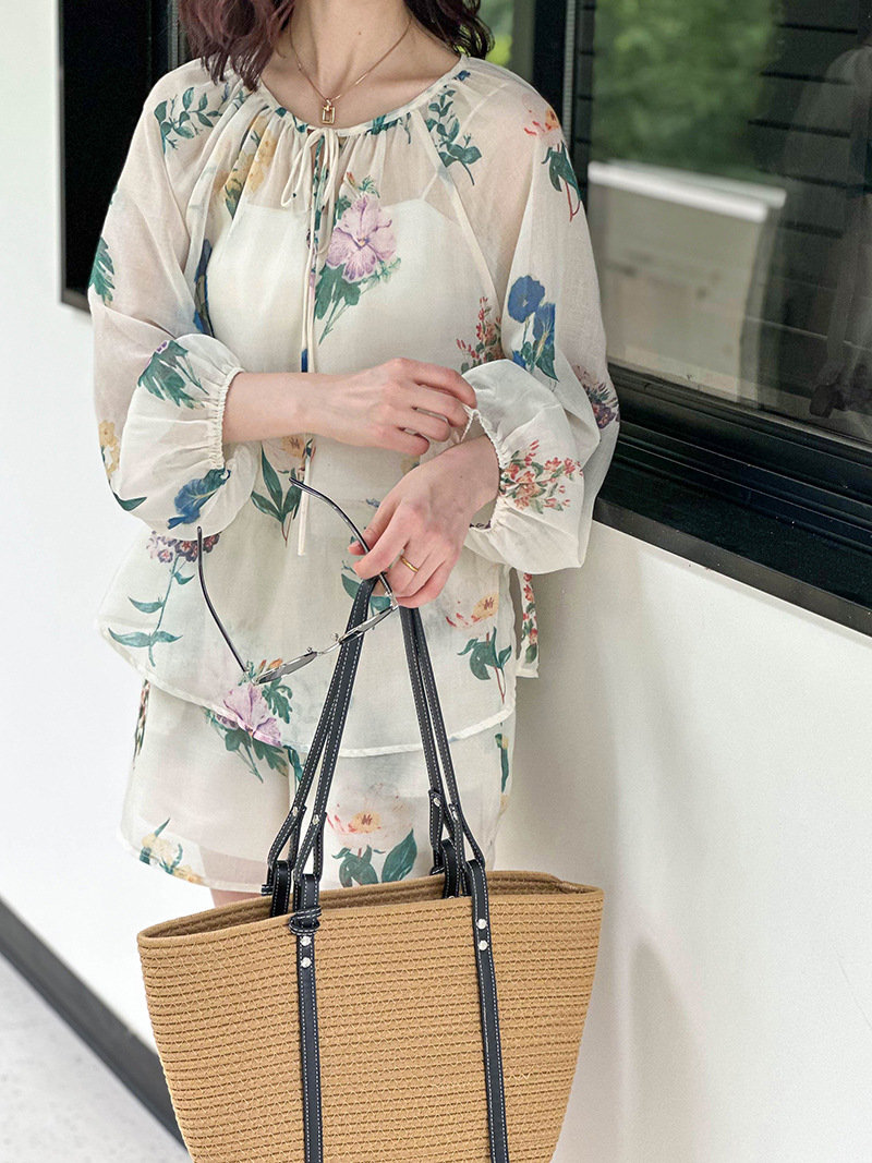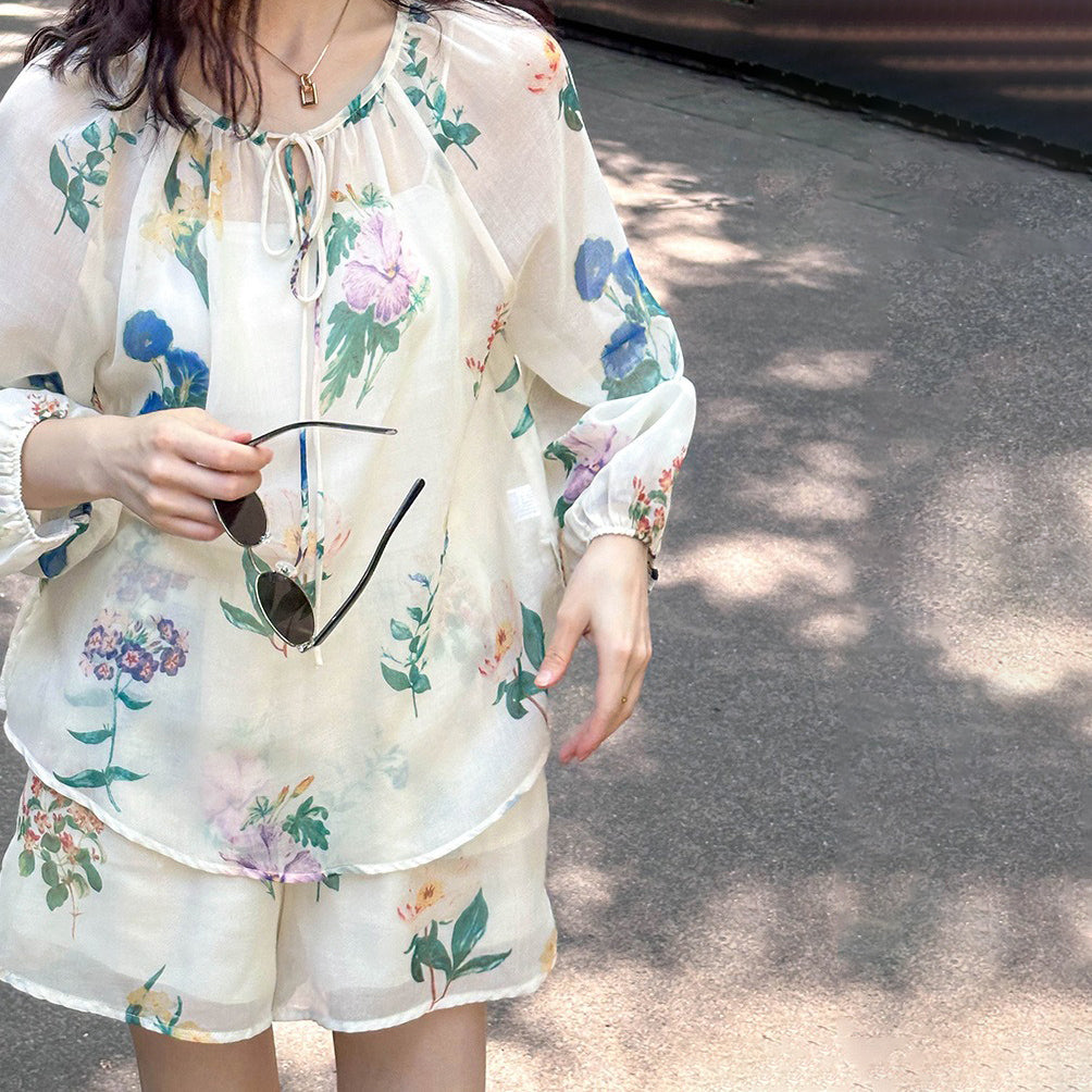 2点セット!【セットアップ】韓国風 ゆったりプリントUVカットシャツ+ハイウエストショートパンツ 上下セットアップ【SHシリーズ】【JZシリーズ】